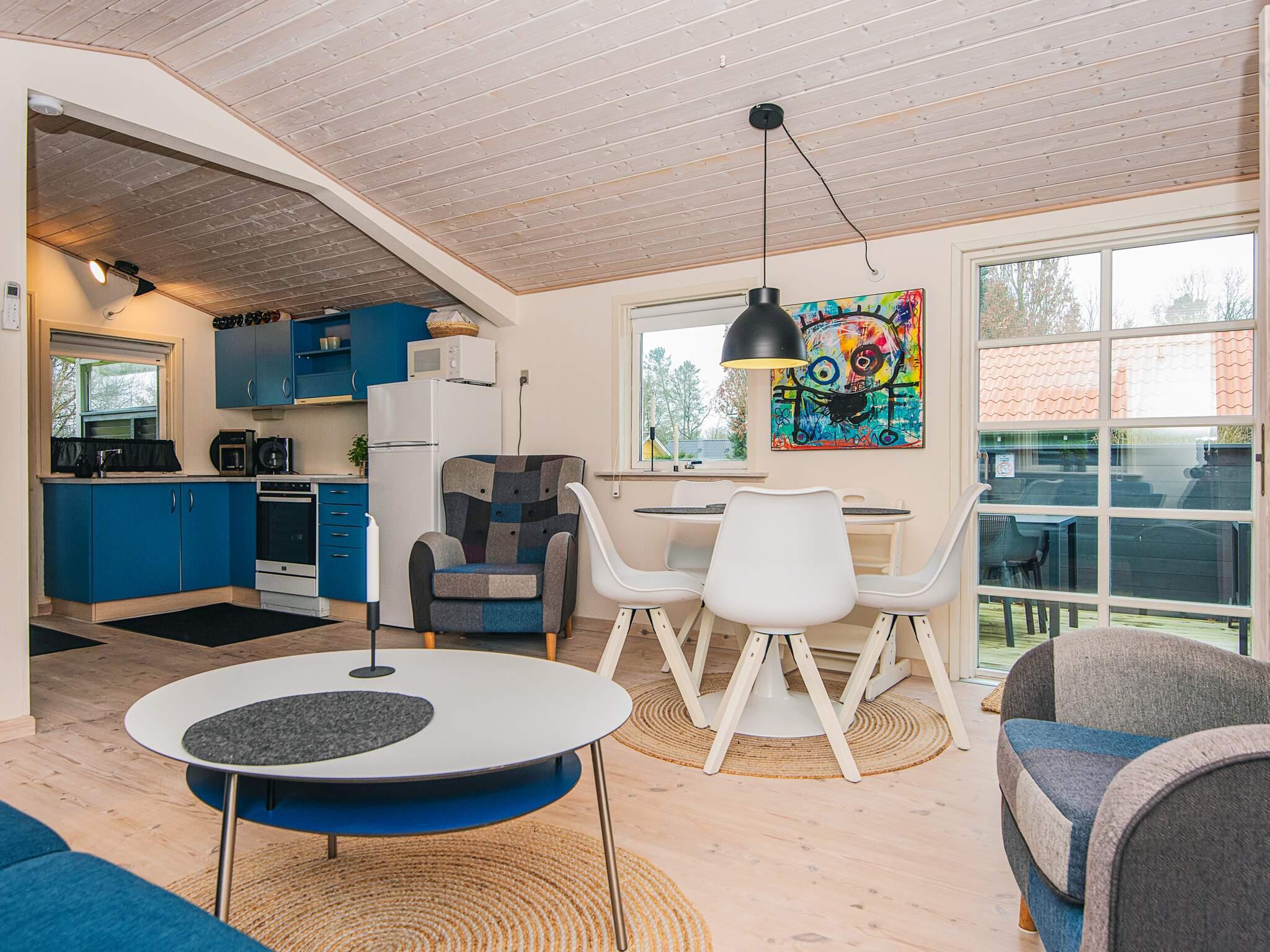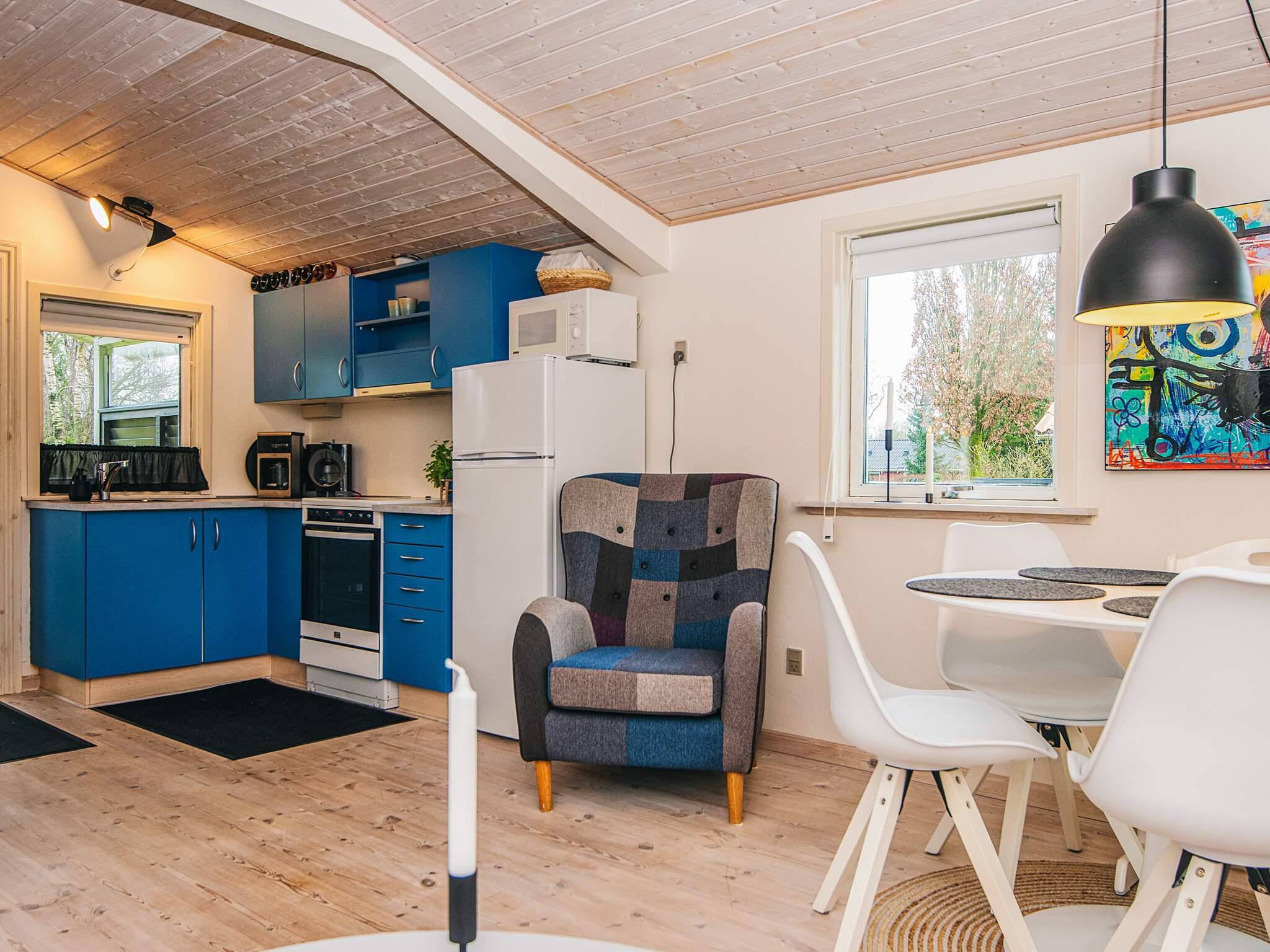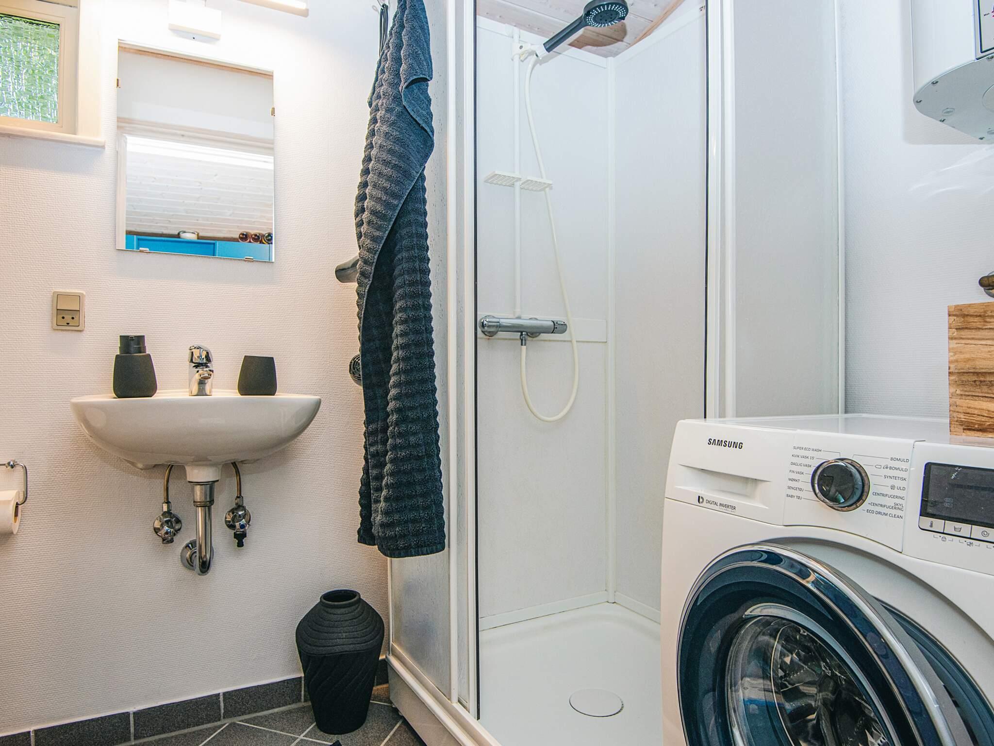 Feriehuset byder på ekstra komfort med et fuldt udstyret køkken med elkomfur, mikroovn, kaffemaskine og fryser. Badeværelset har toilet, håndvask og bruser til en forfriskende oplevelse. Uanset om du tilbereder et familiemåltid eller bare slapper af i den fredfyldte have, har denne ejendom alt, hvad du har brug for til et behageligt og fornøjeligt ophold.