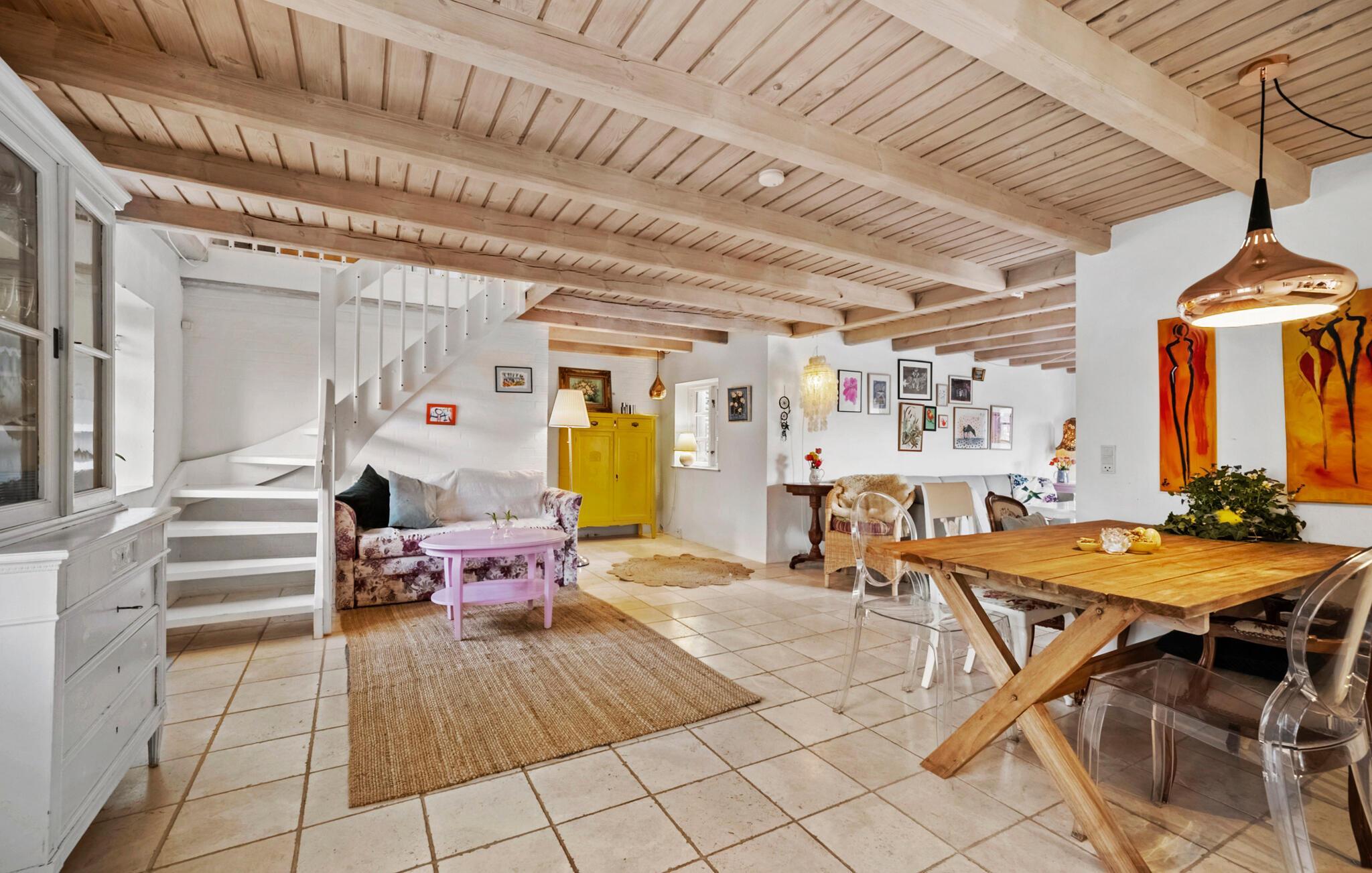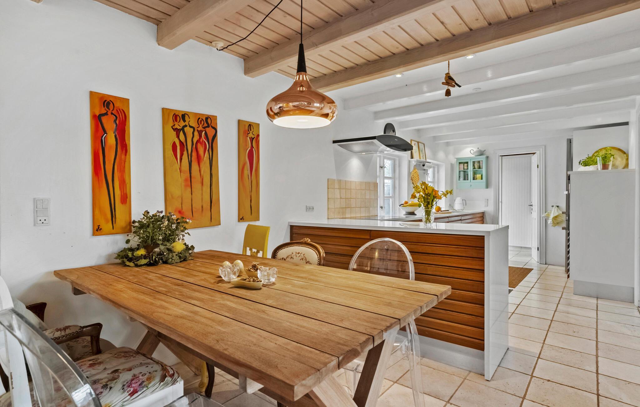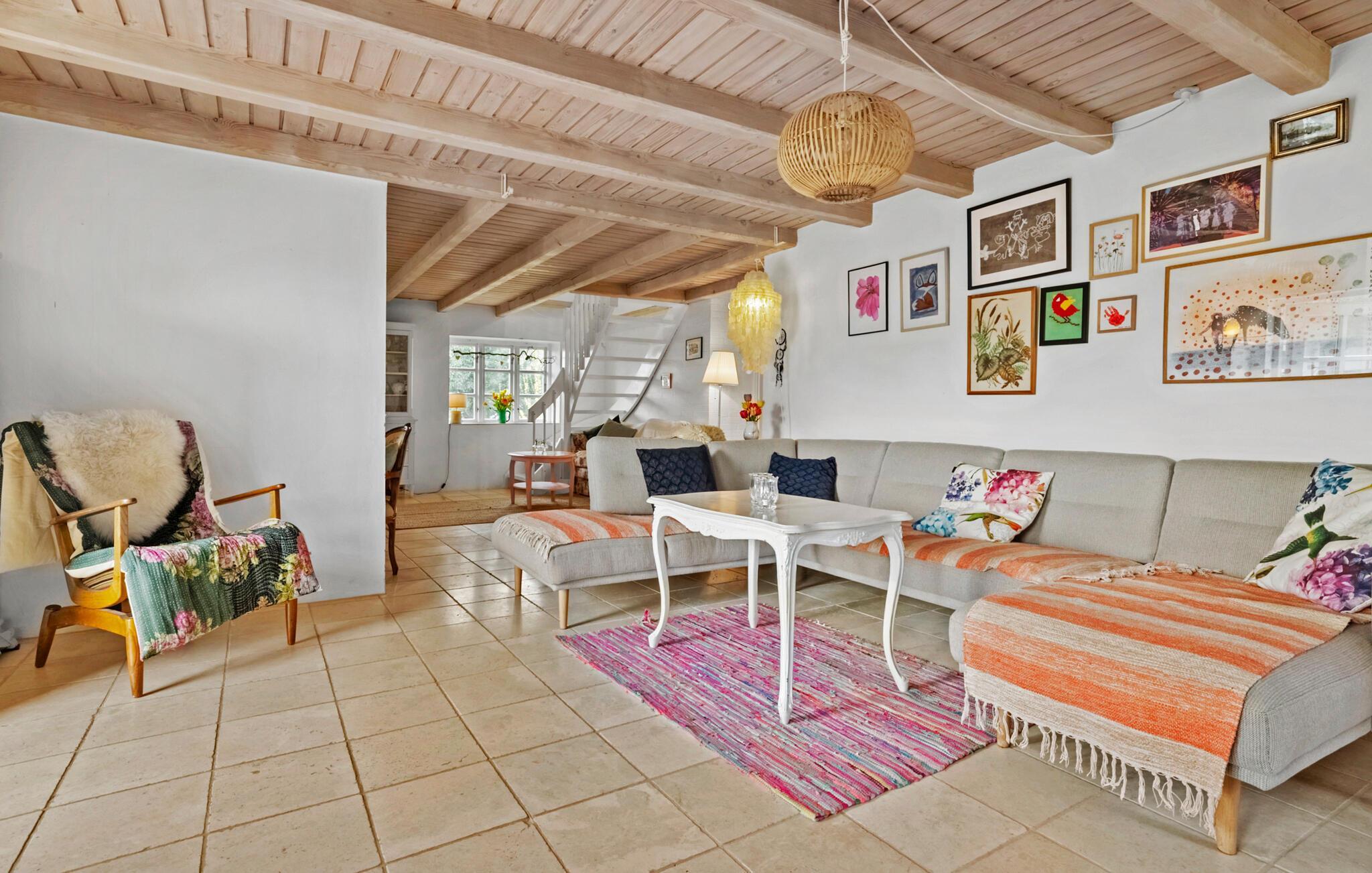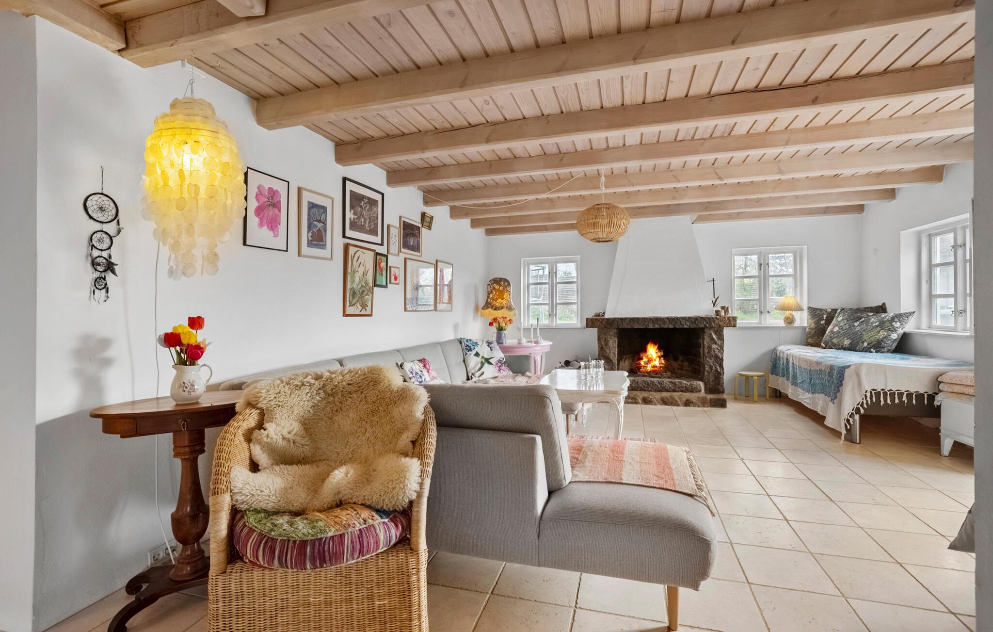 Nyd en afslappende ferie i dette charmerende stråtagshus nær Roskilde Fjord. Den rolige beliggenhed, det stilfulde interiør og den store have gør dette feriehus til et ideelt tilflugtssted for jeres næste ferie. Lad jer byde velkommen af ??husets varme atmosfære. Den rummelige opholdsstue med sine synlige træbjælker udstråler komfort. Find jer godt til rette i den hyggelige sofa foran den åbne brændeovn og nyd den knitrende ild. Den tilstødende spiseplads giver plads til hyggelige timer over måltider sammen. Det moderne køkken med en rummelig arbejdsflade lægger op til at lave mad. Et lyst, åbent rum venter jer på loftet med komfortable siddepladser og retreater.