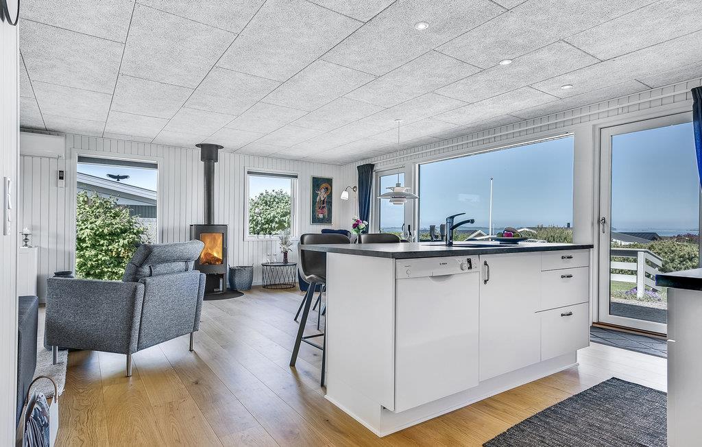 Nyd den smukke udsigt og find jer godt til rette i feriehusets smagfuldt indrettede værelser. Huset er velegnet til en ferie i enhver sæson. Stuen med store vinduer er hjertet i huset, her spreder brændeovnen ekstra varme og en hyggelig atmosfære.