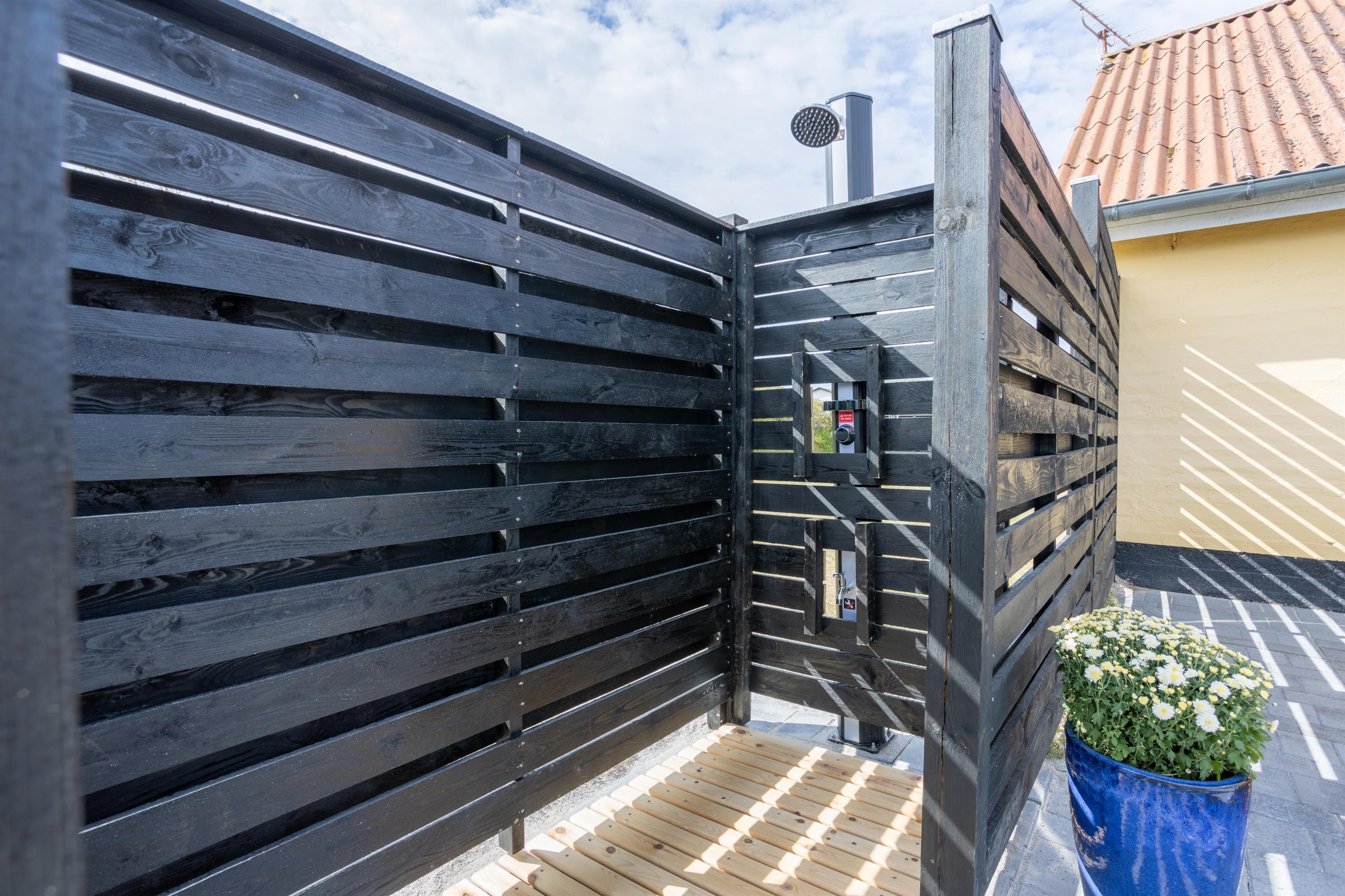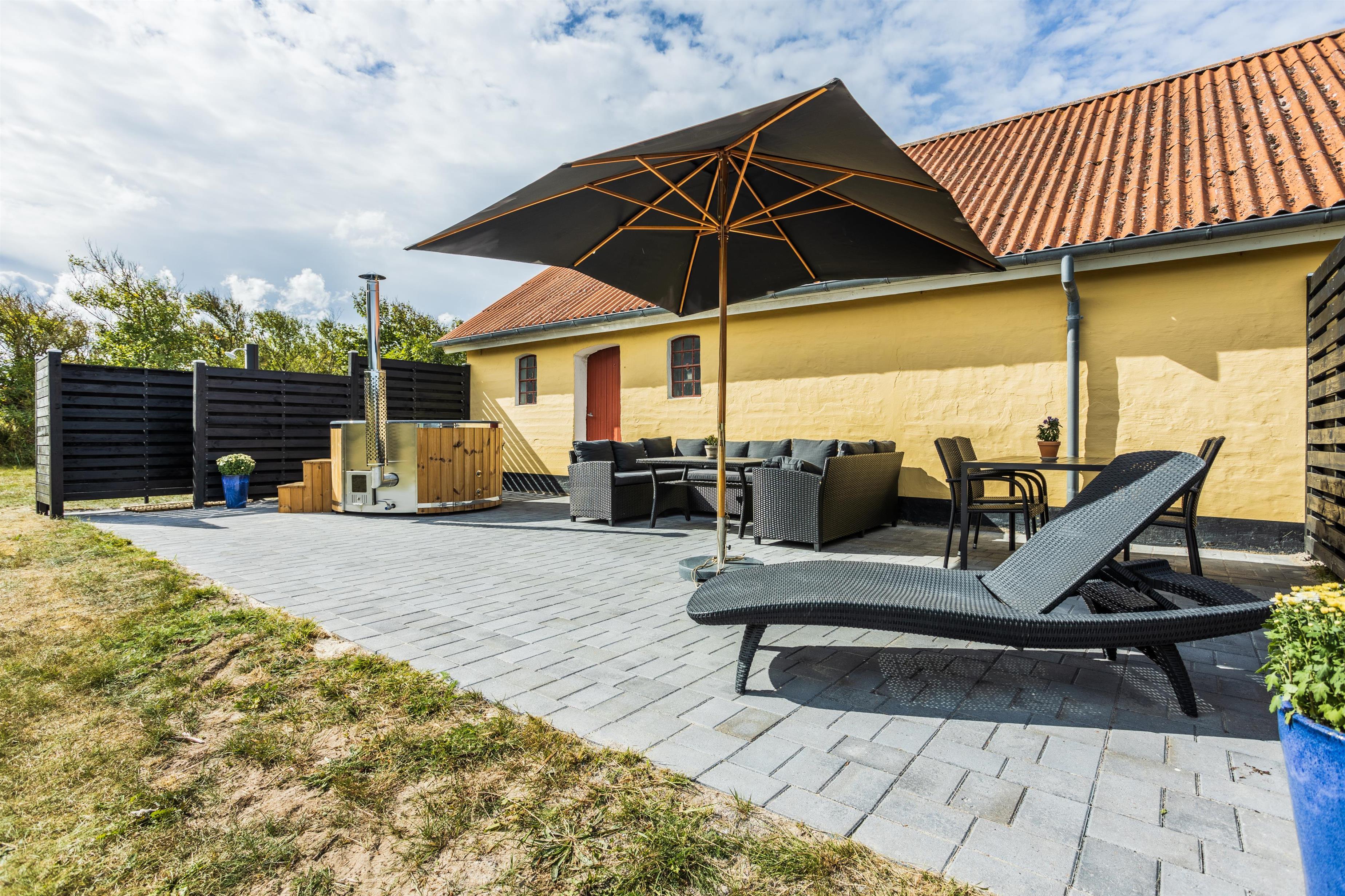 Endvidere er der en 50m2 stor østvendt terrasse med både vildmarksbad, saunatønde og udendørsbruser. Dertil finder I også en shelterplads i skoven - kun for lejere. Bemærk åben ild forbudt på grunden.