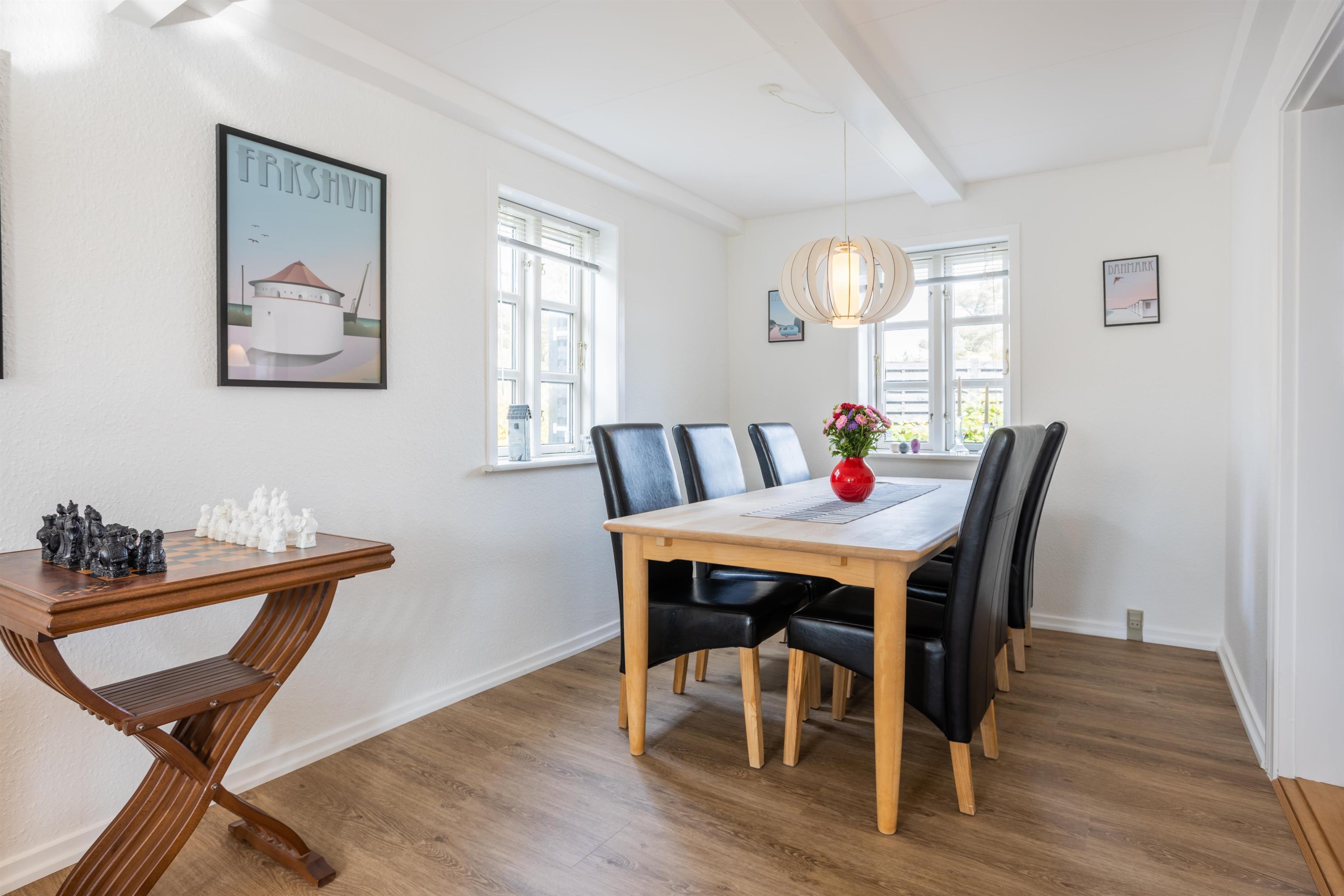 Ejendommen ligger et stenkast fra et af egnens mest populære sommerhusområder, og der er kun ca. 900 meter til stranden. Desuden er der kun et par kilometer til Hirtshals centrum, hvor der er butiksliv, restauranter og et dejligt havnemiljø, hvor I kan tage en is med på gåturen eller stille sulten på en af de hyggelige caféer. Udover sine fantastiske strande er Hirtshals blandt andet kendt for sit smukke fyr, bunkermuseum og ikke mindst Nordeuropas største akvarium Nordsøen Oceanarium, som hvert år trækker mange turister til byen.