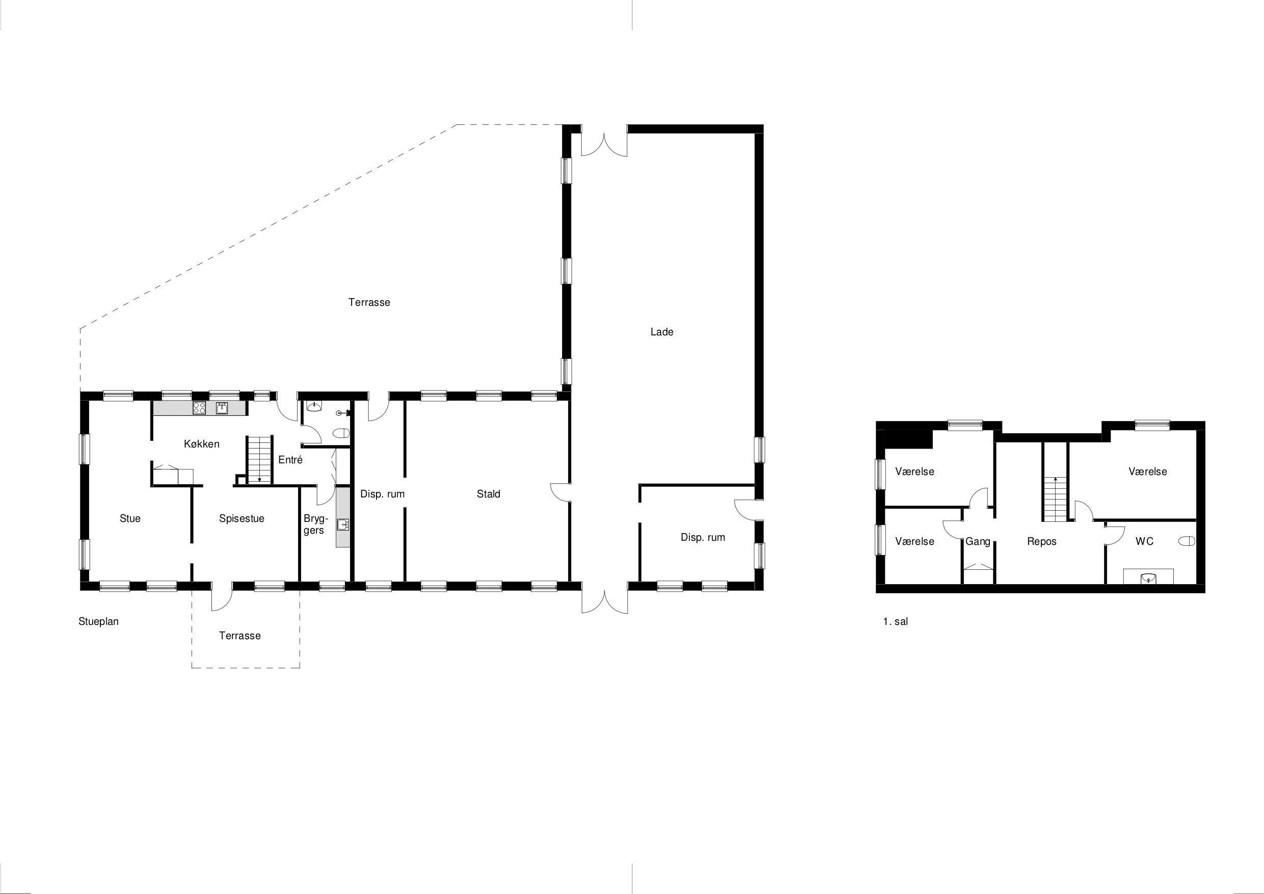 Husets førstesal er indrettet med repos, stort toilet og tre gode soveværelser.