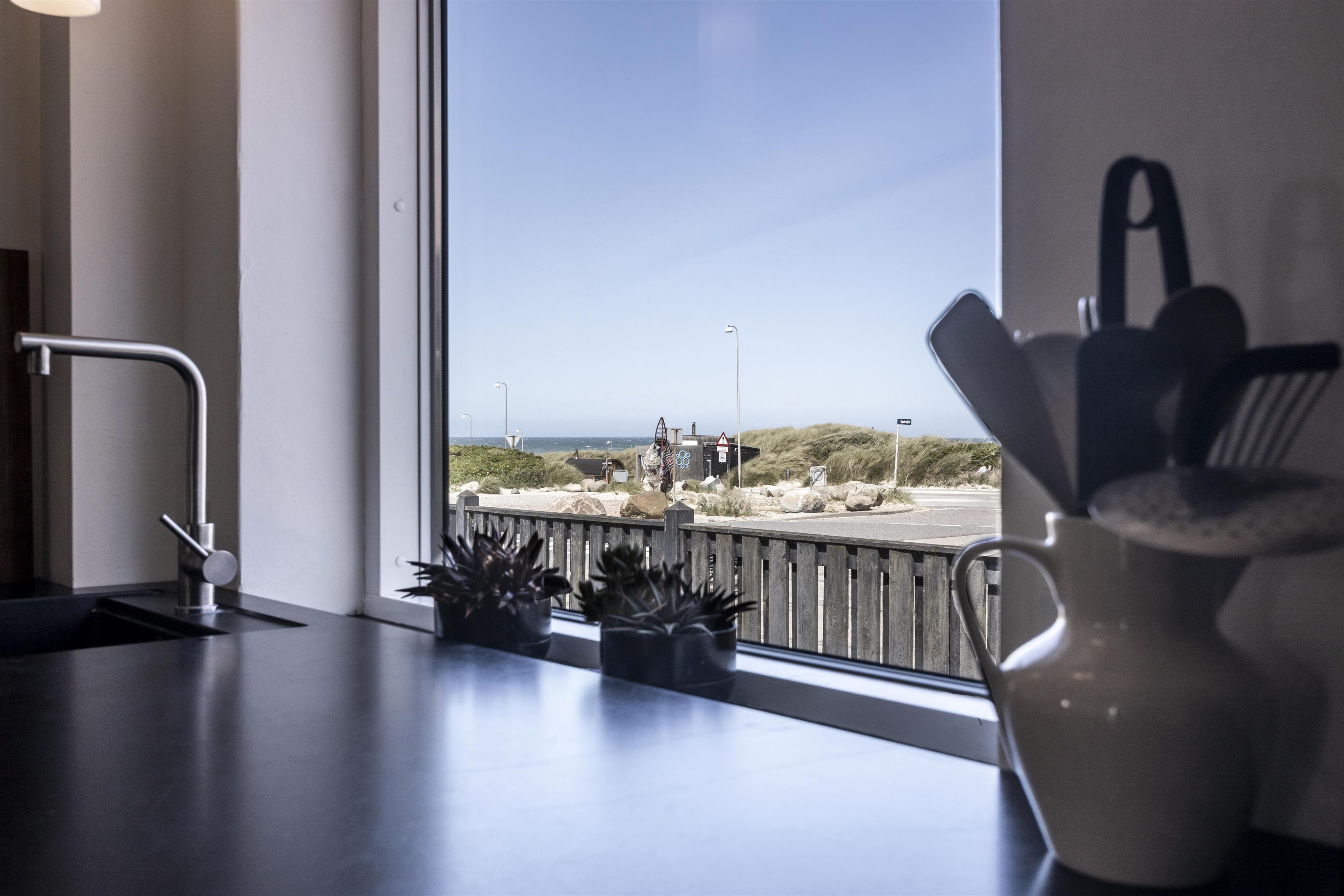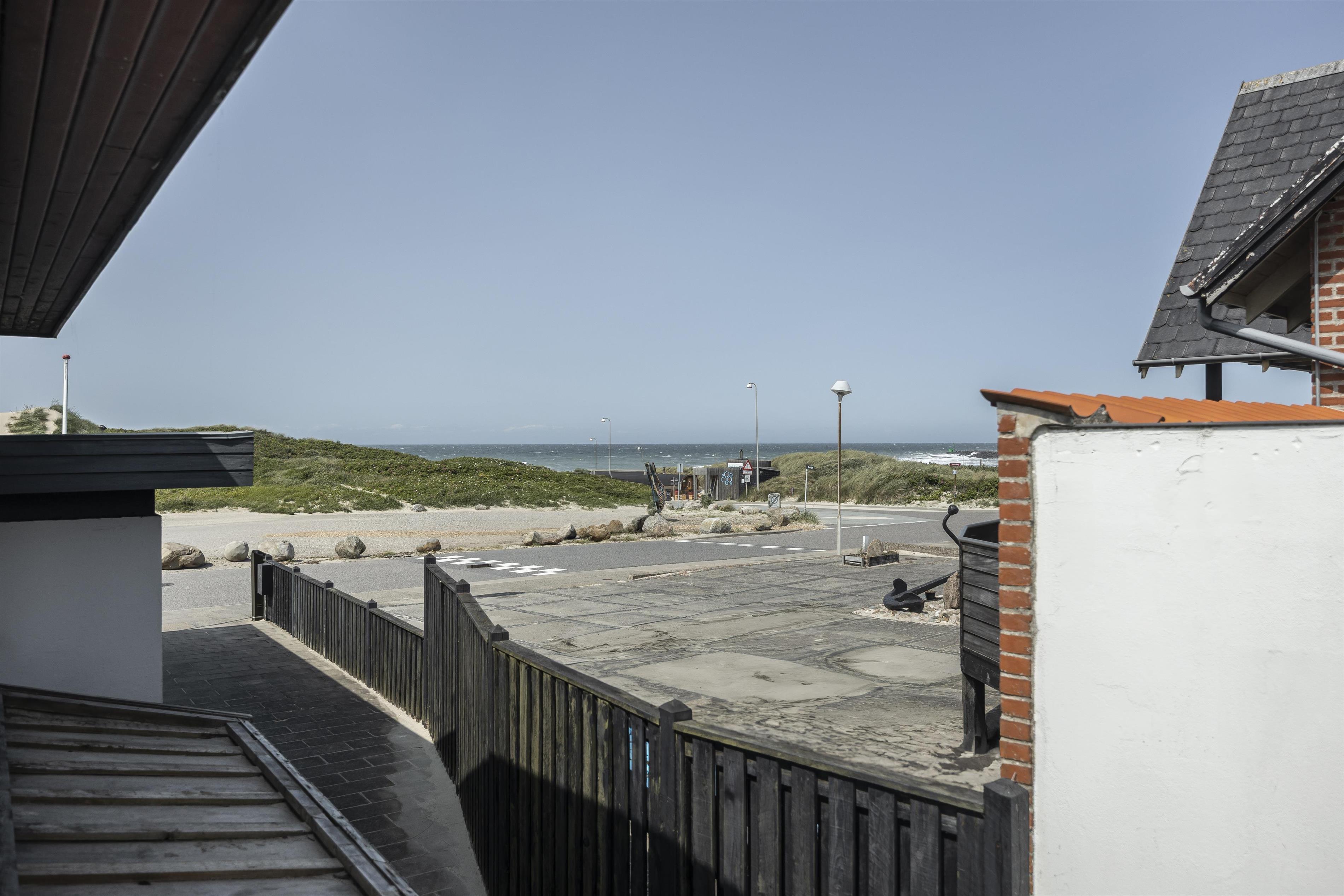 Fra det ene soveværelse på øverste plan er der direkte adgang til en sydøstvendt terrasse, som via en trappe fører ned til en lille, indhegnet have. Her kan I nyde solrige dage og lange sommeraftener med grill og udsigt til Vesterhavet. Fra både huset og terrassen kan I betragte havudsigten og solnedgangen, der farver himlen i flotte nuancer over klitterne – en uforglemmelig oplevelse af ægte ferie ved kysten.