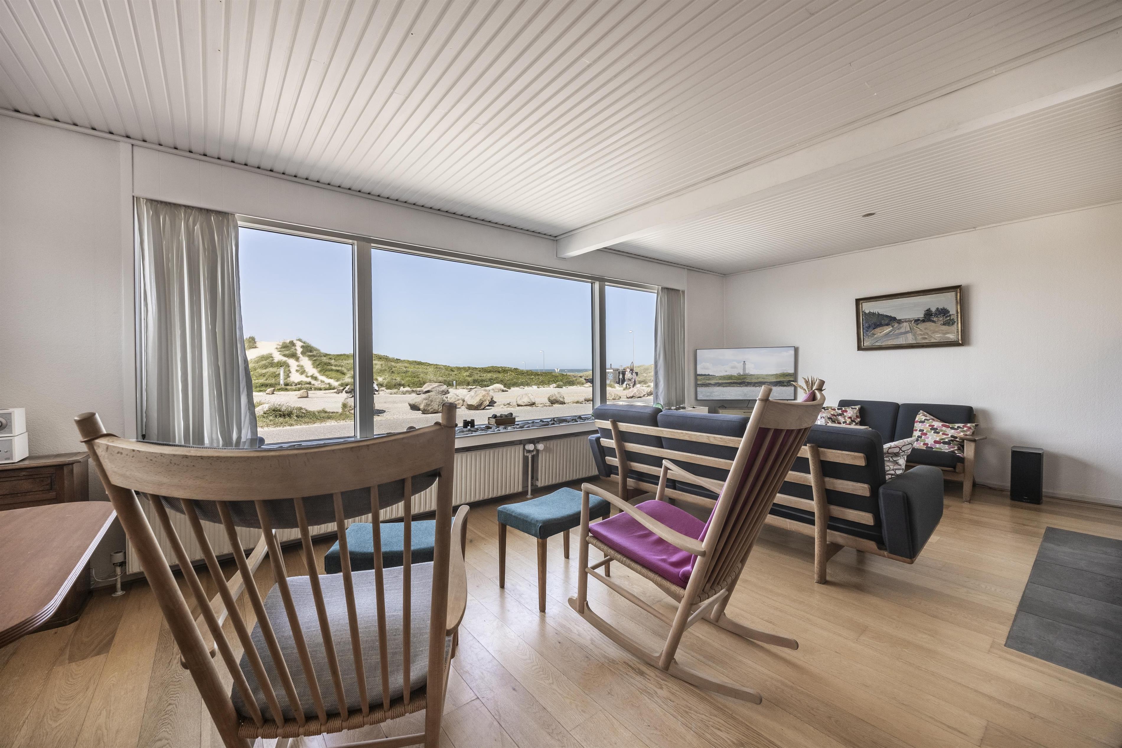 Hold ferie i første række til klitterne og Vesterhavet, med strand, by og havn lige uden for døren. Forestil jer at vågne op til lyden af bølger, mens morgensolen breder sig over klitterne og Vesterhavet. Dette rummelige og helårsanvendelige feriehus i Hirtshals byder på en skøn kombination af byliv, natur og nærvær – alt sammen kun få minutters gang fra både strand, havn og hyggelige caféer og restauranter. Her får I en ferie ved kysten i første række til det rå, nordjyske landskab og med nem adgang til oplevelser året rundt.