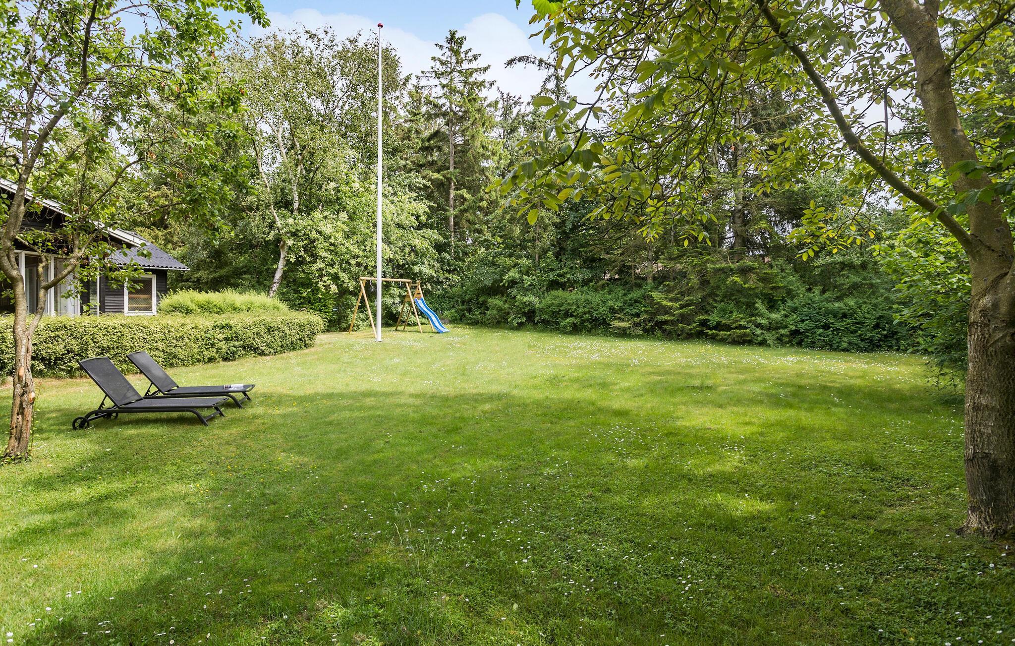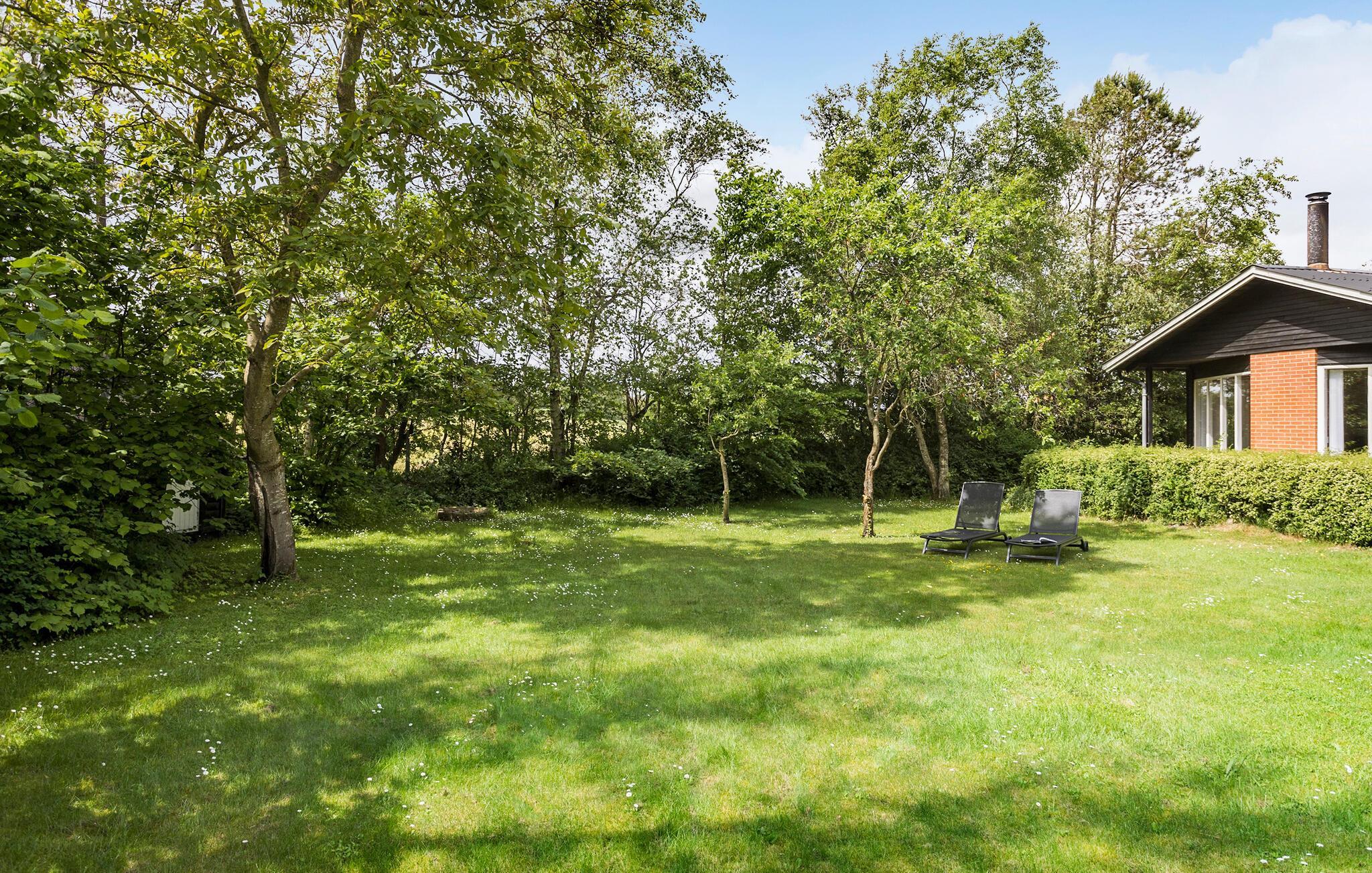 Hyggeligt træhus nær Hjarbæk Fjord med sauna, stor have og gode faciliteter til en afslappende ferie.