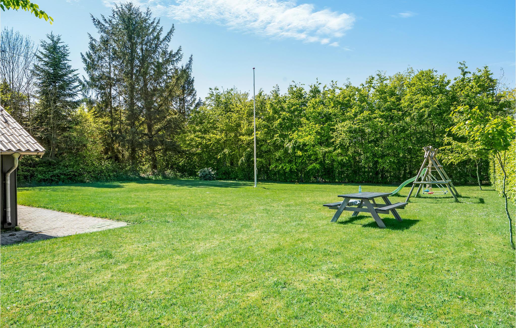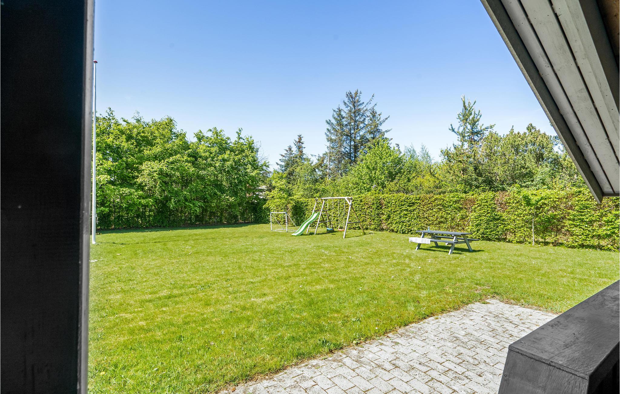 Fra stuen kan I træde ud på den overdækkede terrasse, hvor I kan sidde i skyggen eller i solen med en god bog eller et glas vin om aftenen. Til de mindste er der gynger, rutsjebaner og udendørs legetøj. Læn jer tilbage med en kop kaffe, mens børnene leger og tumler i det fri.