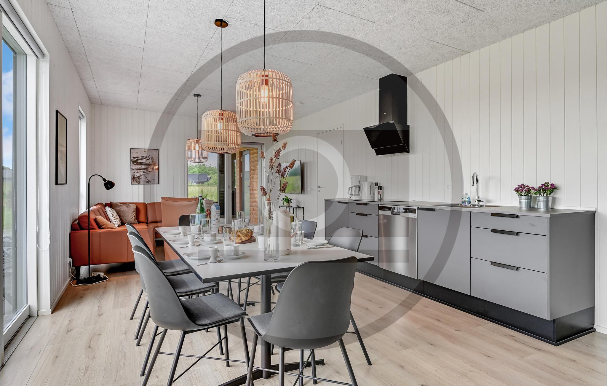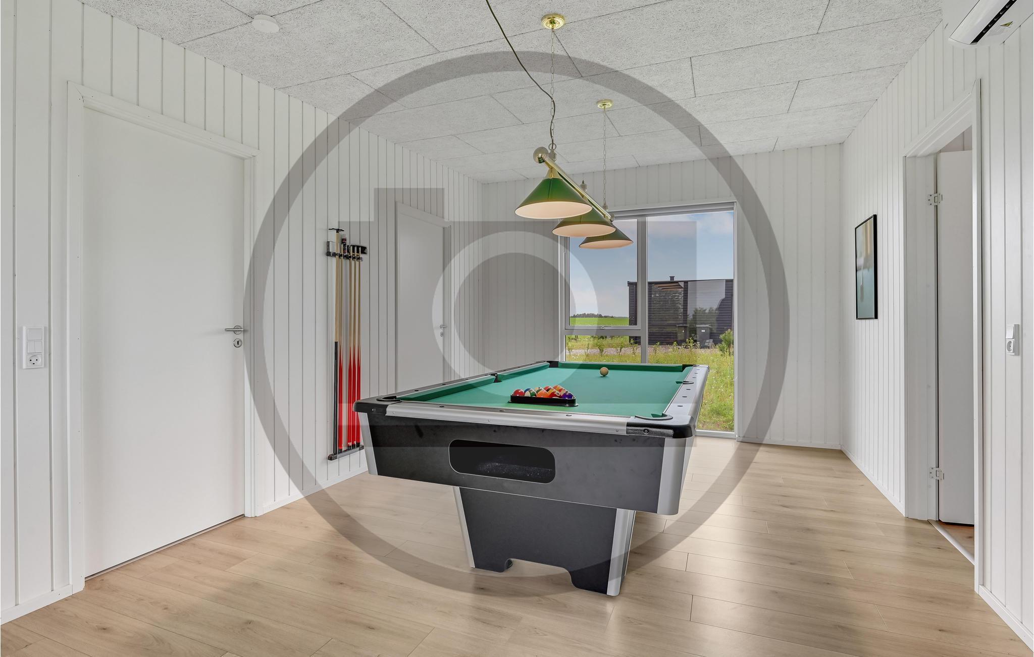 Glæd jer til dette gennemført lækre feriehus, hvor I kan kombinere moderne komfort med naturskønne rammer. Stuen er åbent indrettet med store vinduesfronter, så her fyldes rummet med masser af naturligt lys og giver jer et herligt sted at slappe af. Der er også et aktivitetsrum, hvor I kan tage et spil billard eller bordfodbold, når I trænger til at bevæge jer.