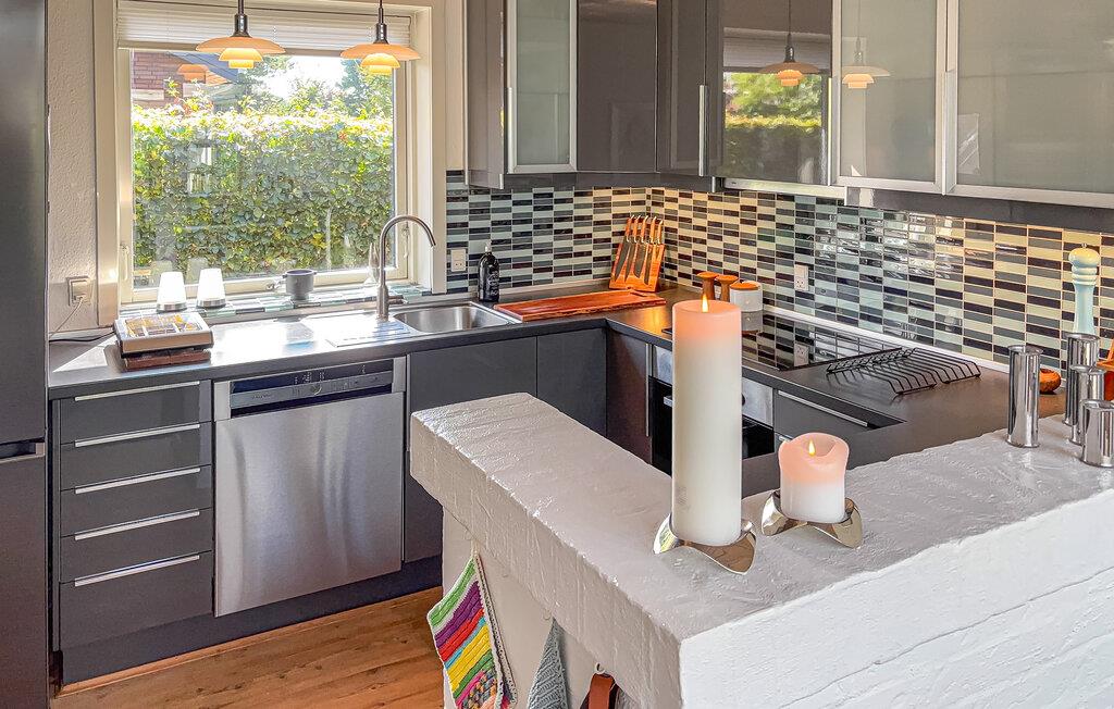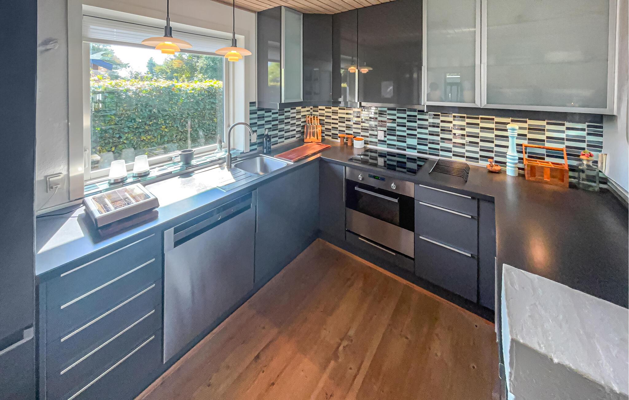 Hold en skøn ferie i jeres charmerende feriehus, kun få minutter fra Vesterhavet. Huset tilbyder en hyggelig atmosfære med stilfulde indretningsløsninger, gennemtænkte detaljer og ideelle tilflugtssteder til fred og ro eller til at tilbringe tid sammen. Opholdsstuen er noget særligt med en harmonisk kombination af moderne design og indbydende komfort. Find jer til rette i den store sofa og nyd en film på fladskærms-tv'et. Rummet føles åbent og imødekommende takket være de store vinduer, mens varme farver og naturlige materialer skaber en hyggelig atmosfære. Lav mad mellem køkkenets elegante facader og stilfulde fliser og nyd jeres måltider i den tilstødende spisestue med komfortable stole og stemningsfuld belysning.