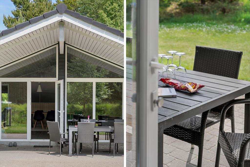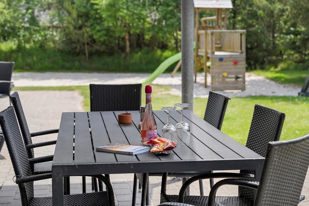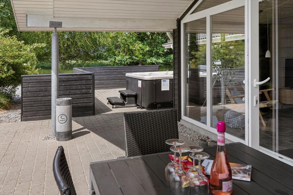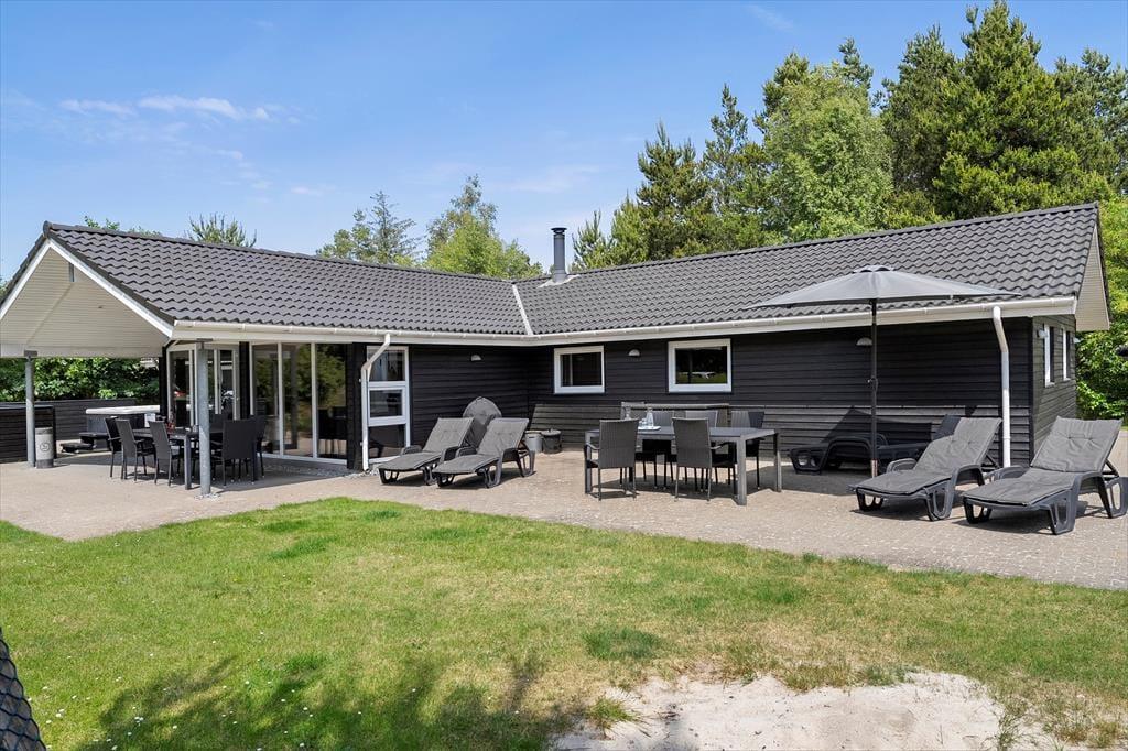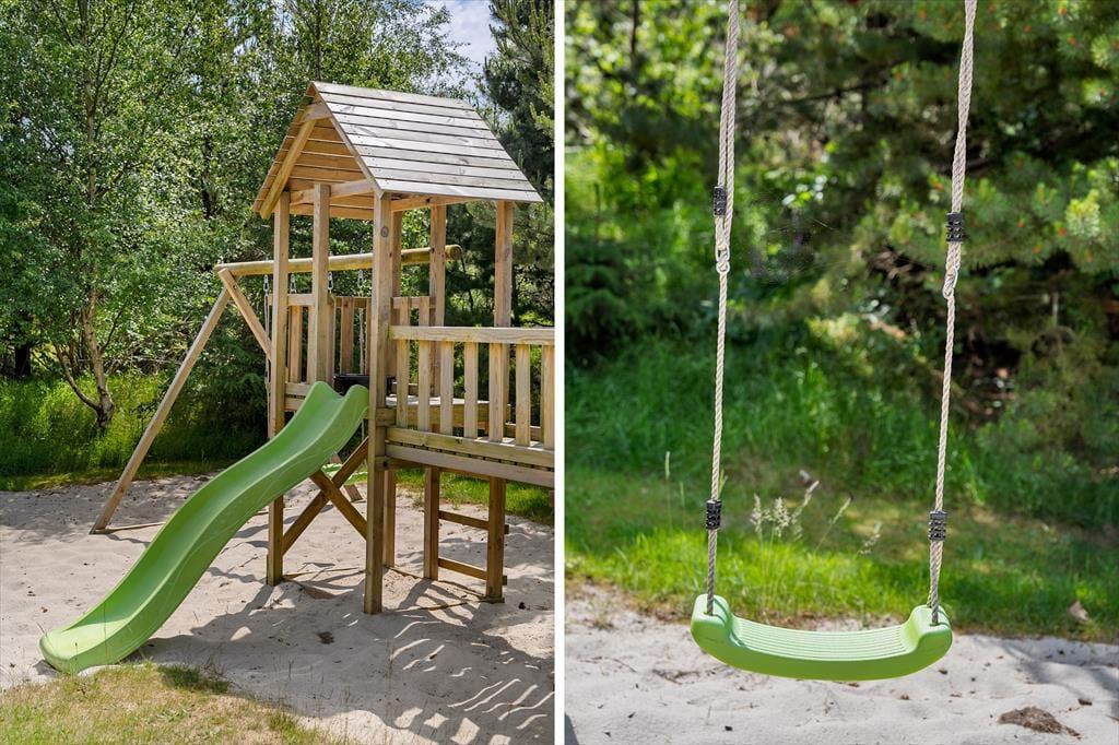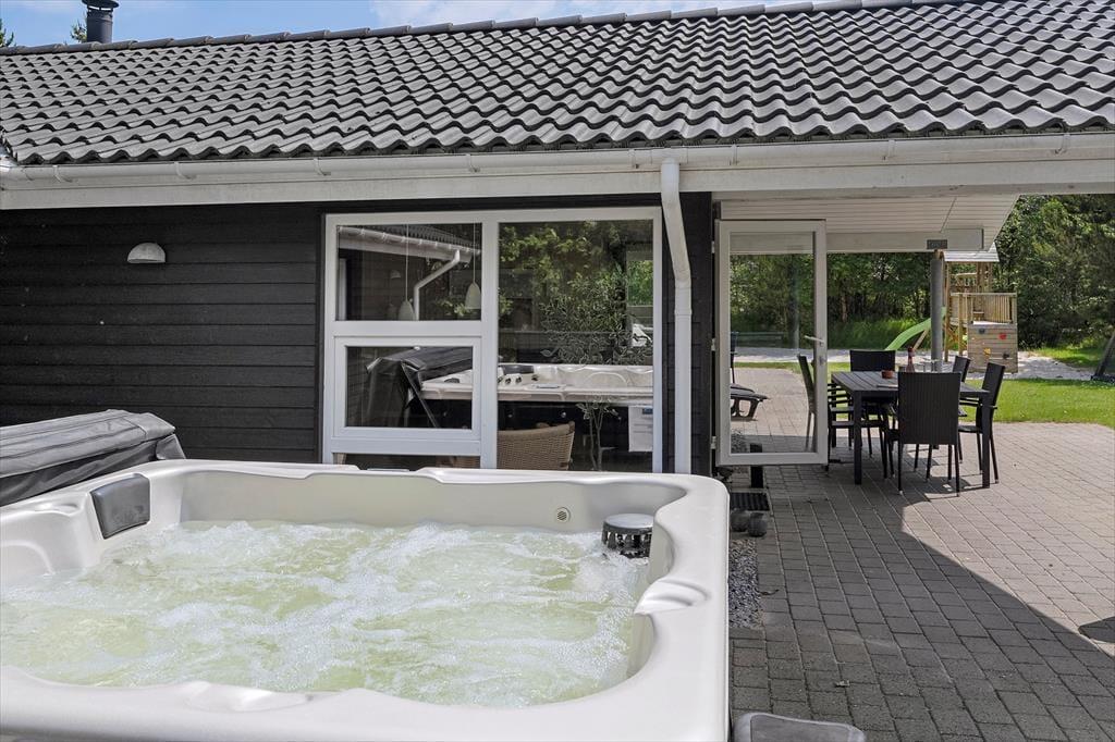 Den 1500 m2 store naturgrund giver jer et væld af udfoldelsesmuligheder: De yngste feriegæster kan gynge og lege i sandkassen, mens de lidt ældre kan dyste på volleybanen, og både store og små kan drible med fodbolde på græsplænen og se, om de kan få den i mål. I kan også tage en stille stund på terrassen – der er flere opholdspladser at vælge imellem, alt efter om I vil sidde i solen eller i skygge under overdækningen. En grill og et havebord er til rådighed, hvis I vil spise ude i det fri, og det udendørs spabad tilbyder jer en perfekt form for udendørs livsnyderi.