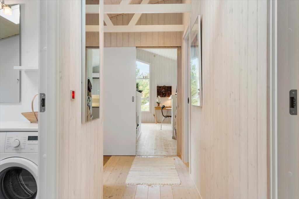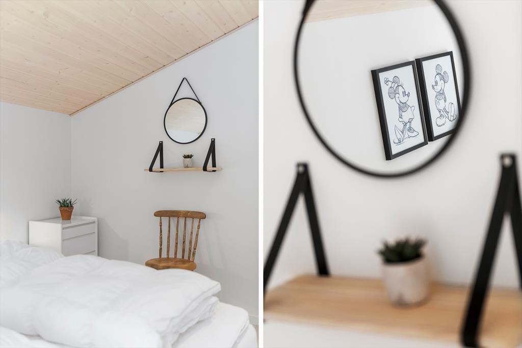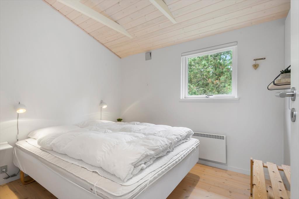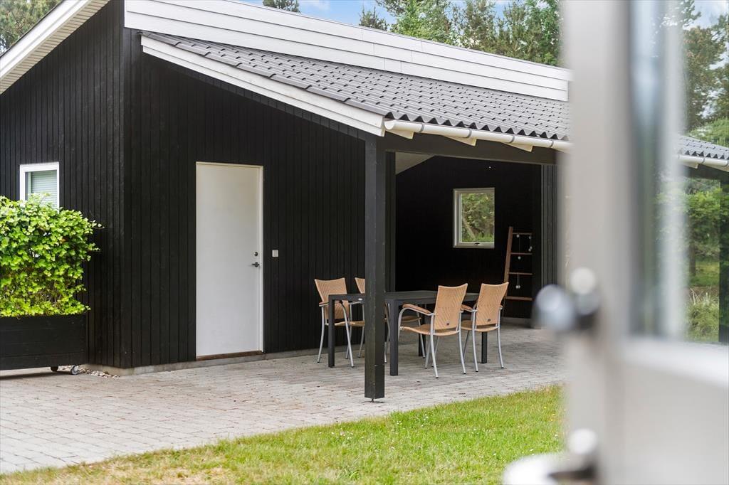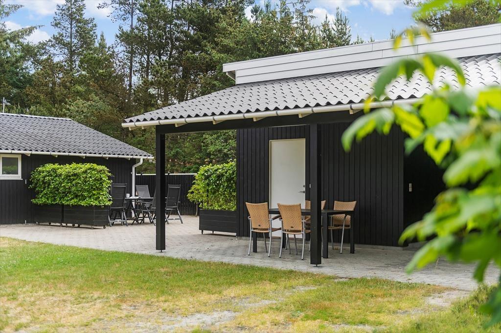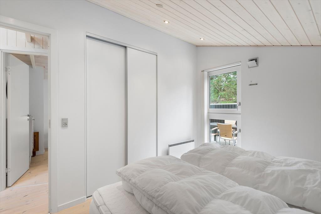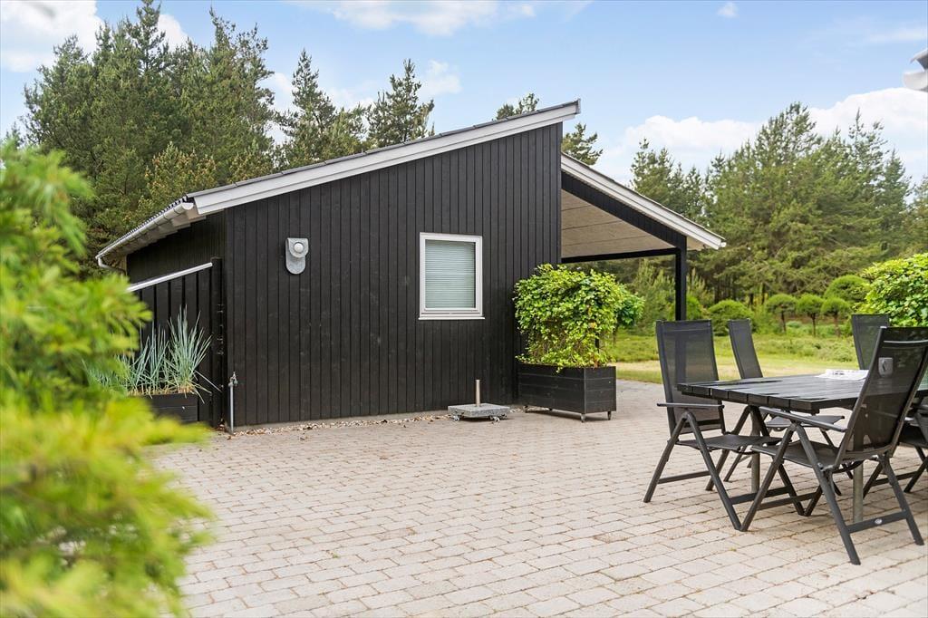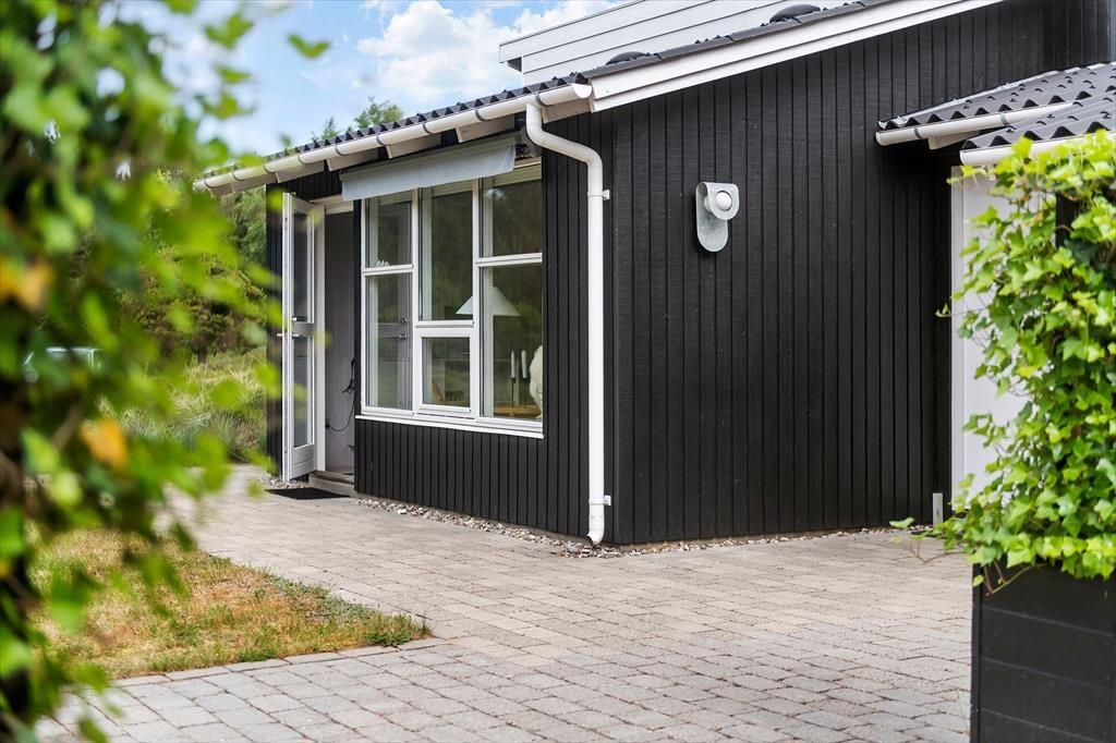 Mens sommerhusets indre er klædt i lyse farvetoner, er det grøn i alle nuancer, der pryder naturgrunden. I sæsonen lyser lyngen op med sin klare lilla farve, og med frit udsyn til den høje blå himmel, bliver det ikke meget smukkere end her i de fredelige omgivelser. På det flisebelagte og dejligt ugenrede terrassemiljø har du rig mulighed for at finde både sol og læ– og skygge, hvis det er det, du går efter – og så kan du endda se frem til at sidde komfortabelt i havemøblerne. Til børnene er der magien at gå på opdagelse eller lege fangeleg i de smukke naturomgivelser.