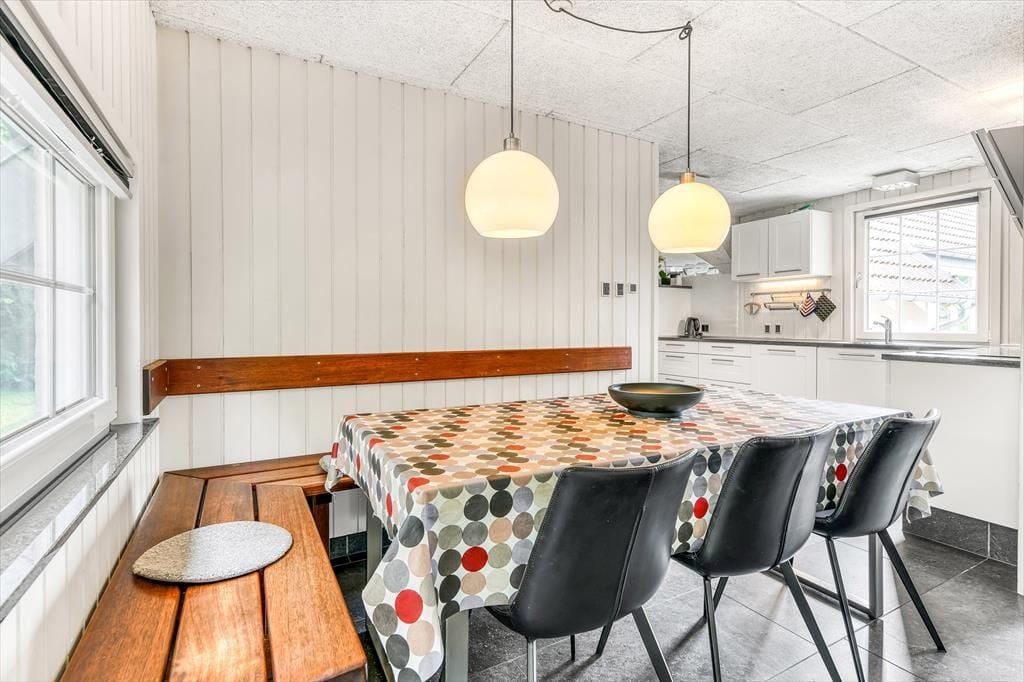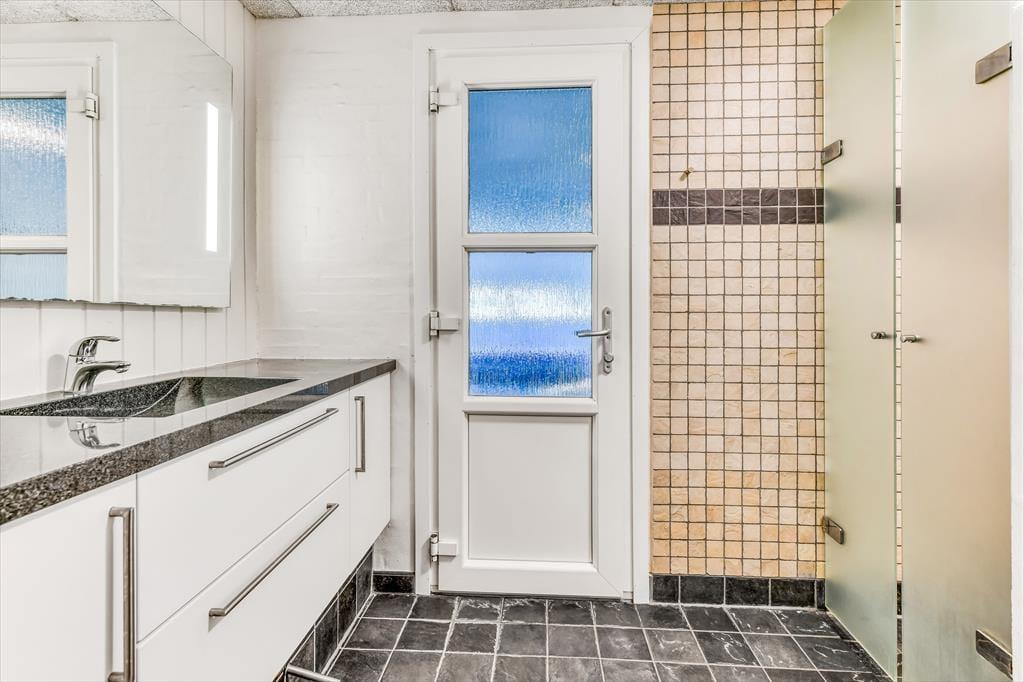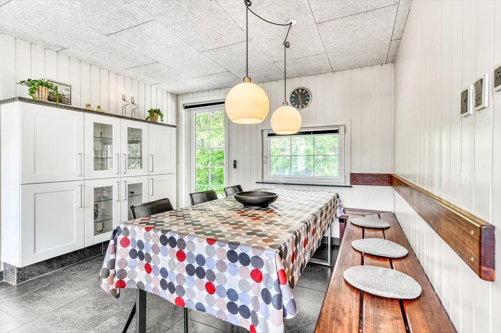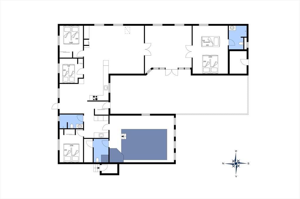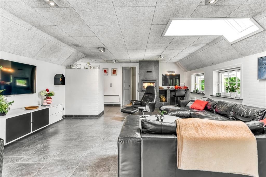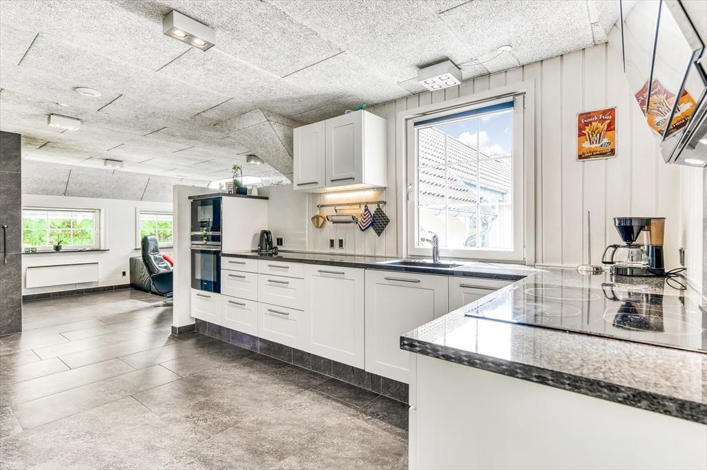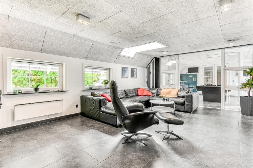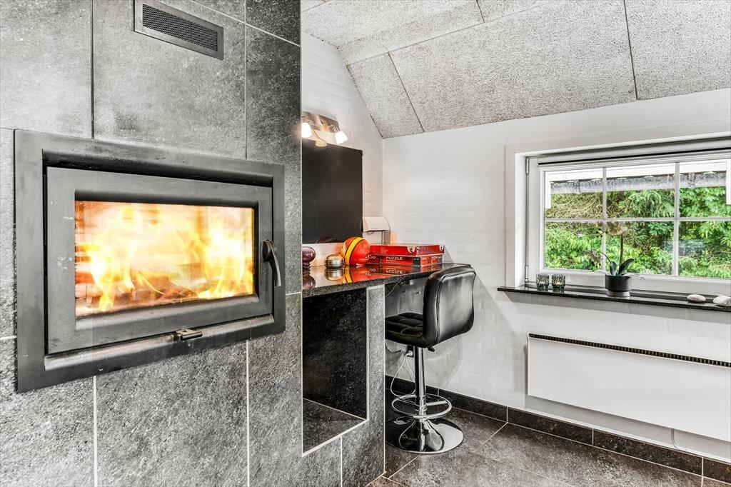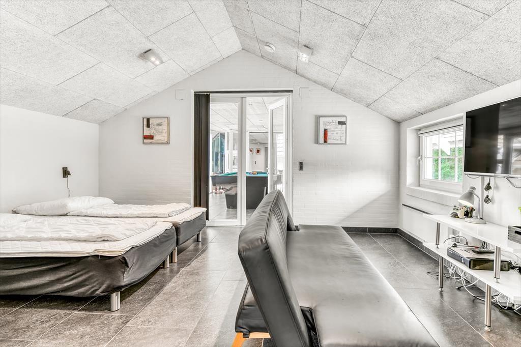 Kort fortalt er sommerhuset et velindrettet eksemplar på hele 210 m2, og hvis du vil holde ferie med både familie og venner, kan det fint lade sig gøre. Med fire soveværelser og hele tre badeværelser kan der nemlig være op til ni personer inden døre. En energivenlig varmepumpe står klar til at opvarme både swimmingpoolens vand såvel som rummene – og hvis det er køligt udenfor, kan du tænde op i stuens indbygningspejs for at sprede ekstra varme og hyggestemning. Et veludstyret køkken er integreret med stuen, og glasdøre gør det muligt at kigge lige ind i aktivitetsrummet, hvor du kan udfordre de andre i billard, bordtennis, airhockey eller dart. Stuens arbejdskrog er perfekt, hvis du skulle få brug for at tjekke din computer, og hvis ungerne vil game, er der en hyggelig krog med spillekonsol i huset. Det er dog sandsynligt, at både du og dem hellere vil bruge tiden i den lækre wellnessafdeling, der byder på både swimmingpool, spabad og sauna.