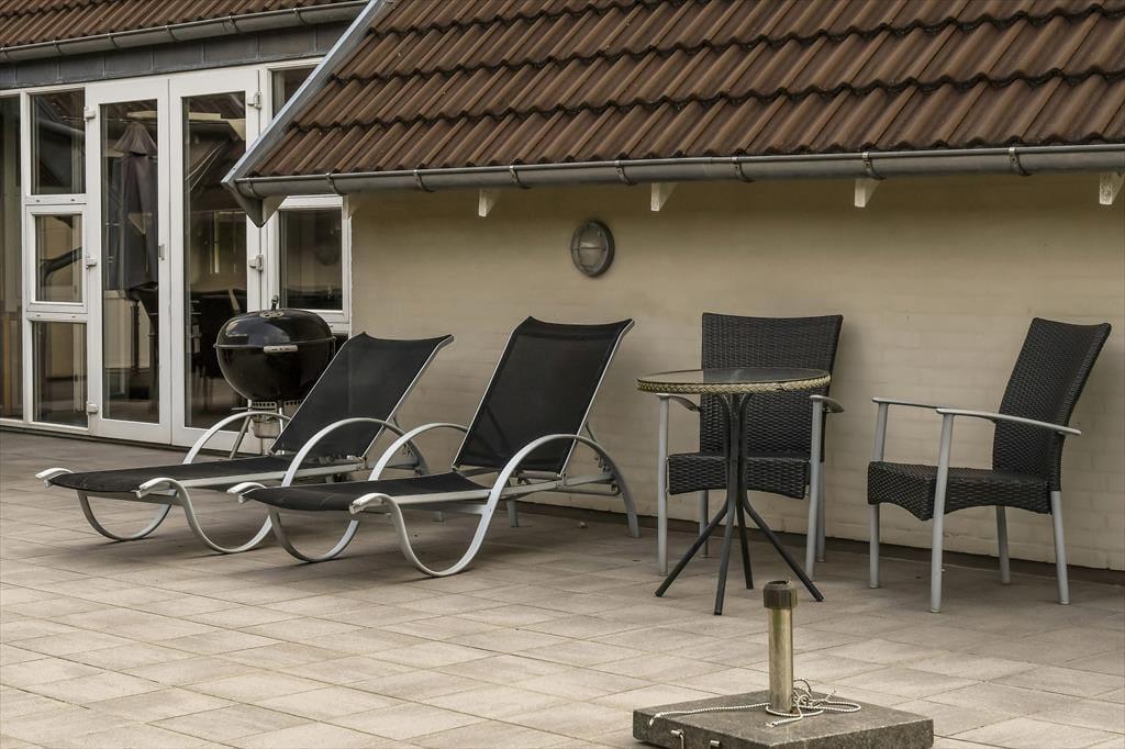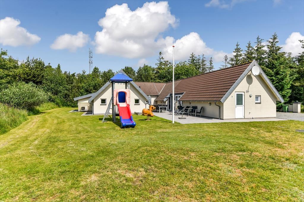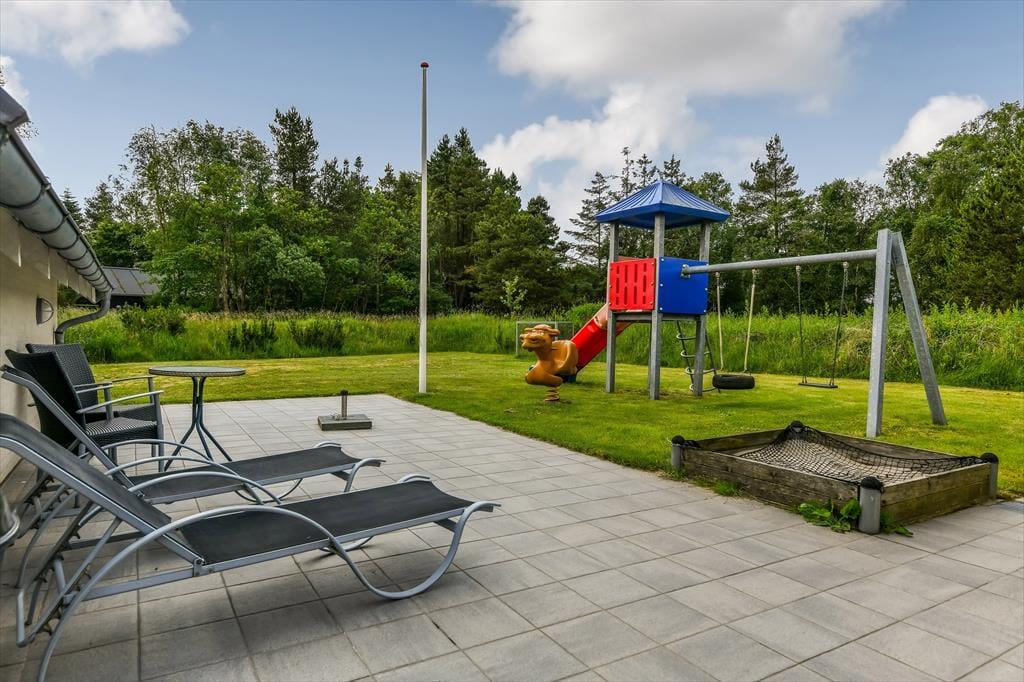 Den store naturgrund er med til at forsøde feriedagene, for der er solrige terrasser til de rolige stunder og masser af plads at boltre sig på. Græsplænen indbyder til boldspil, og der er endda fodboldmål til rådighed for de sportsglade. De yngste feriegæster kan hygge sig med at rutsje, gynge, vippe og bygge slotte i sandkassen – bemærk den rare detalje, at alle legeredskaberne står lige ved den sydvestvendte terrasse, så de voksne kan have et øje på ungerne fra havestolene. Om aftenen kan hele selskabet samles til et lækkert måltid tilberedt på grillen, og hvis vejret er lunt og stille, kan I måske ligefrem blive siddende ude helt til sengetid.