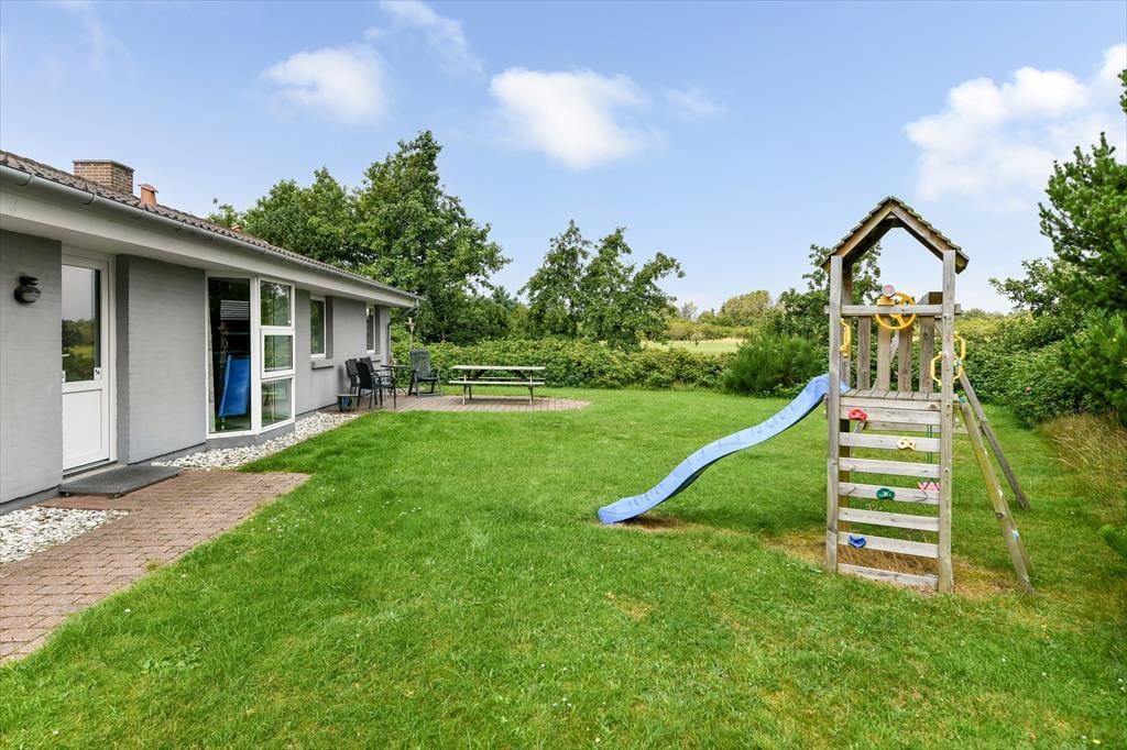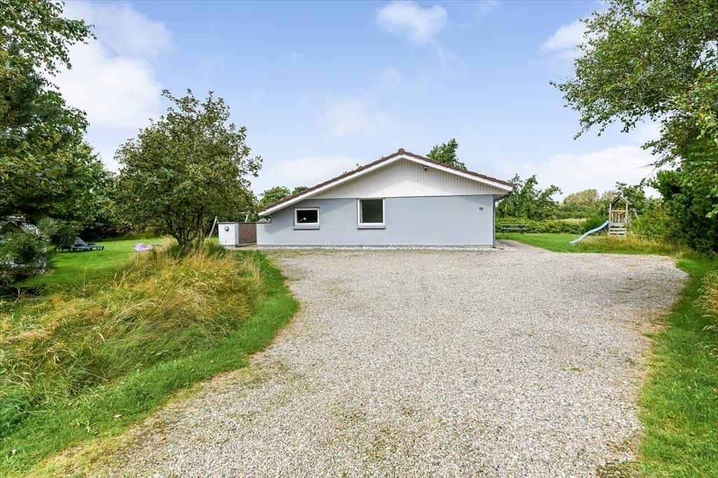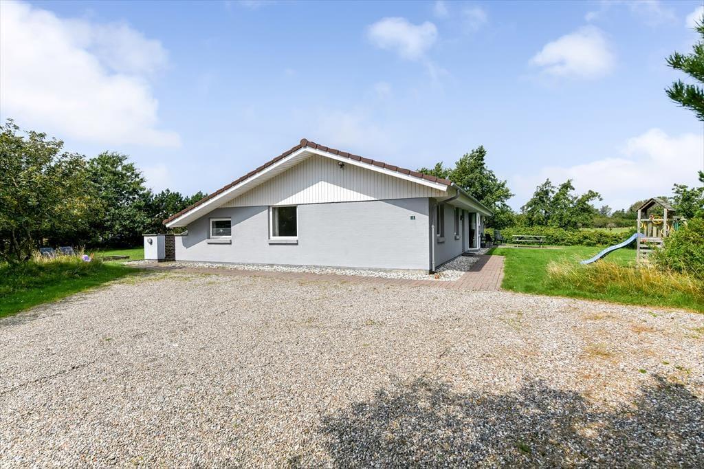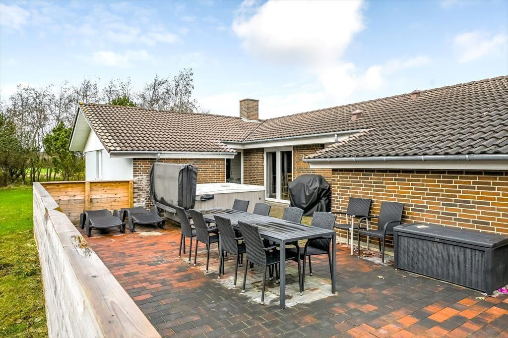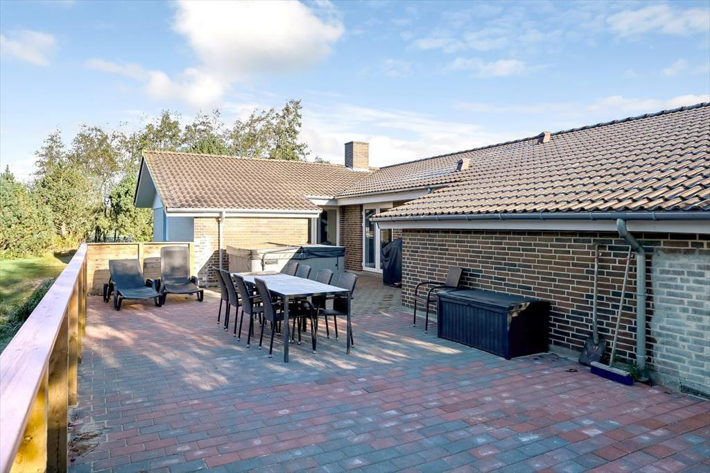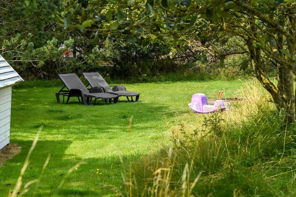 Også ude i det fri kan du se frem til wellness, for der står et stort spabad på husets fantastiske terrasse. Hvis du sidder her i løbet af dagen, har du udsigt til Ho Bugt, mens du slapper af, og hvis mørket er faldet på, kan det i stedet være stjernerne på aftenhimlen, du nyder synet af. Rundt omkring på grunden er der også andre tillokkende opholdspladser, og på græsplænen er der god plads til både boldspil og fangeleg. Udearealerne byder desuden på masser af underholdning til børnene, for der er blandt andet et legehus, en sandkasse og en sansegynge.