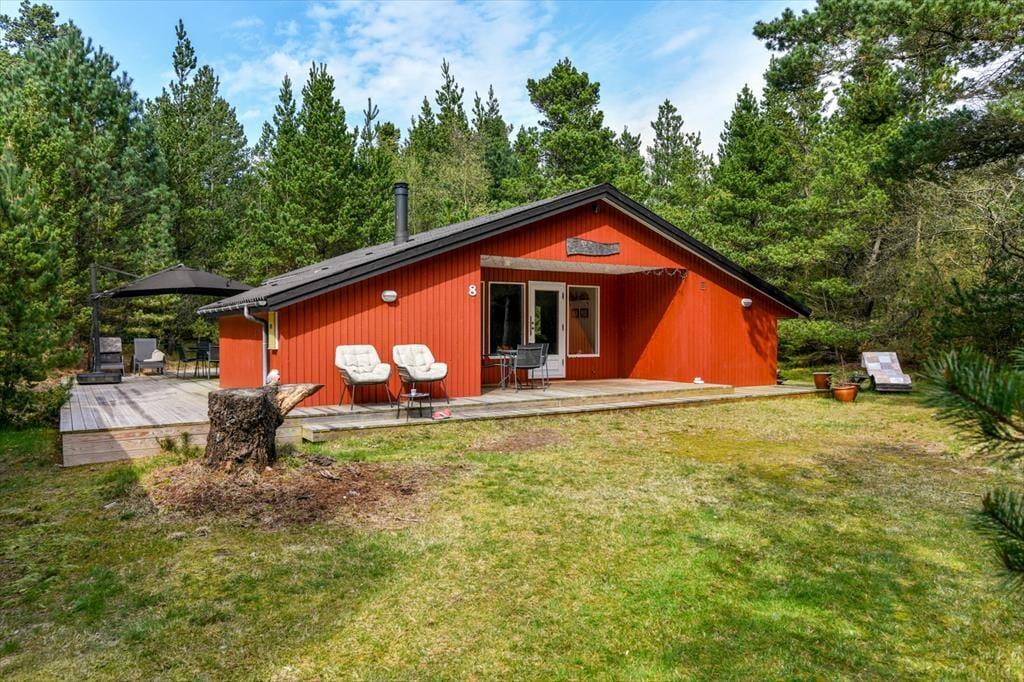 En af de helt store fordele ved sommerhuset på Hedevej 8 er den lukkede og hyggelige have med masser af plads til leg. Haven er ideel til leg og boldspil med børnene. Den ugenerede terrasse er omkranset af grønne træer og buske, og det skaber en privat oase, hvor du kan nyde din morgenkaffe, grille aftensmaden eller blot slappe af i en liggestol. Der er også et overdækket terrasseområde, hvor I kan sidde i ly for duggen og nyde de lange, lyse sommeraftener.
