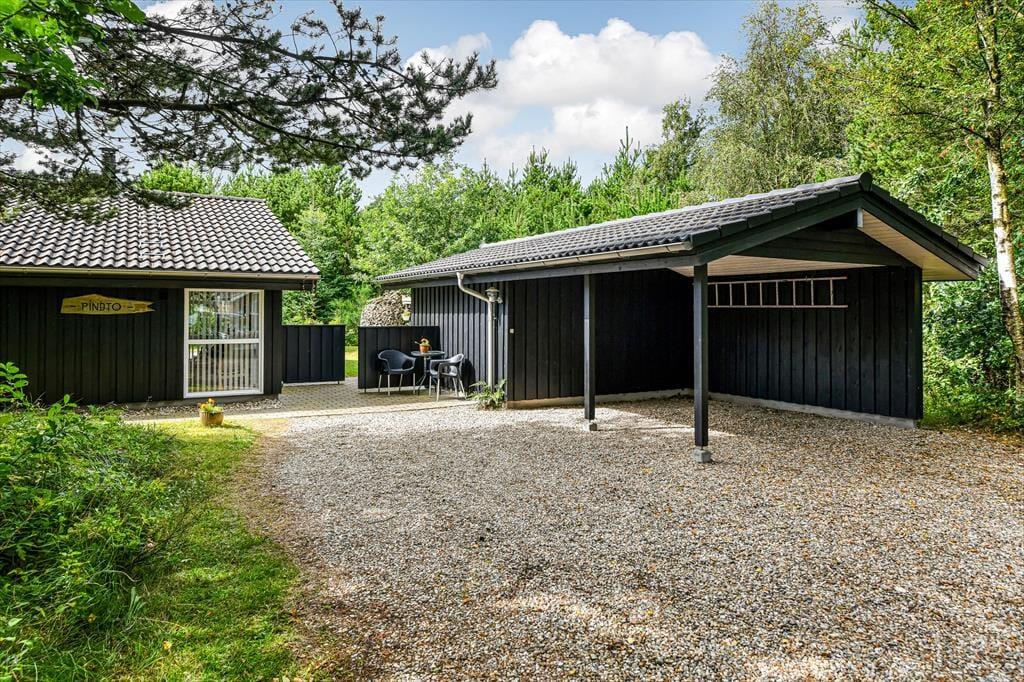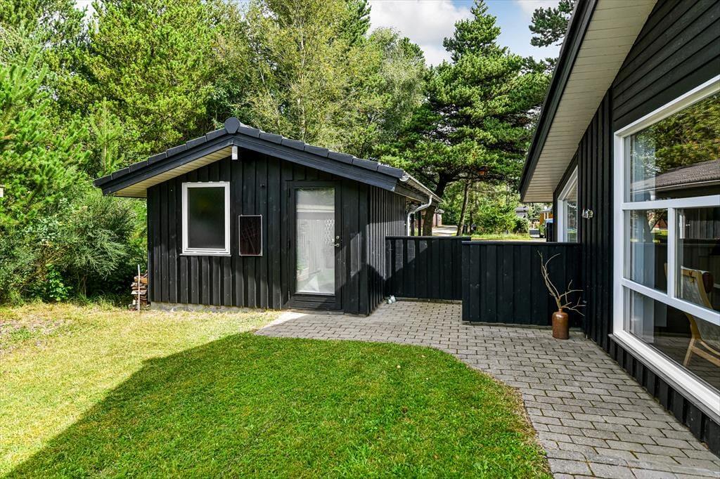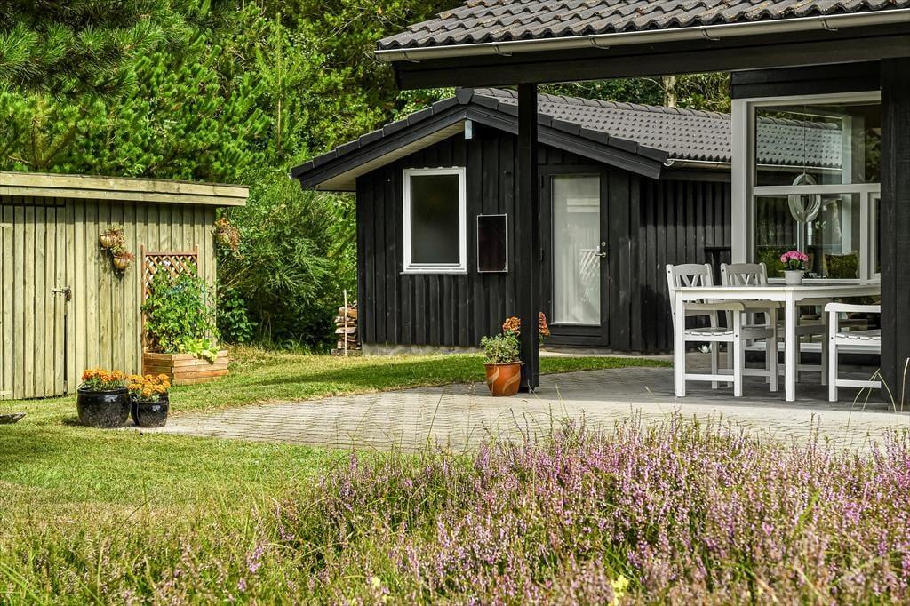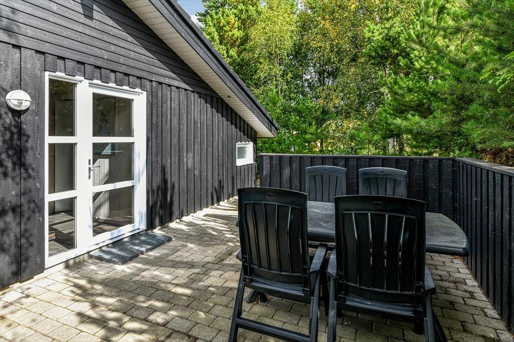 Huset er omgivet af en stor terrasse, der gør det muligt at nyde solens stråler hele dagen. Den sydøstvendte terrasse er ideel til morgenkaffen, mens du nyder de første solstråler. På den sydvestlige terrasse kan du nyde solen hele dagen. Den nordvestvendte terrasse er delvist overdækket og giver en perfekt ramme til lange sommeraftener, hvor du kan nyde den kølige aftenbrise. Naturen omkring sommerhuset er en fryd for sanserne. Med høje træer og frodig vegetation kan du ofte være heldig at få et glimt af harer, ræve eller krondyr, der besøger grunden.