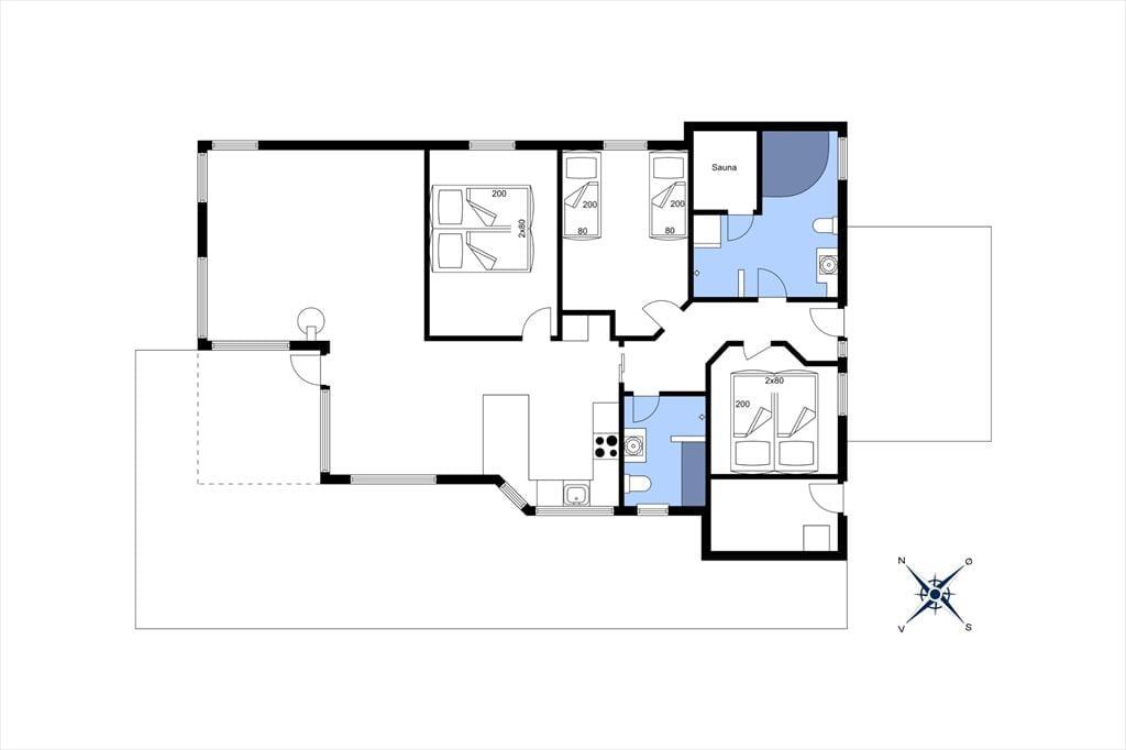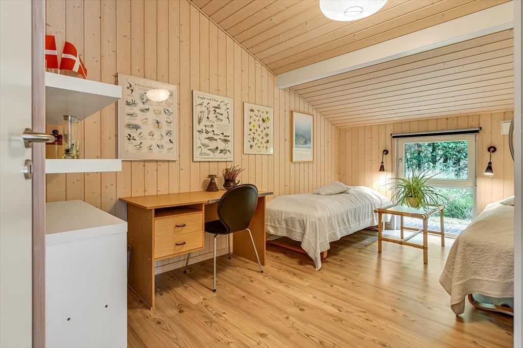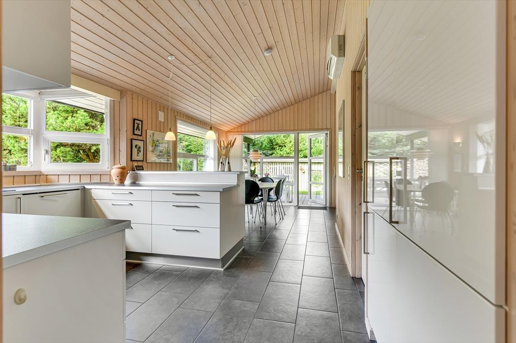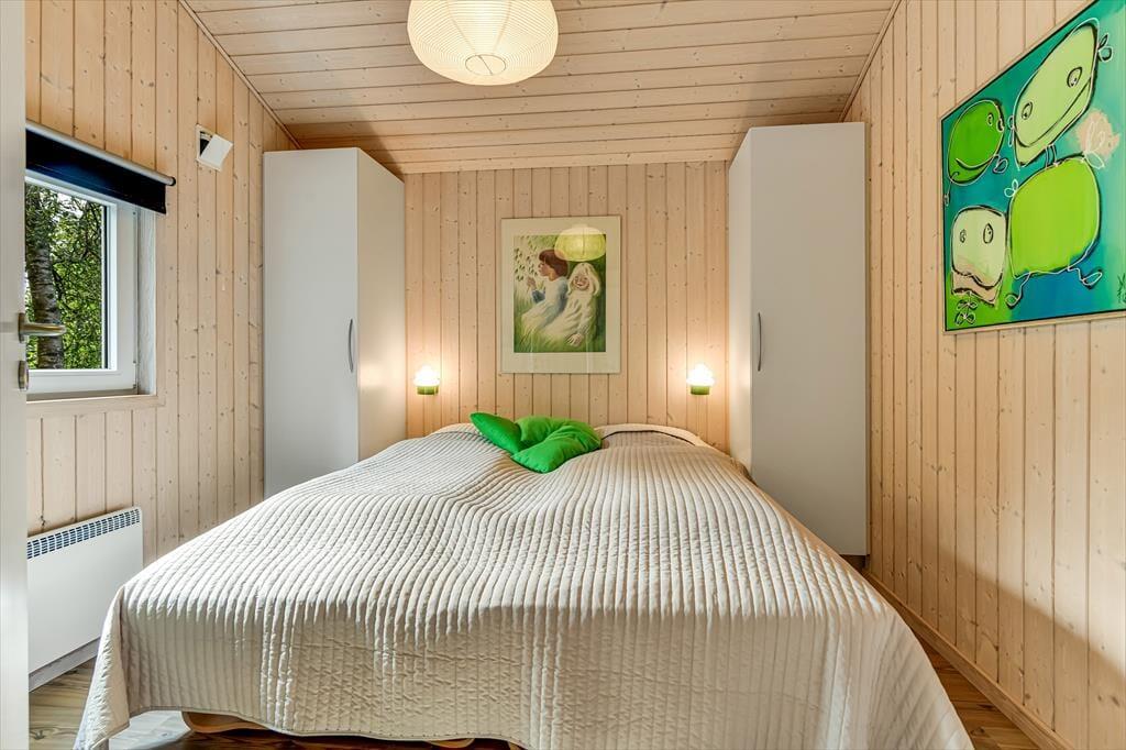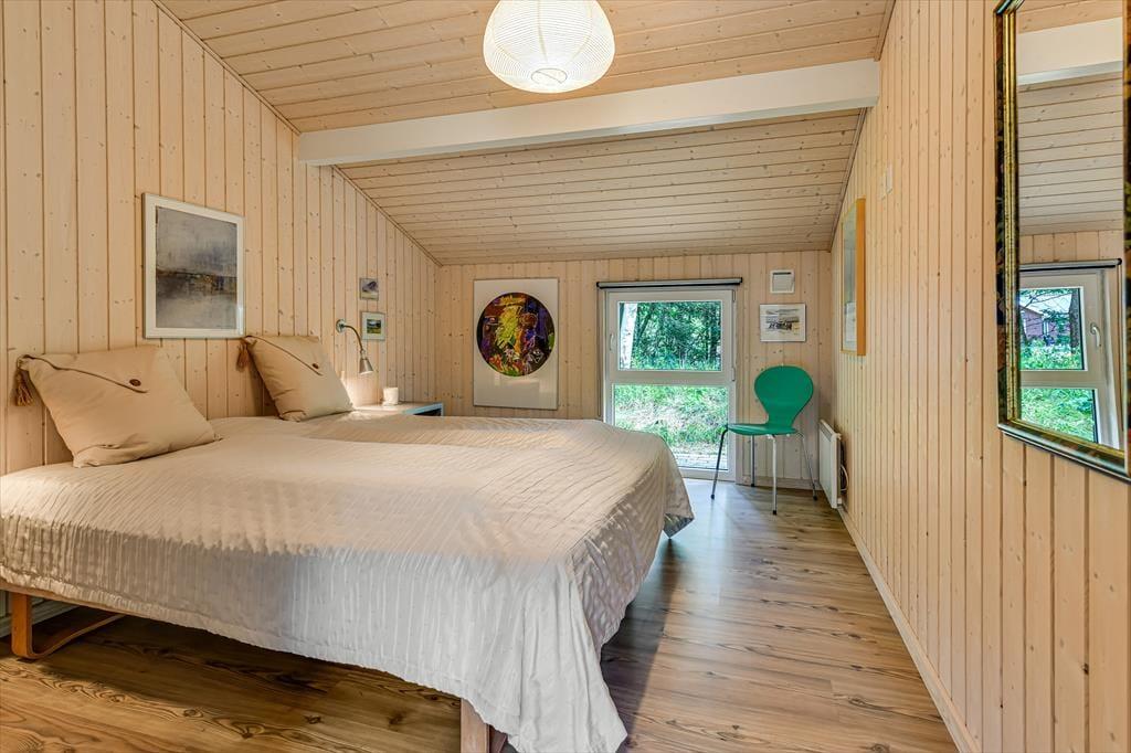 Når du træder ind i sommerhuset, bliver du mødt af en lys og imødekommende atmosfære. Det åbne køkken-alrum er hjertet af huset, hvor du kan nyde madlavningen og samtidig være en del af samtalerne, mens du ser ud over den smukke, grønne natur gennem de store vinduer. Brændeovnen i stuen bidrager til en varm og hyggelig stemning, der er ideel til afslappende aftener uanset årstiden. Der er gulvvarme i hele huset bortset fra soveværelserne, hvor der er el radiator. Sommerhuset byder på tre rummelige soveværelser, der sikrer komfortable nætter for hele familien. Der er 2 badeværelser begge med gulvvarme; det ene er stort og luksuriøst med både spa og sauna – perfekt til afslapning og selvforkælelse efter en dag fyldt med aktiviteter.