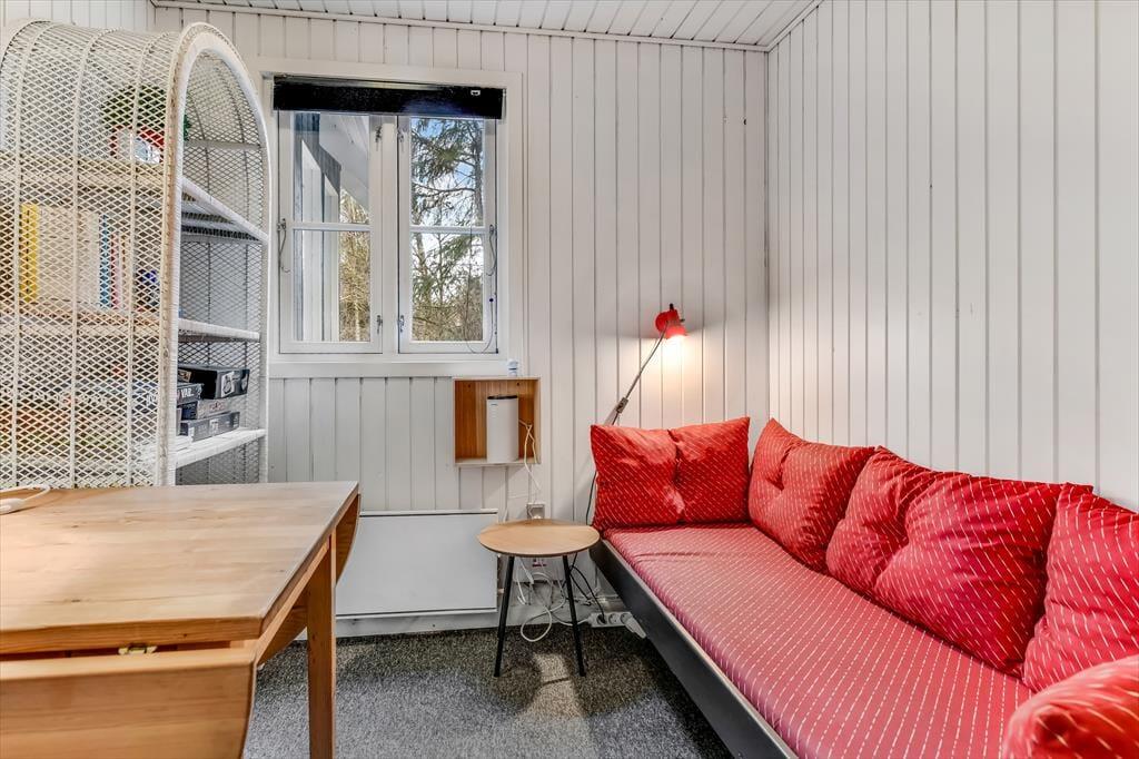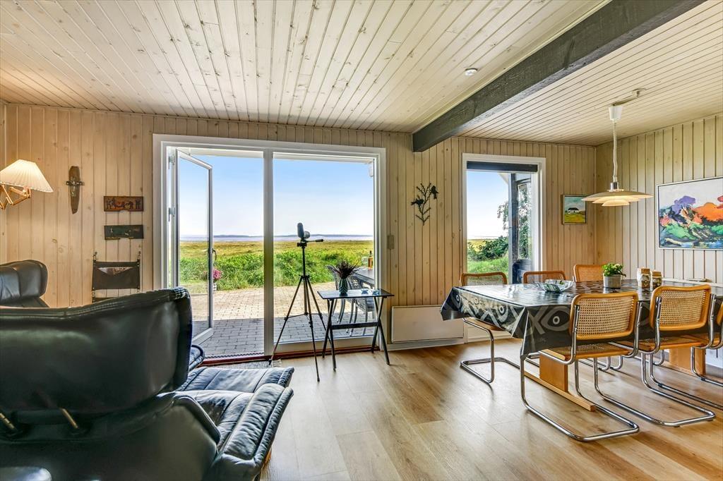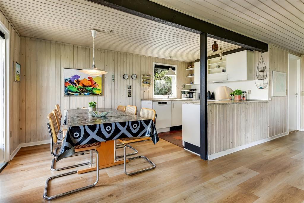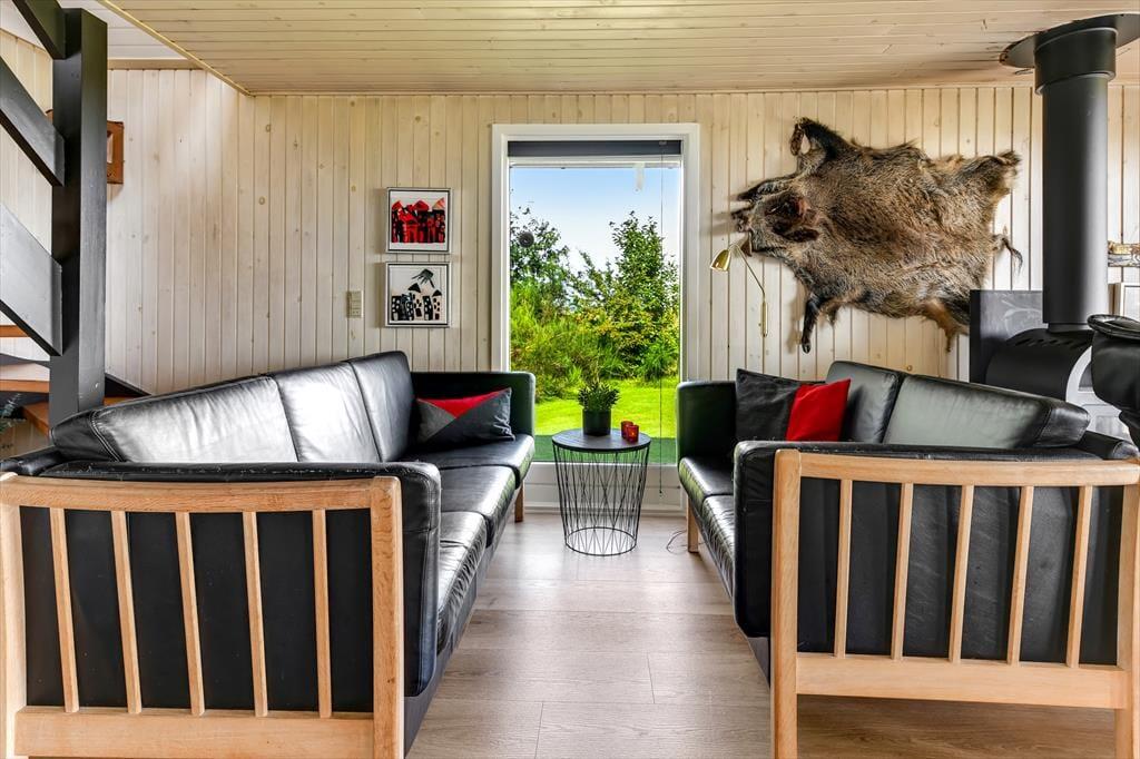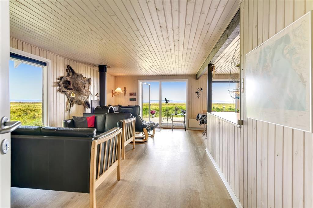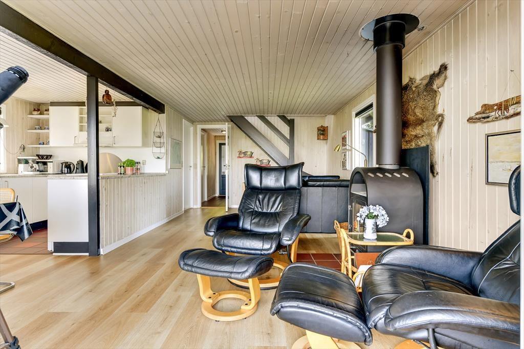 Når du træder indenfor i sommerhuset på Skaubjergvej 9, mødes du af en hyggelig og enkelt indretning, der sikrer et afslappende ophold. De åbne rum og den lyse atmosfære skaber en behagelig ferieoplevelse, hvor du hurtigt kan føle dig hjemme. Indretningen understøtter en rolig stemning, og det store vinduesparti giver dig en vidunderlig udsigt over det omkringliggende landskab. Når du sidder i stuen, kan du nyde en varm drik foran brændeovnen og lade blikket glide ud over det smukke panorama, der strækker sig over Ho Bugt. Huset har en indbydende atmosfære, der gør det nemt at slappe af og nyde tiden sammen med familie og venner.