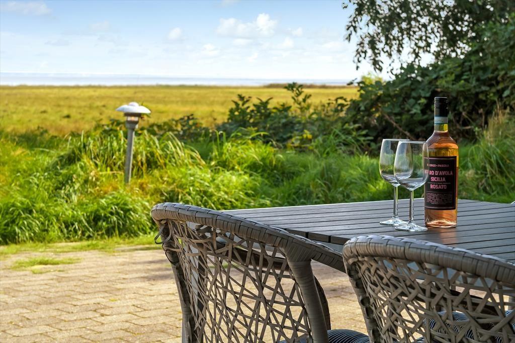 Den store terrasse er husets trumfkort, hvor du kan tilbringe mange gode stunder. Uanset om du ønsker at solbade på en varm sommerdag, grille et lækkert måltid eller blot sidde og nyde den friske luft, er terrassen det perfekte sted at gøre det. Den uforstyrrede beliggenhed sikrer, at du kan slappe af uden forstyrrelser, mens du ser ud over Ho Bugt. Her er rigeligt med plads til både afslapning og leg, og du vil finde, at det åbne udendørsareal giver en fantastisk mulighed for at nyde de lange sommeraftener med en smuk solnedgang som baggrund.