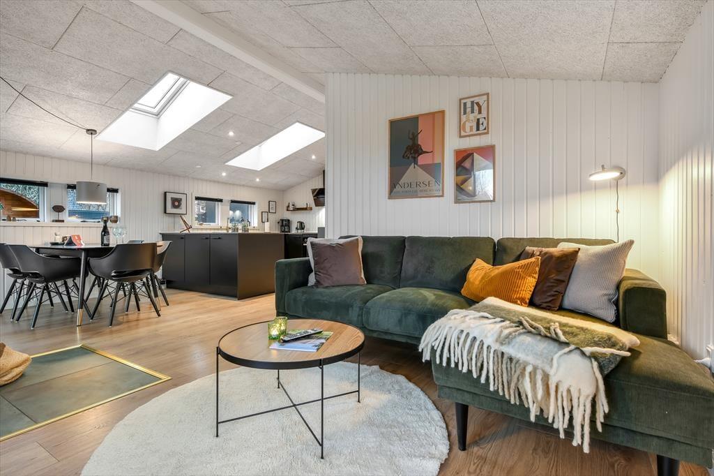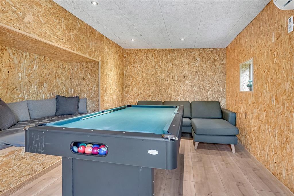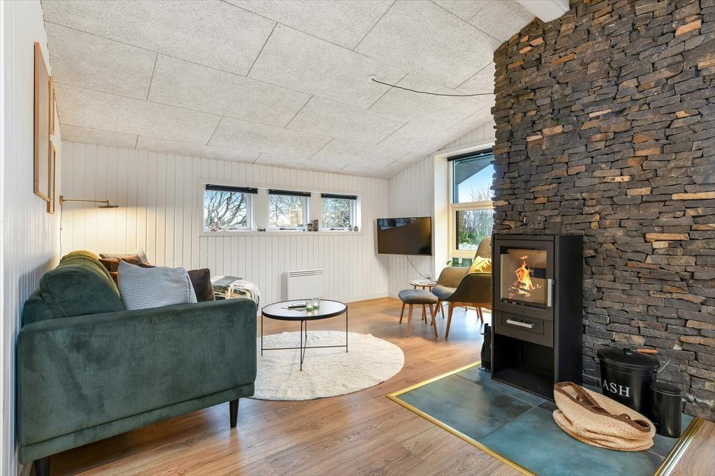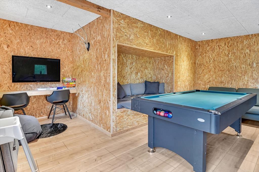 Sommerhuset præsenterer sig med en indbydende atmosfære, der gør det nemt at føle sig hjemme fra det øjeblik, du træder ind. Den stilfulde indretning kombinerer moderne komfort med klassisk hygge, hvilket skaber en behagelig ramme for din ferie. Huset byder på et veludstyret køkken, hvor du kan tilberede lækre måltider, som du kan nyde i den rummelige spise- og opholdsstue. Her er der også plads til at samles omkring brændeovnen, som skaber en varm og hyggelig stemning, især på de køligere aftener. I kan bruge masser af tid i det dejlige aktivitetsrum, hvor du kan finde pool/billardbordet og en hyggelig alkove giver mulighed for at sidde og læse i en god bog. En praktisk skriveplads sikrer, at du nemt kan tage hånd om hverdagens opgaver, selv når du er på ferie, eller børnene kan sidde her og tegne eller se en film.