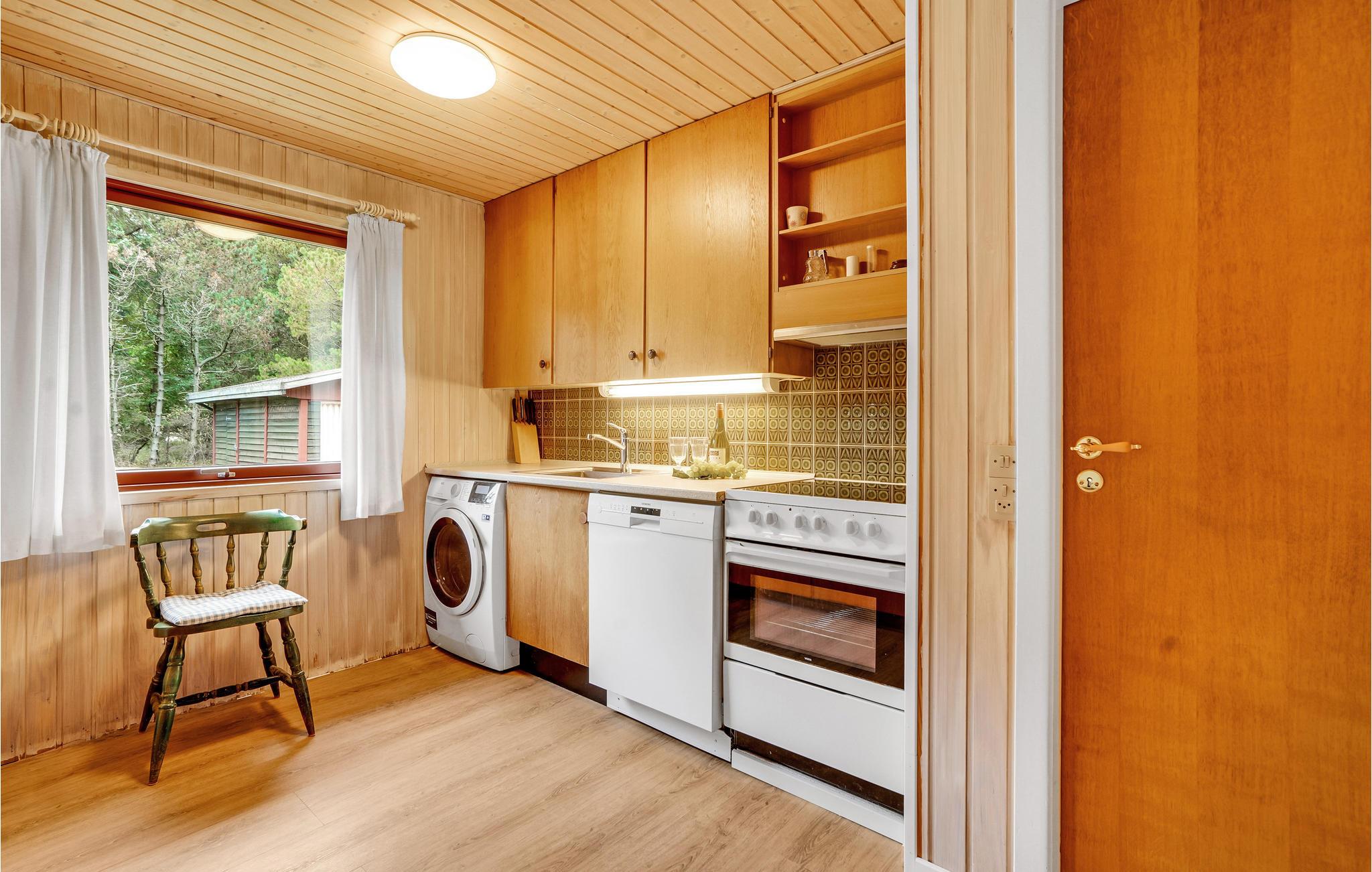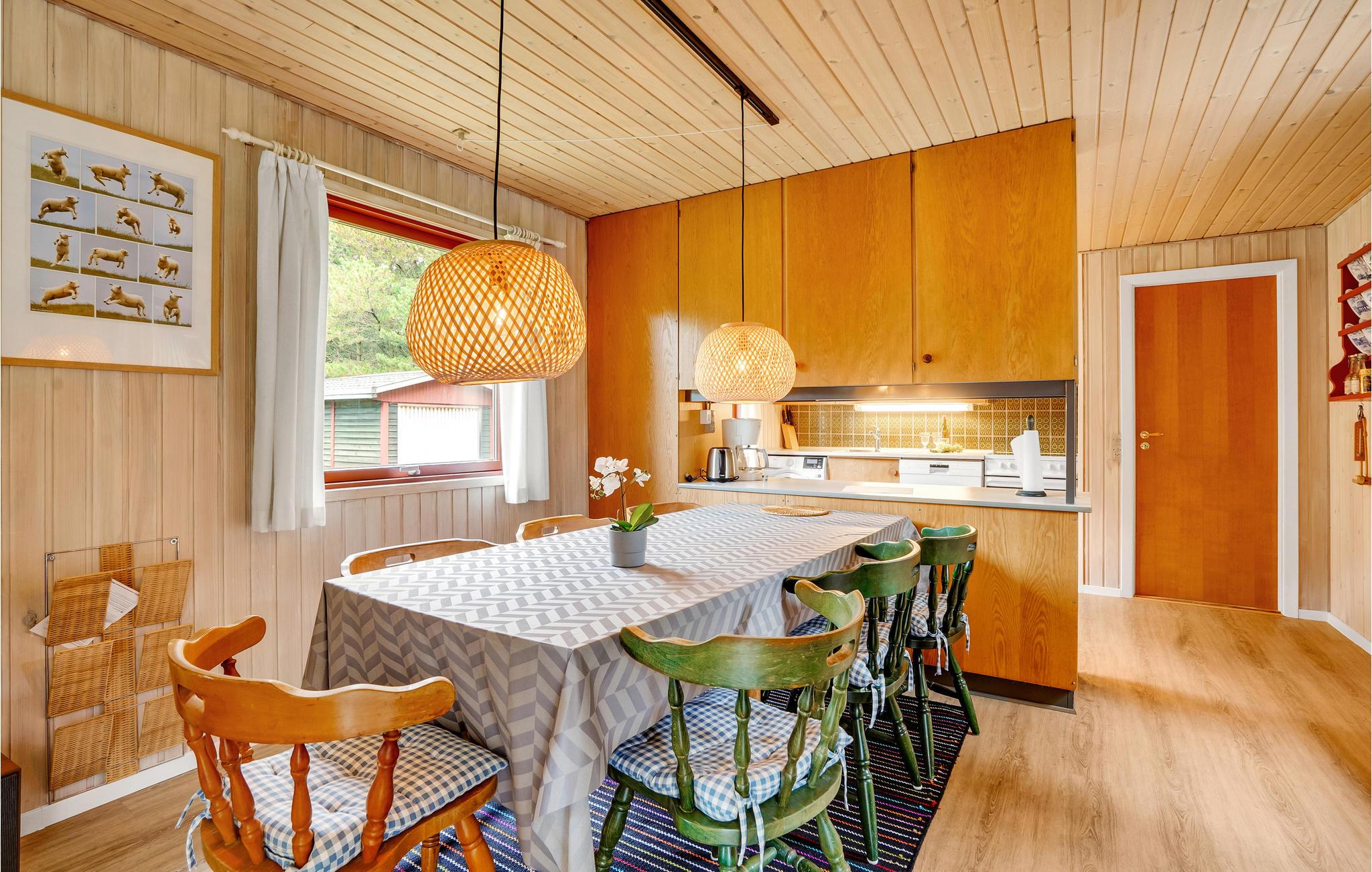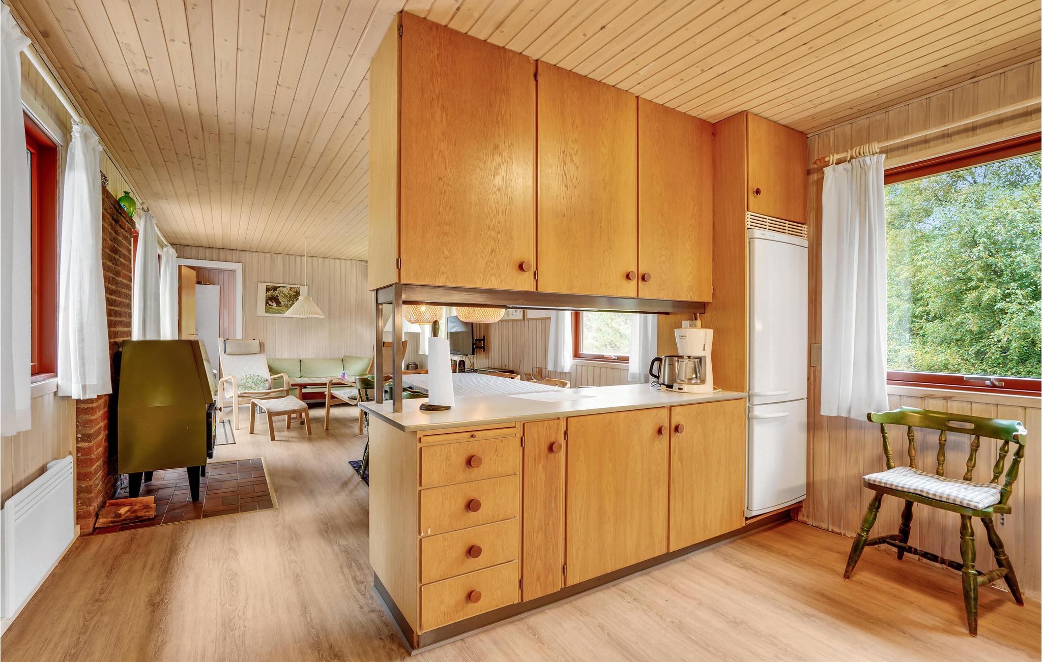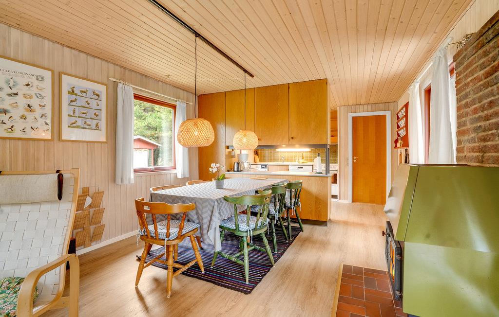 Velkommen til det lyse, træbeklædte interiør i dette indbydende feriehus, hvor I kan tilbringe en afslappende ferie ved Vesterhavet med familien. Nyd den hyggelige stemning i det åbne opholdsområde, slap af efter en lang dag med udflugter med en god film og forkæl jeres hund med et varmt sted ved brændeovnen. Lad jer inspirere af udsigten til det grønne, mens I laver mad i det veludstyrede køkken.