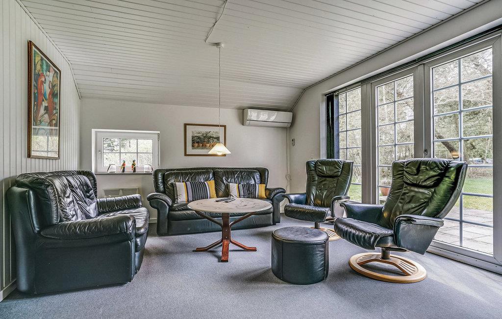 Dette flotte murstenshus ligger på en stor naturgrund, der er omgivet af høje træer. Et feriehus for den aktive og legesyge familie, som rigtig kan boltre sig i det store aktivitetsrum, hvor der både er poolbord, bordfodbold, airhockey og dart. Huset er lyst og venligt indrettet, og fra det store vinduesparti i stuen kan I følge naturen lige udenfor døren, samtidig med at hyggen breder sig i stuen fra den knitrende brændeovn. Praktisk køkkenafdeling med adgang til spiseafdelingen. Alle vægge og lofter er beklædt med træ. De to badeværelser, aktivitetsafdelingen og den kombinerede køkken-/spiseafdeling har klinkegulve. I opholdsstuen og alle soveværelser er der gulvtæpper. Udover disse attraktive faciliteter er der naturligvis også sauna i huset. Udendørs er der fire gode terrasser, så I vil næsten altid kunne finde en lækrog. Ho byder samtidig på gode tilbud som put and take fiskesø, hesteudlejning og golfbaner for såvel øvede som nybegyndere. Her får I et ideelt feriehus med plads til flere familier - velkommen.
