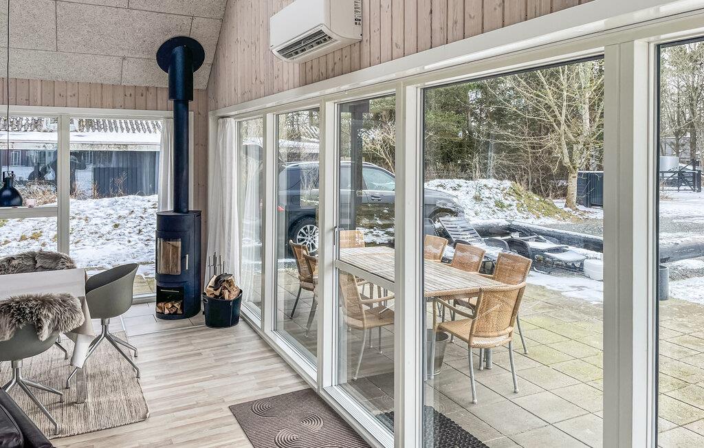 Huset fremstår meget lyst og venligt og fra det dejlige, rummelige køkken/alrum, med loft til kip samt brændeovn, er der udgang til den delvist overdækkede terrasse med behagelige havemøbler.