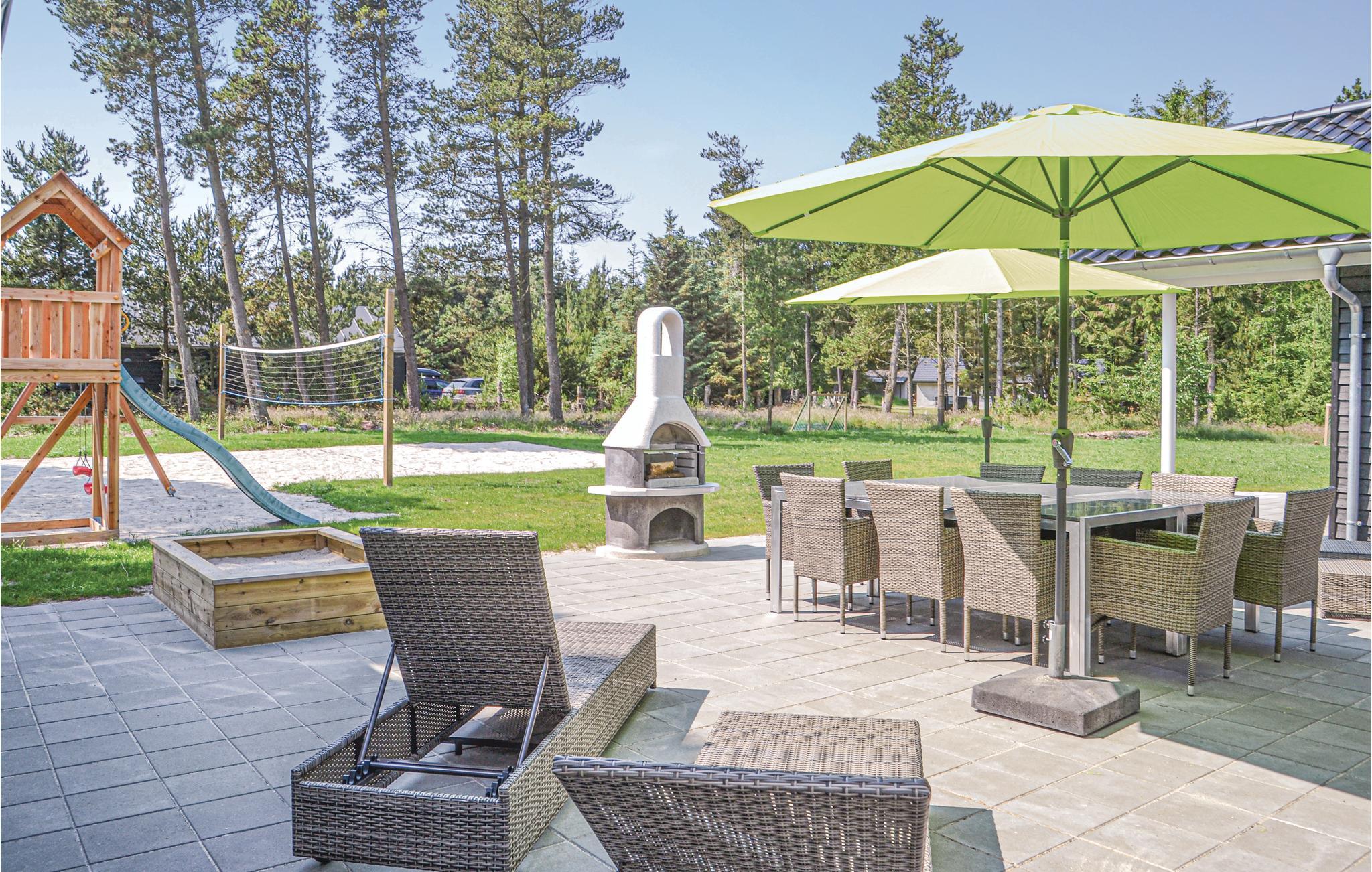 Flot feriehus i Blåvand med stor terrasse, aktivitetsrum og nærhed til golf og natur.