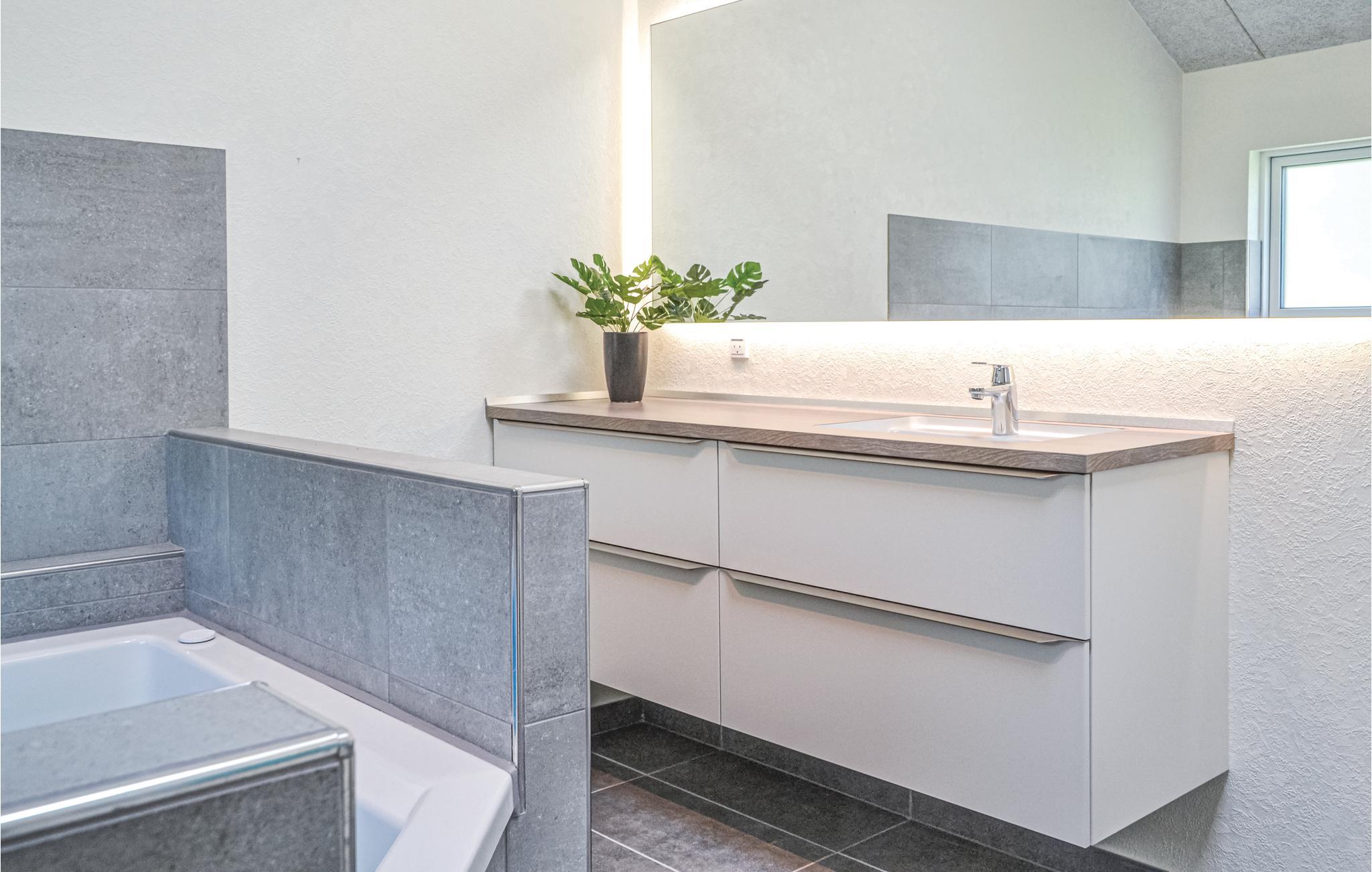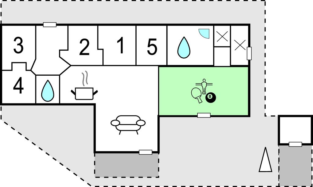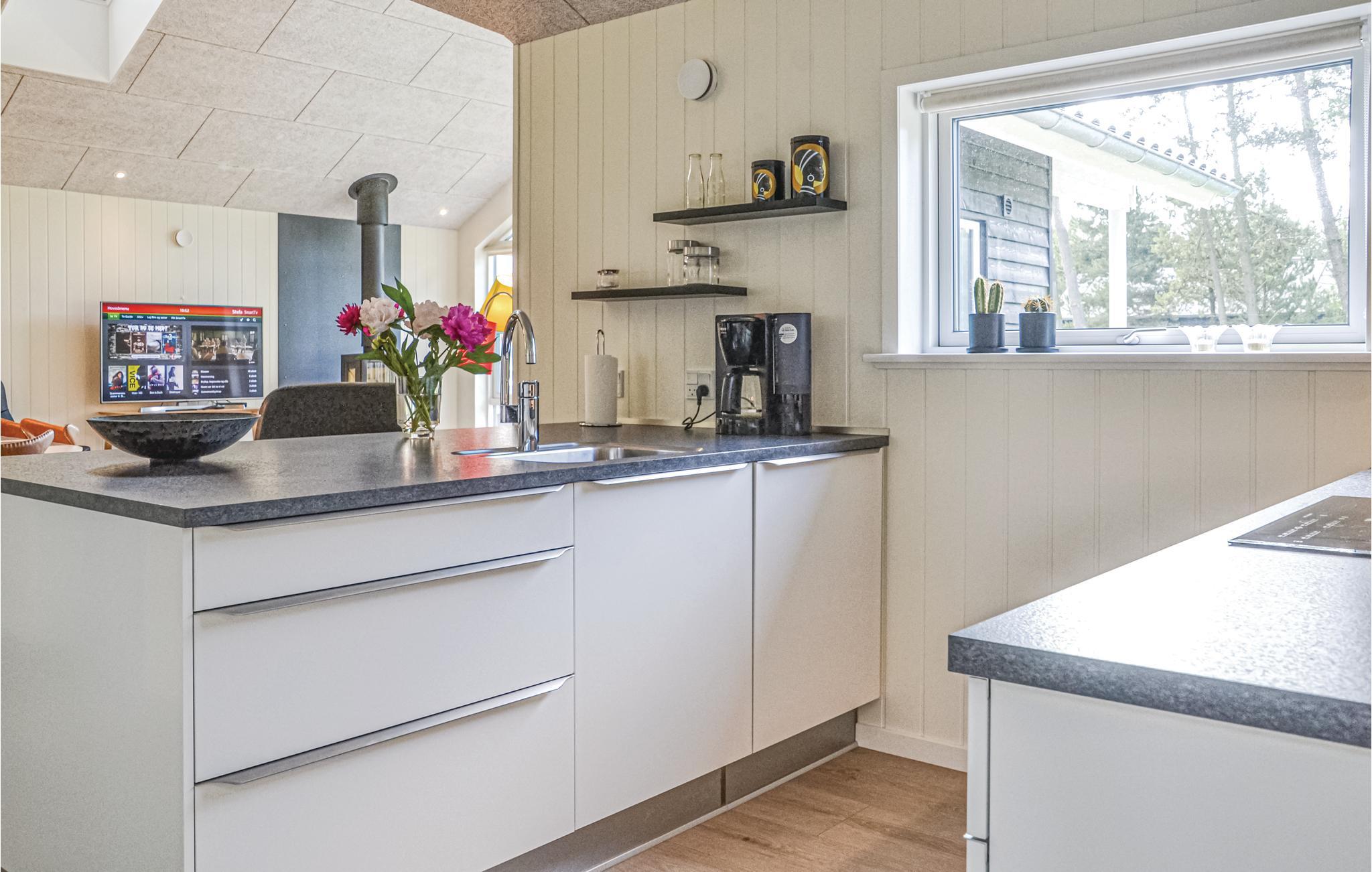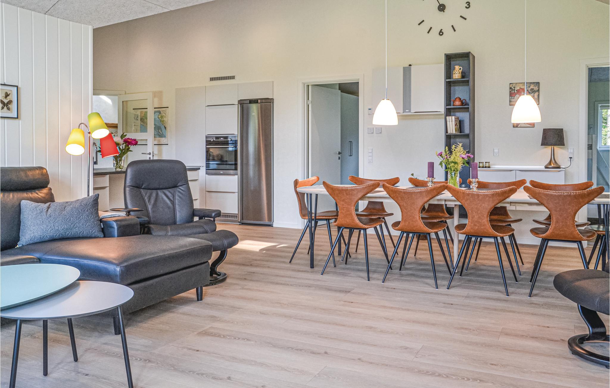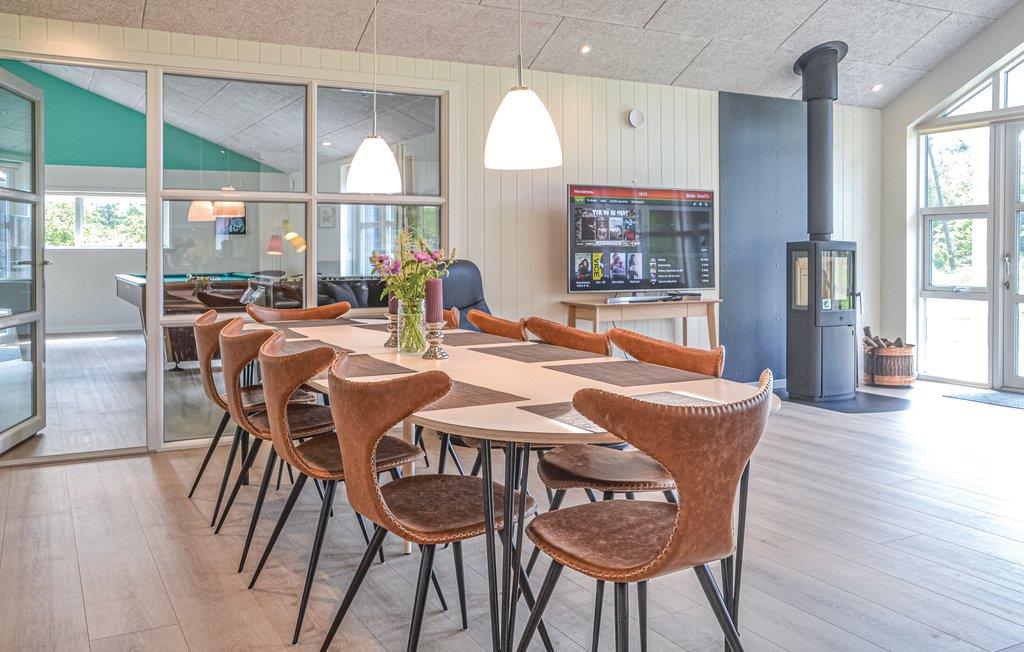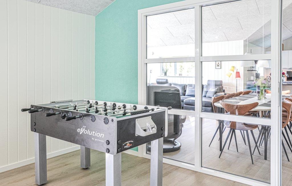 Et utroligt flot og gennemført feriehus, hvor der er tænkt på alle detaljer. Det store, flotte køkken gør, at husets kokke kan hygge sig med dagens middag, mens resten af familien enten hygger sig i den store stue, eller spiller billard i husets 30 m² store aktivitetsrum. Kobl jer på musikanlæggene i huset via jeres smartphone (bluetooth) og lyt til jeres egen yndlingsmusik. Fra såvel stuen og aktivitetsrummet er der direkte adgang til den 140 m² terrasse, hvor solen kan nydes i fulde drag.