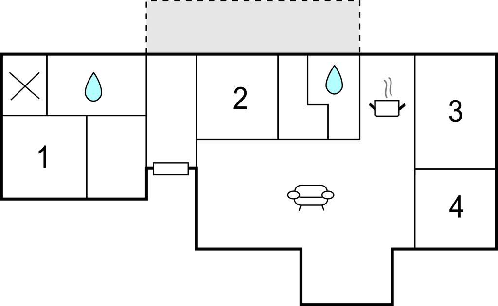 Badeværelse 3m2 (nr. 1) - WC. Varmt og koldt vand. Bruser