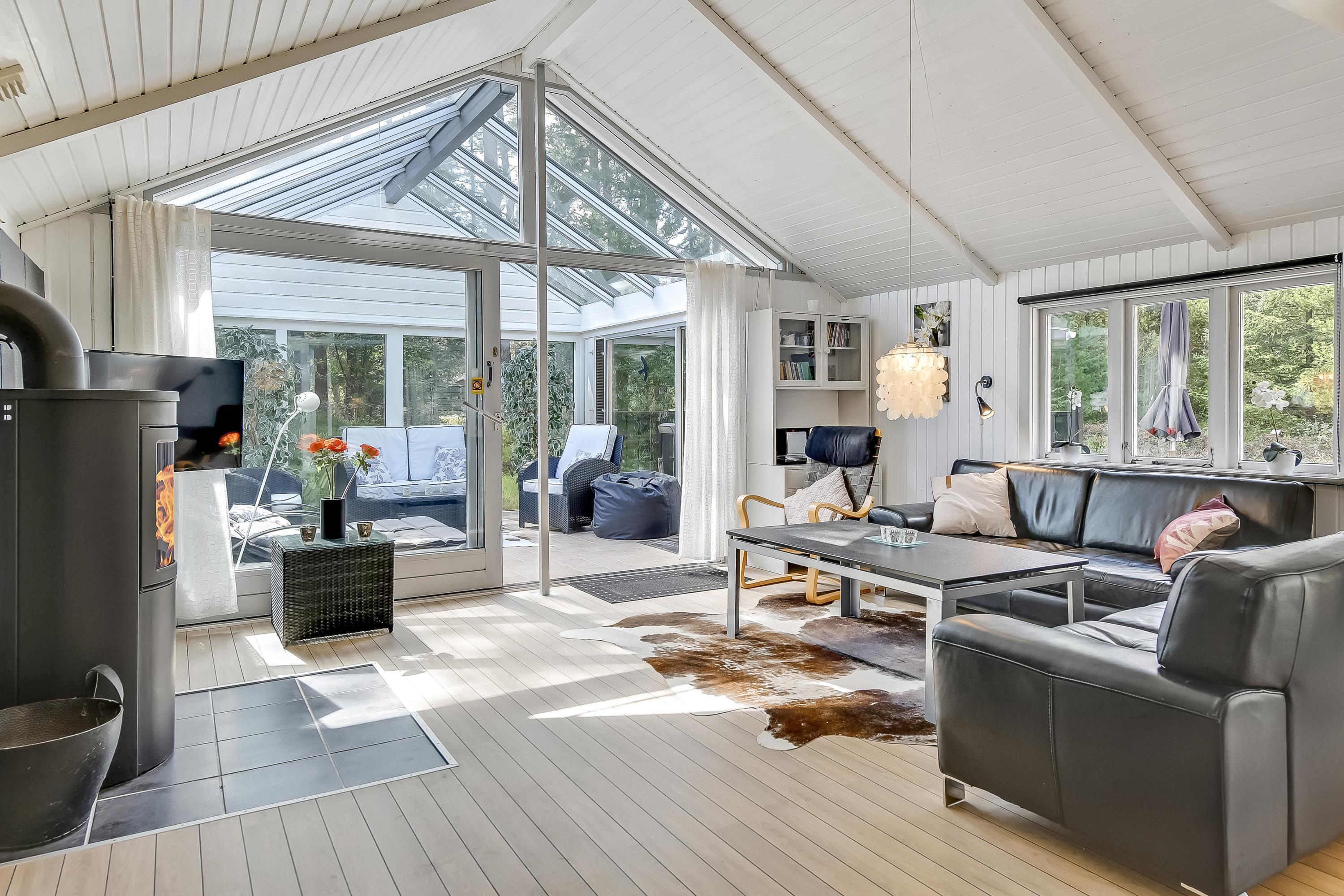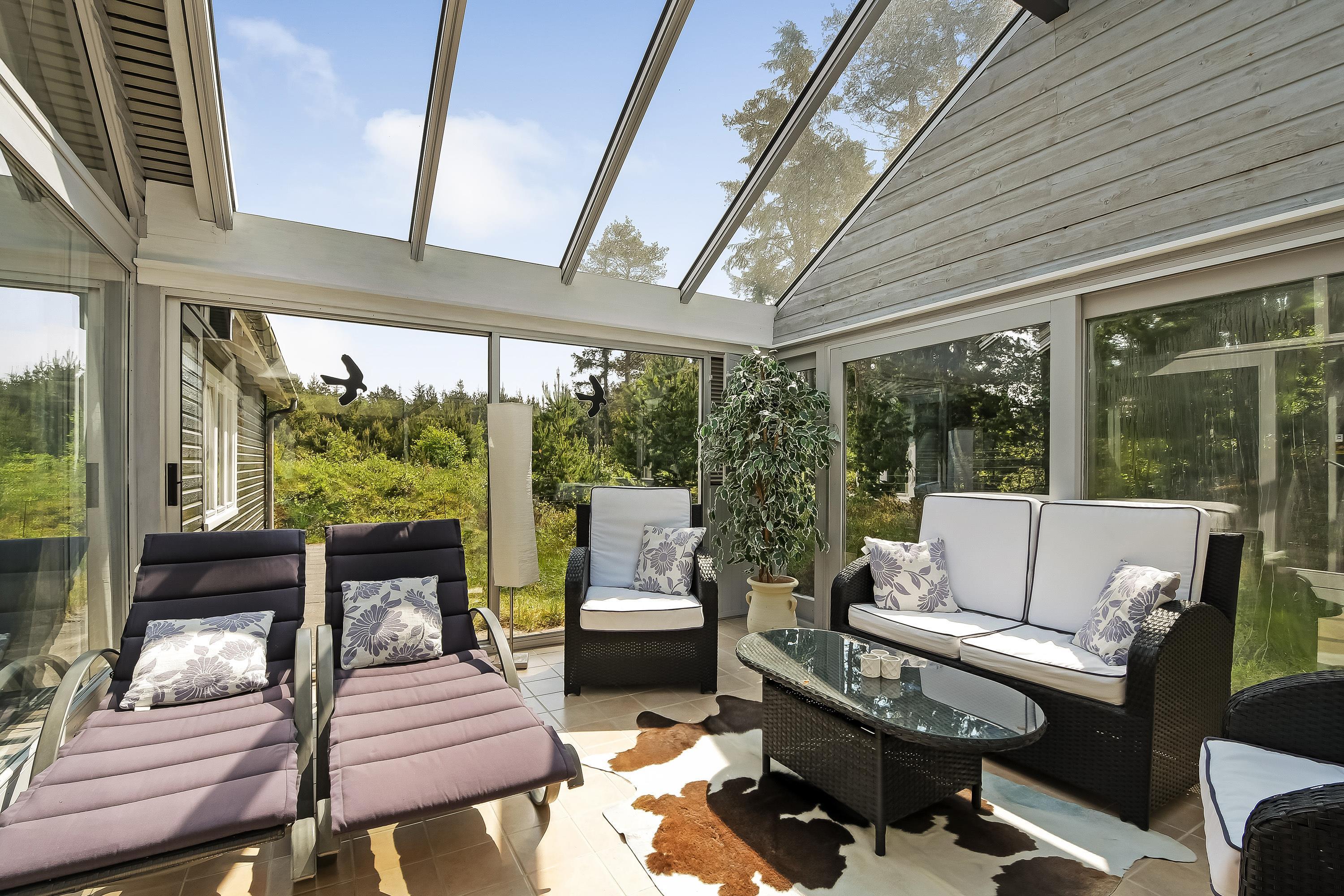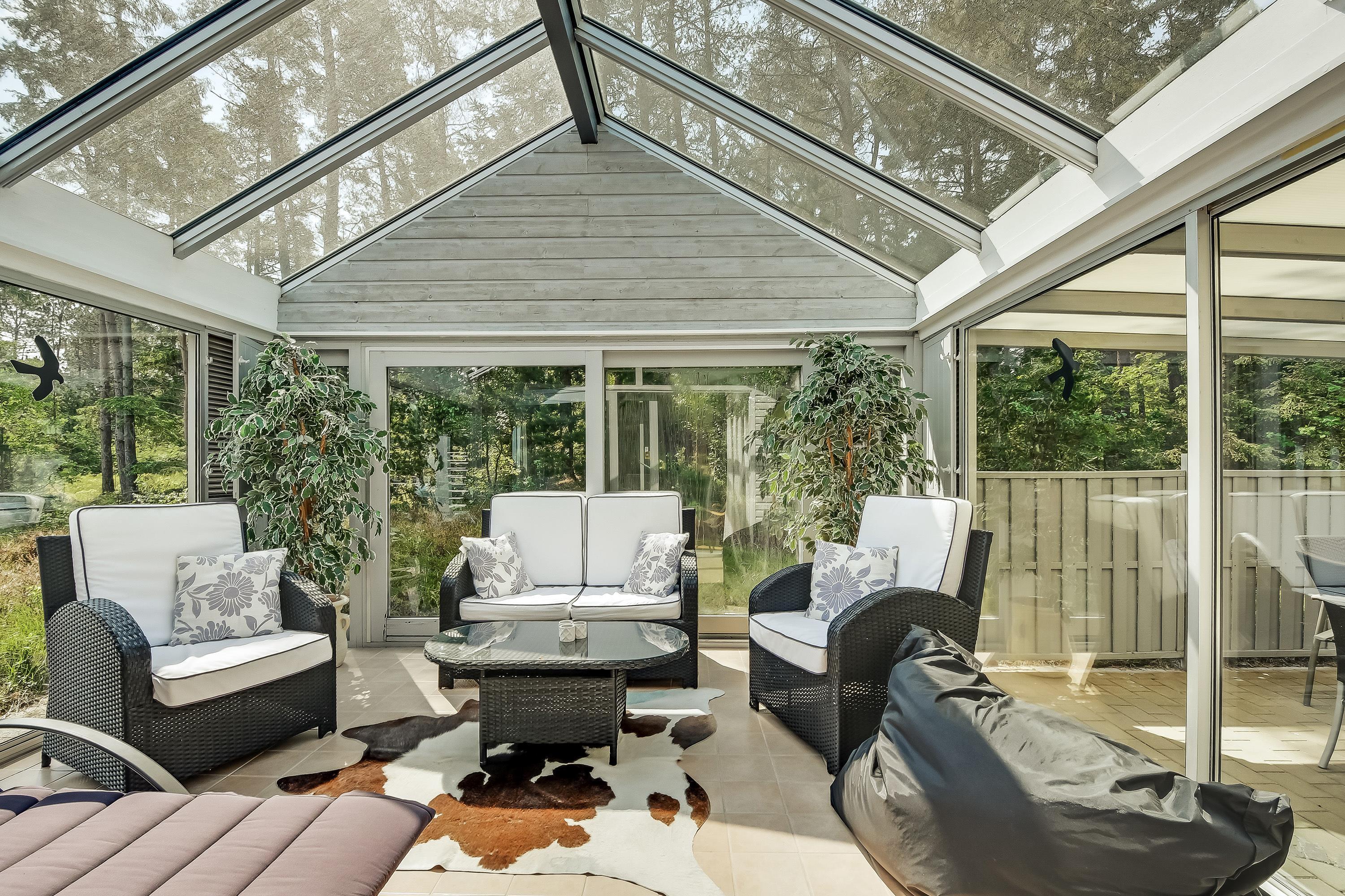 Husets udestuen er et absolut hit, her har I en skøn mulighed for at slappe af og tanke lys hele året rundt. Det perfekte sted for ro og hygge med strikketøj og avisen, - eller for tosomhed med et glas rødvin.