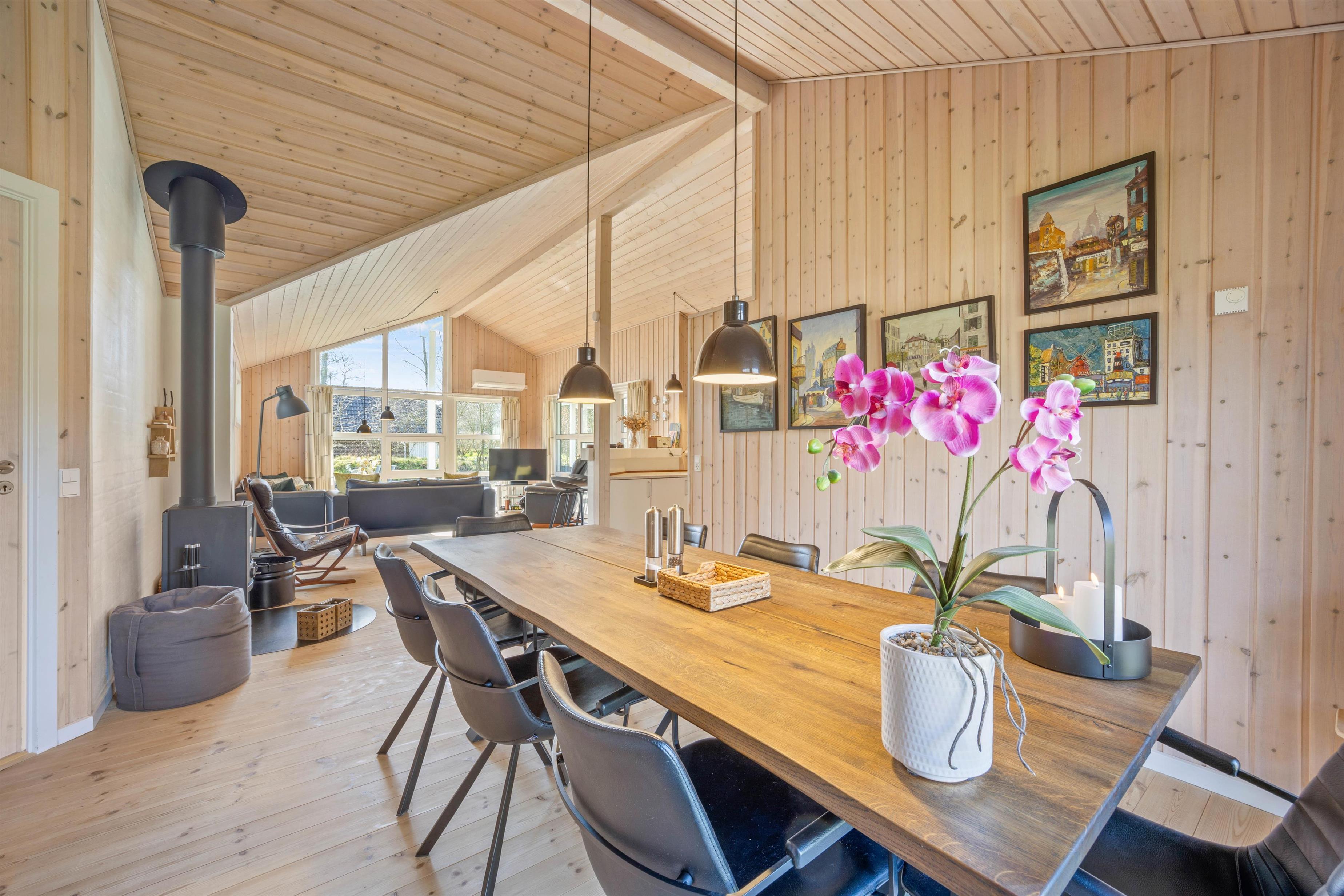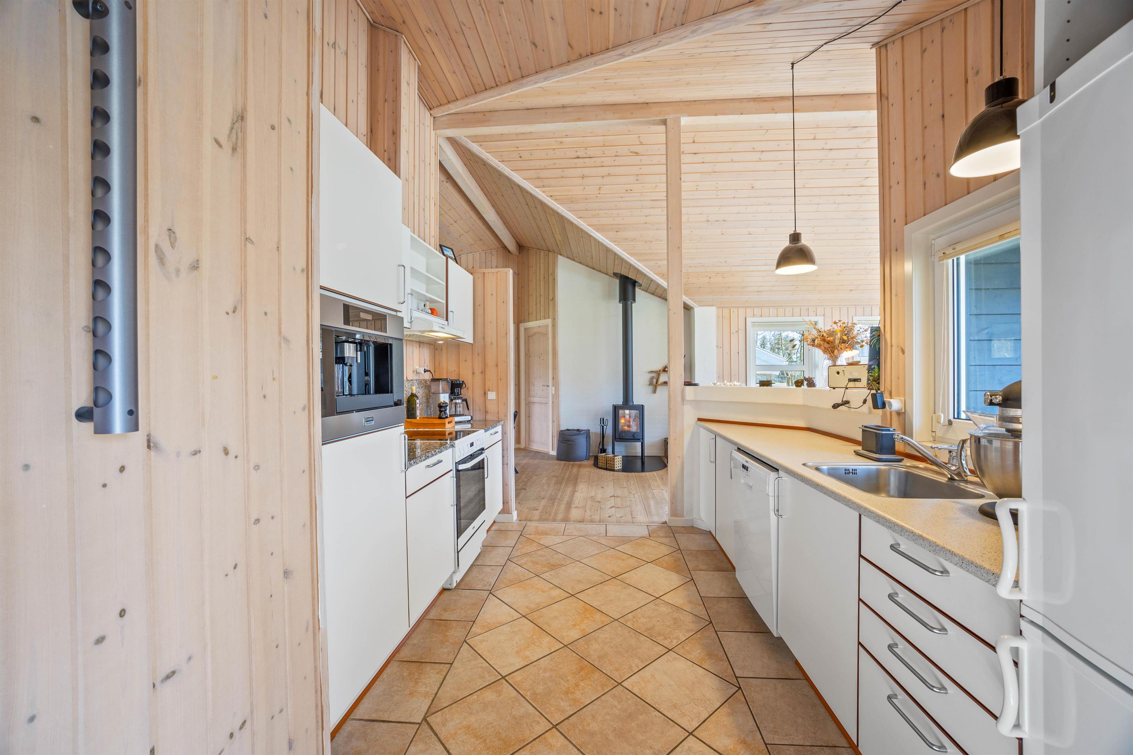 I vil straks føle jer hjemme i dette feriehus med gulvvarme i opholdsrum og badeværelser. Her kan I slappe af i sofagruppen med en god bog eller streame en TV-serie på cromecast, imens den knitrende ild i brændeovnen giver ekstra varme og hygge. I køkkenet er alt, hvad I behøver for at tilberede lækre måltider – arrangér eventuelt en fælles madlavningsaften. Især lystfiskere vil sætte pris på den separate fryser på 80 l, hvor der skulle nok kunne være en friskfanget fisk eller to.