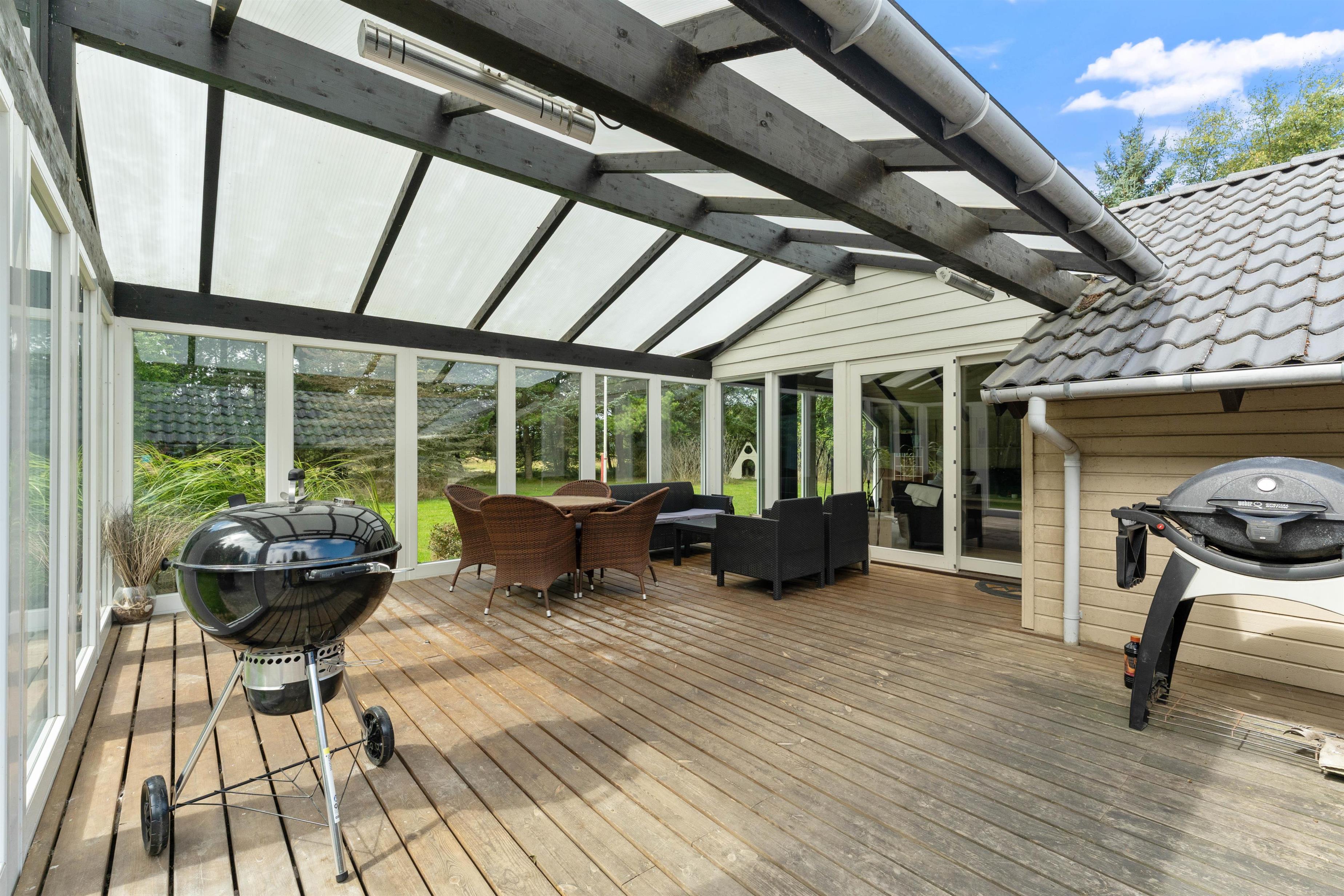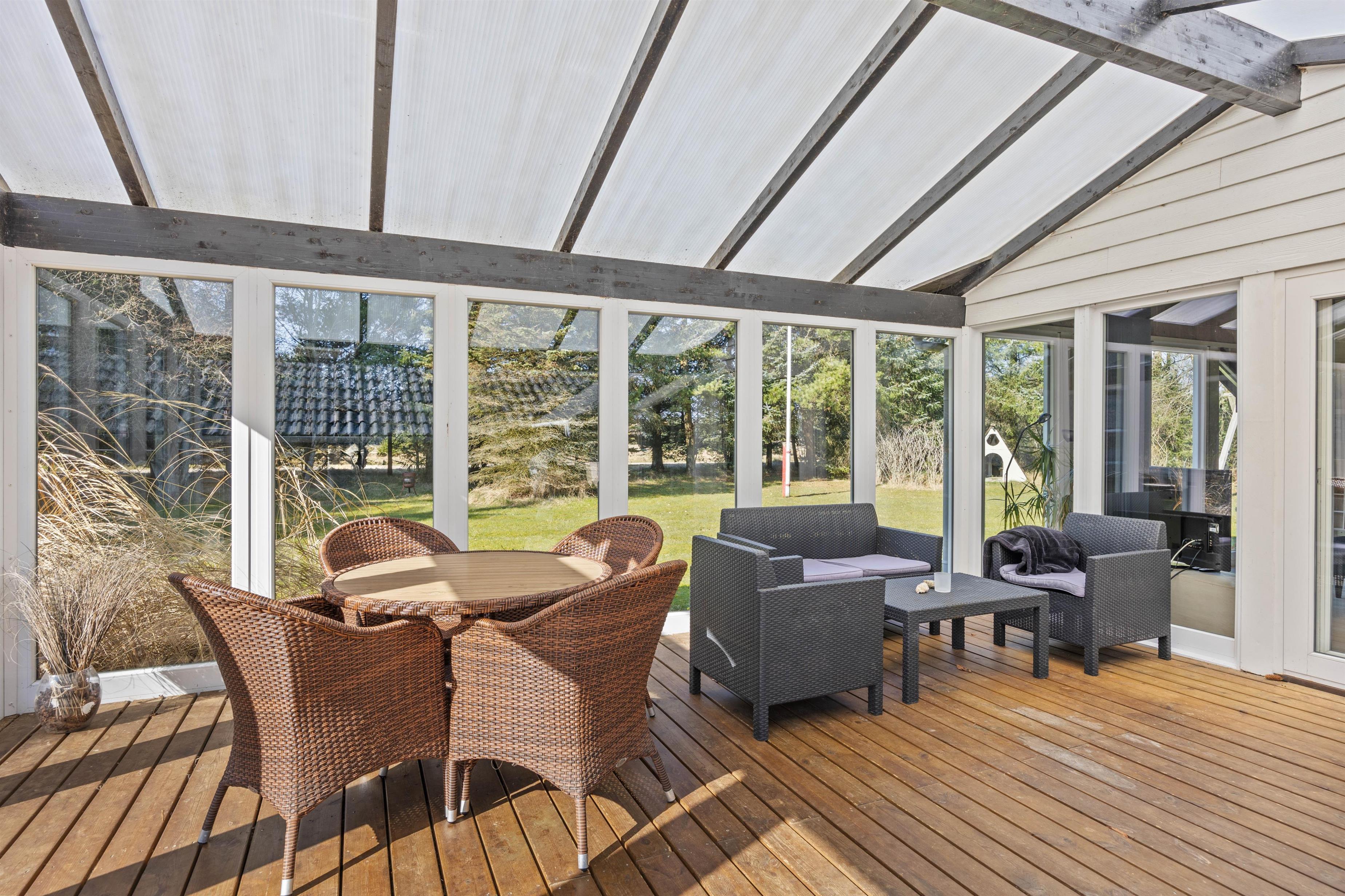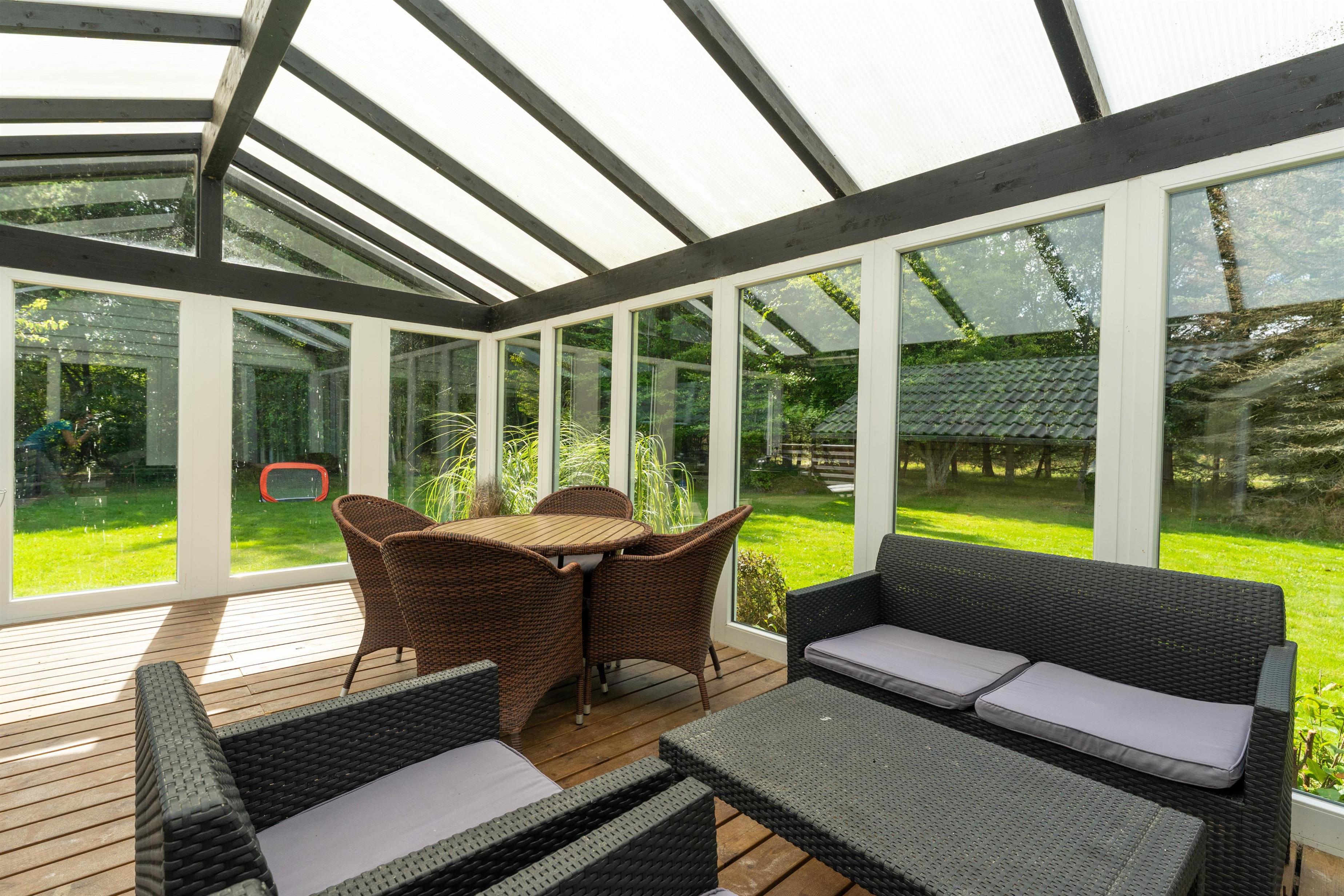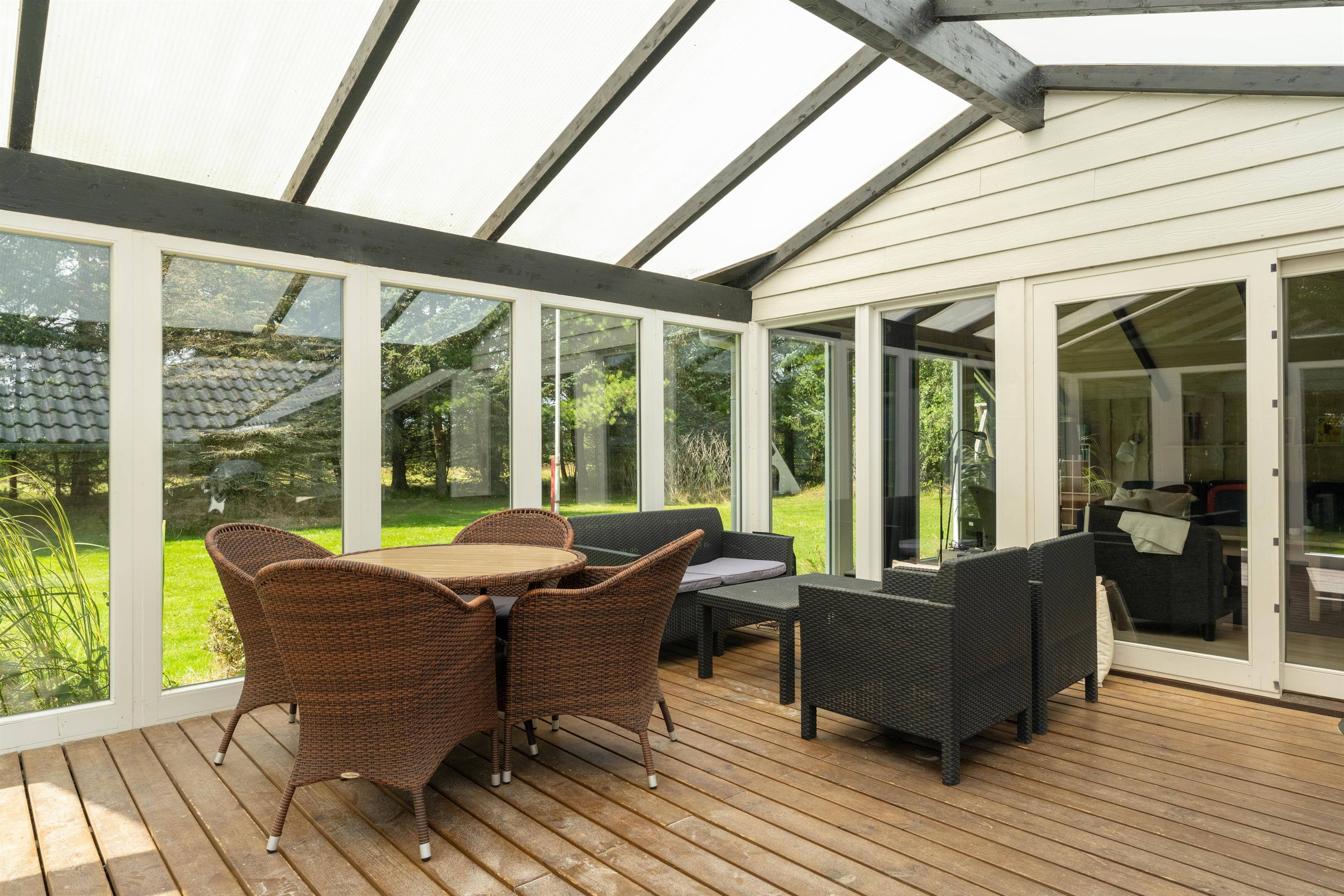 Helt unikt ved huset er den skønne opvarmede/åbne udestue, hvor I kan nyde den smukke udsigt og den friske luft i alt slags vejr. Både på en herlig solskinsdag med et koldt glas rosé og på en grå efterårsdag med en friskbrygget kop kaffe og regnen, der trommer på ruden.