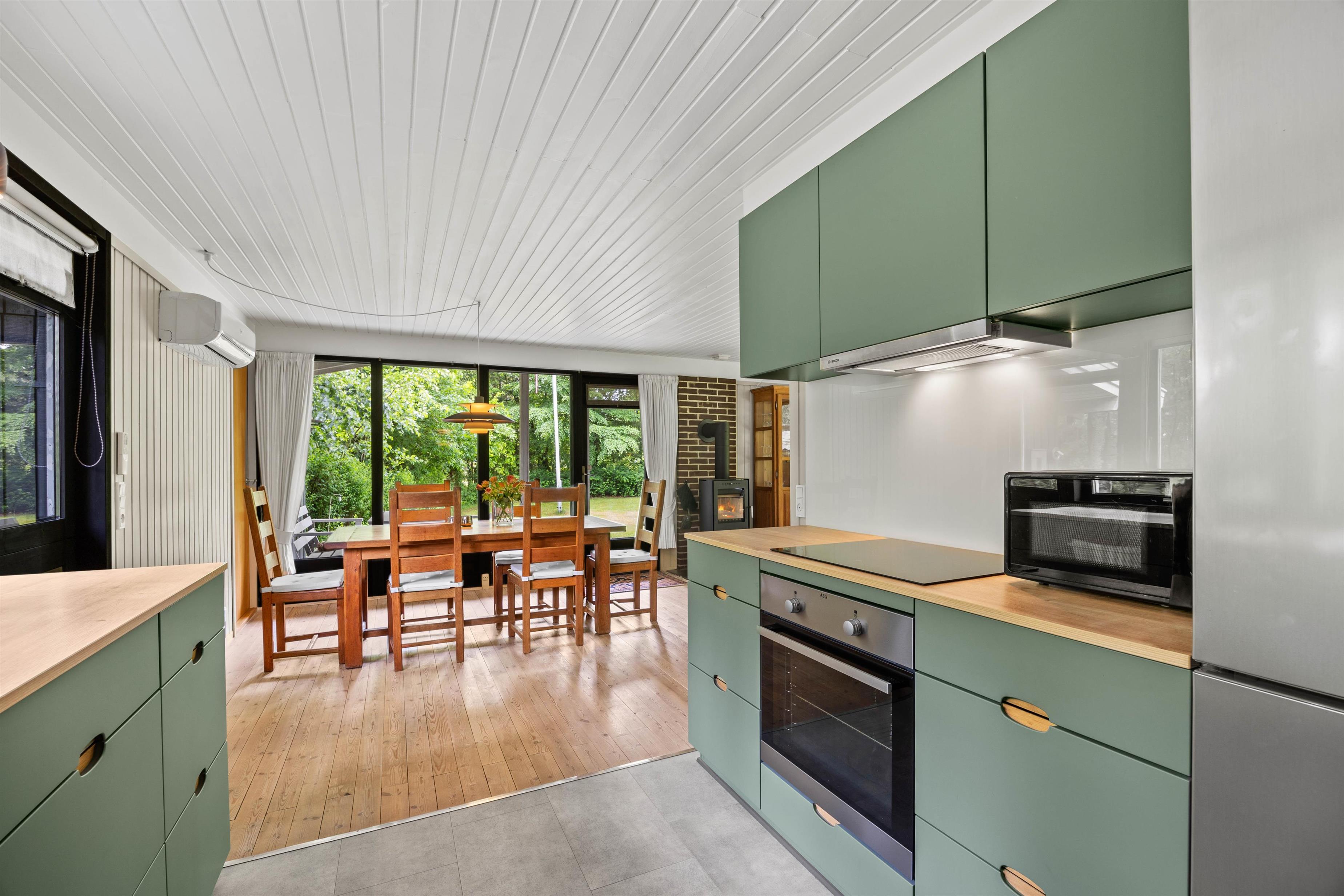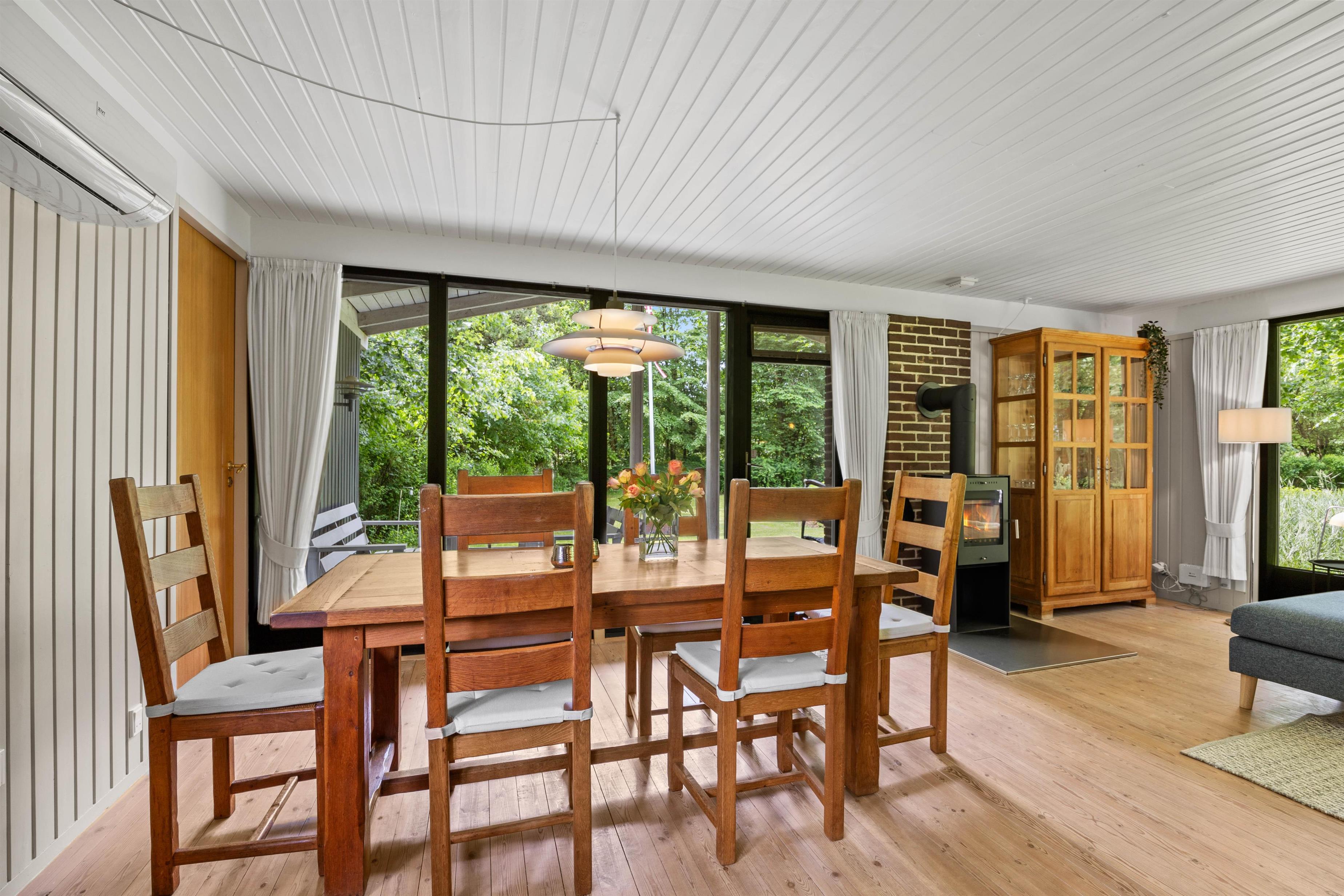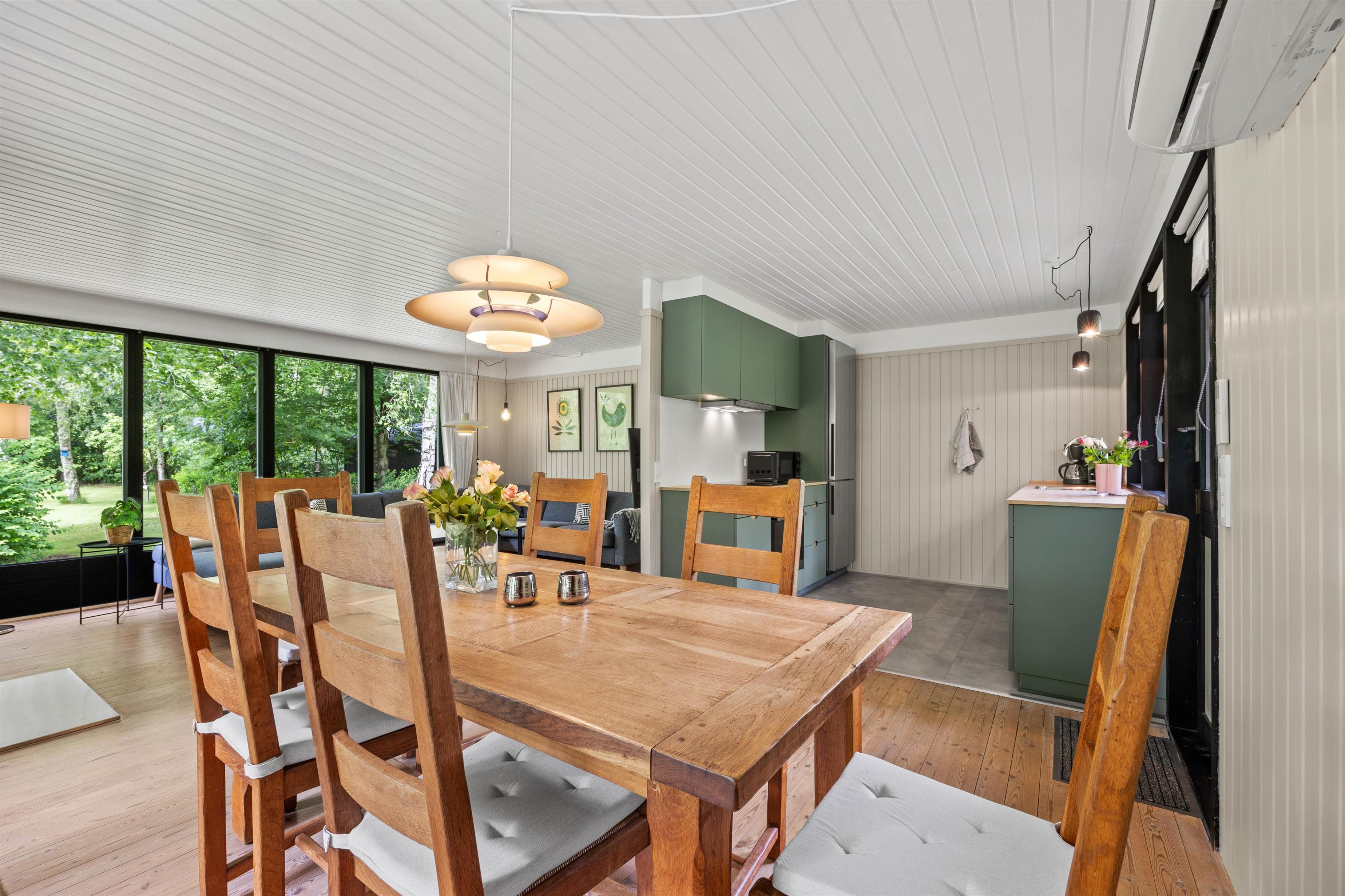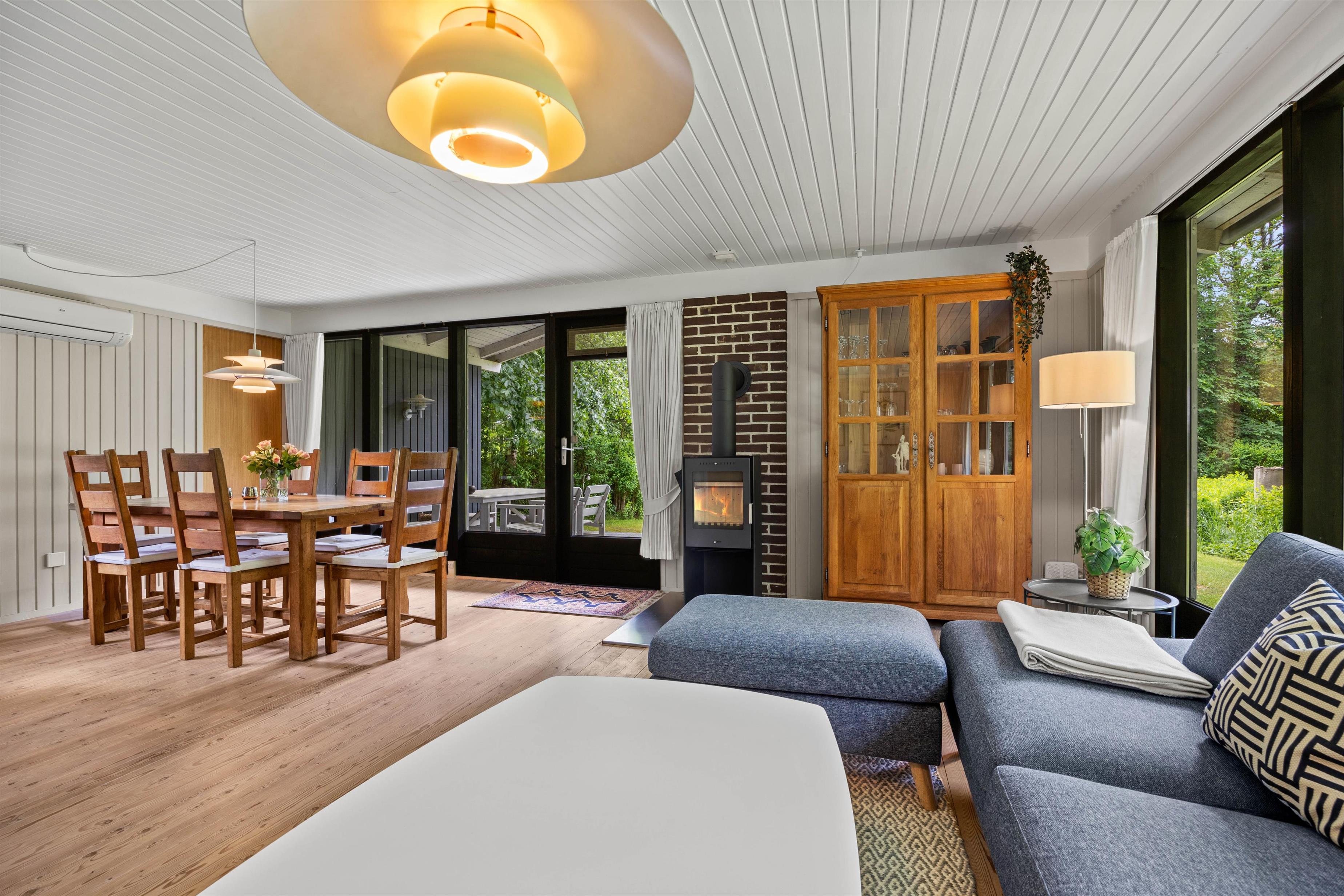 Jeres samlingspunkt i sommerhuset bliver utvivlsomt alrummet, hvor køkken, stue og spiseplads er samlet i ét rum. Her kan I tilbringe mange dejlige feriestunder sammen med madlavning, spil og film. Centralt i alrummet står brændeovnen, der spreder hyggelig stemning og varme i rummet.