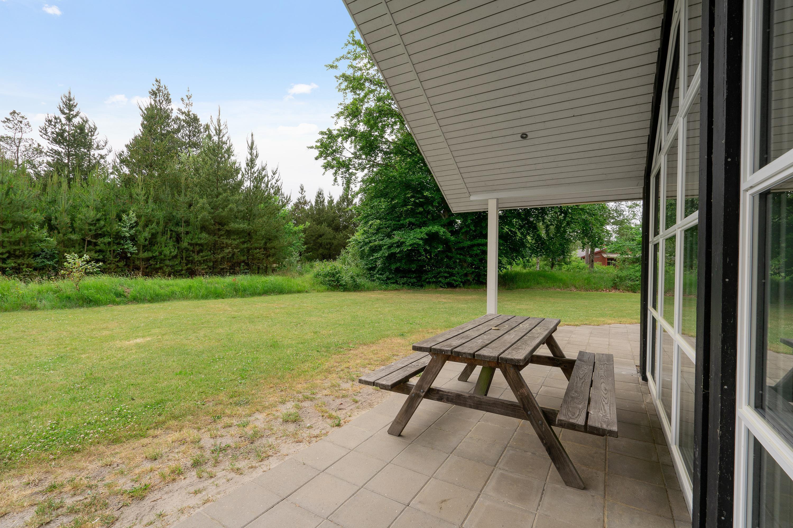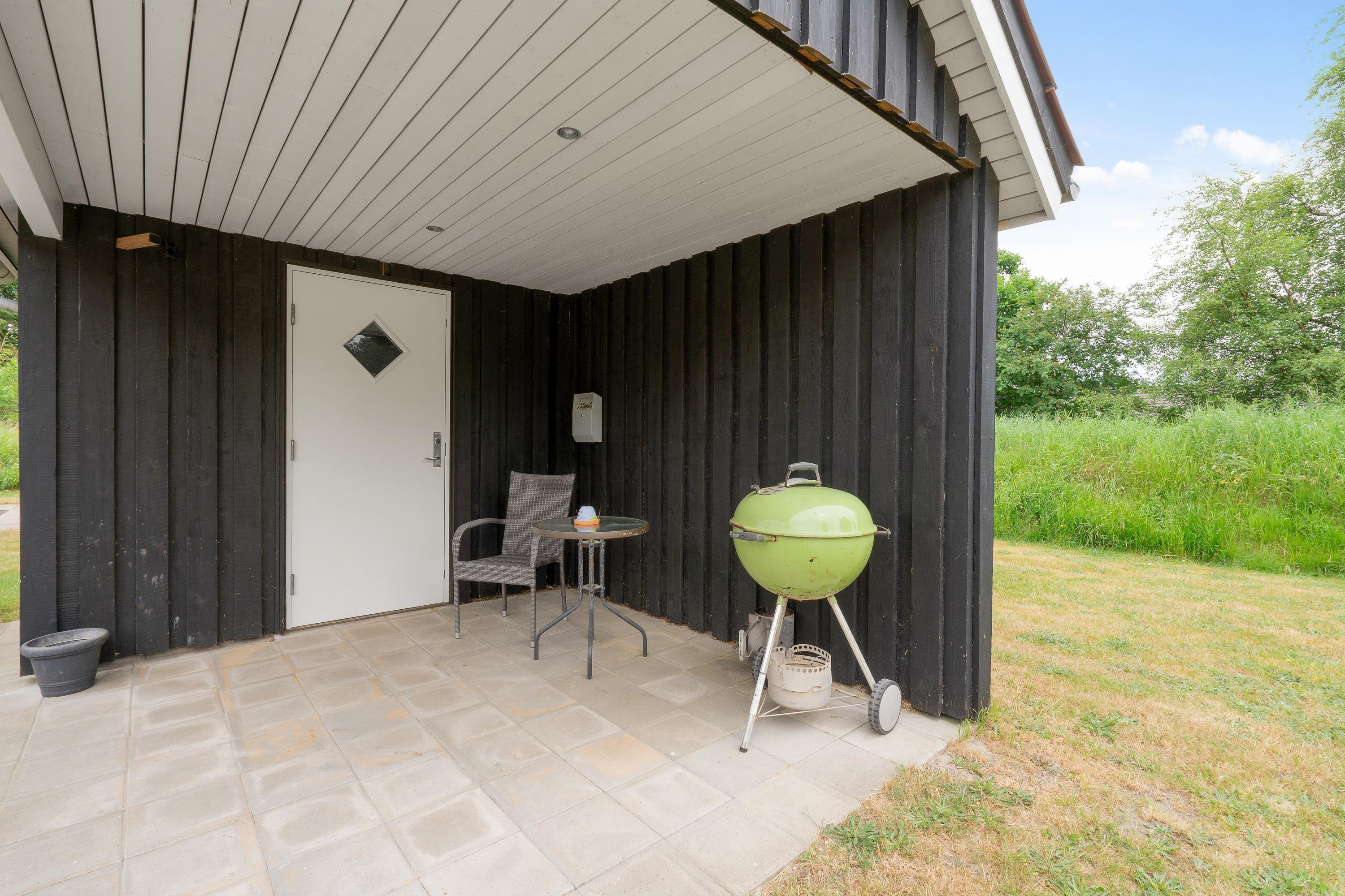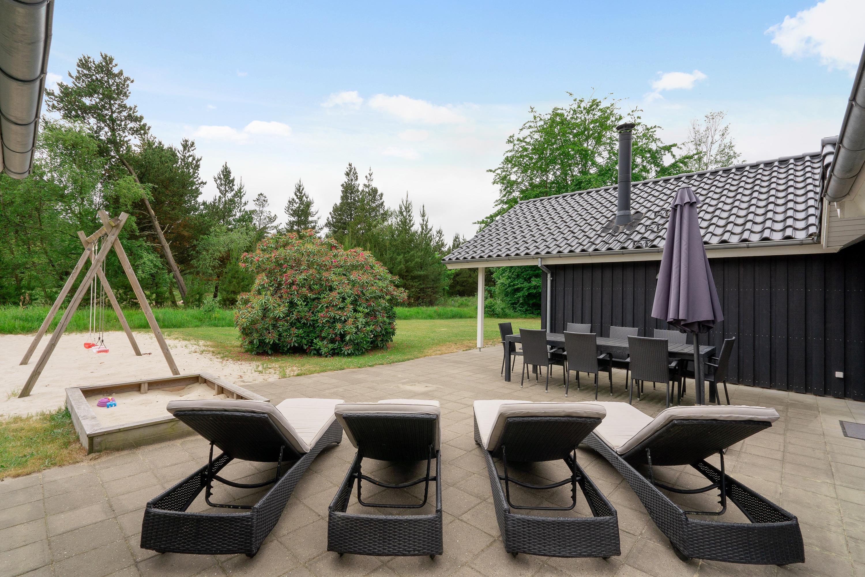 Feriehuset har en dejlig terrasse, som I kan nyde ferien fra. Med både havemøbler og liggestole til rådighed, vil I altid kunne finde jer til rette på et godt solspot på terrassen. Terrassen er delvist overdækket og afskærmet, så her vil I også kunne sidde i ly og læ.