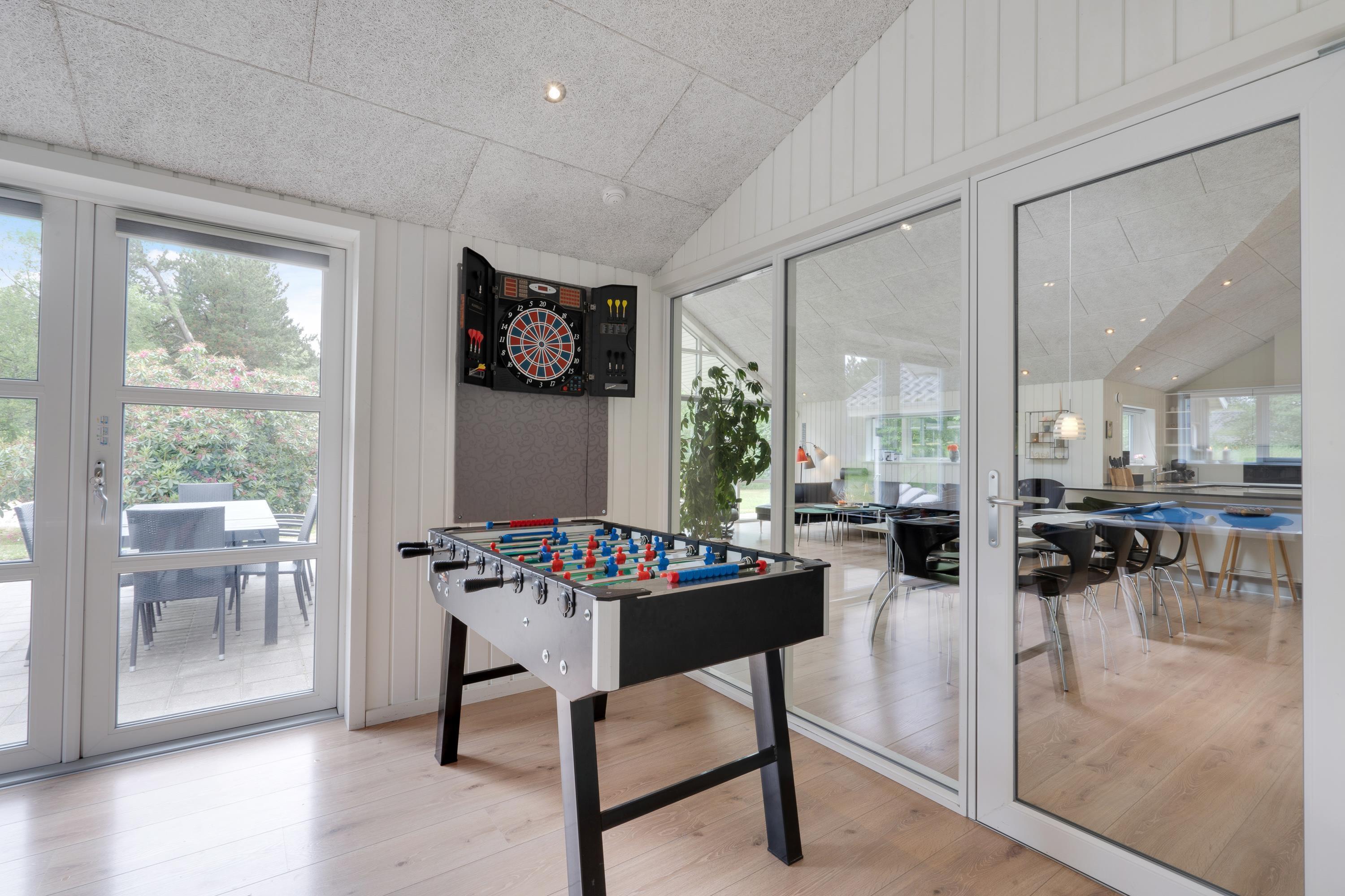 Sommerhusets aktivitetsrum er et af de indendørs højdepunkter i sommerhuset på Almosetoften 15 i Ho. Her er rammerne skabt for mange sjove feriestunder for store og små, og I vil med garanti komme til at tilbringe mange timer sammen her.