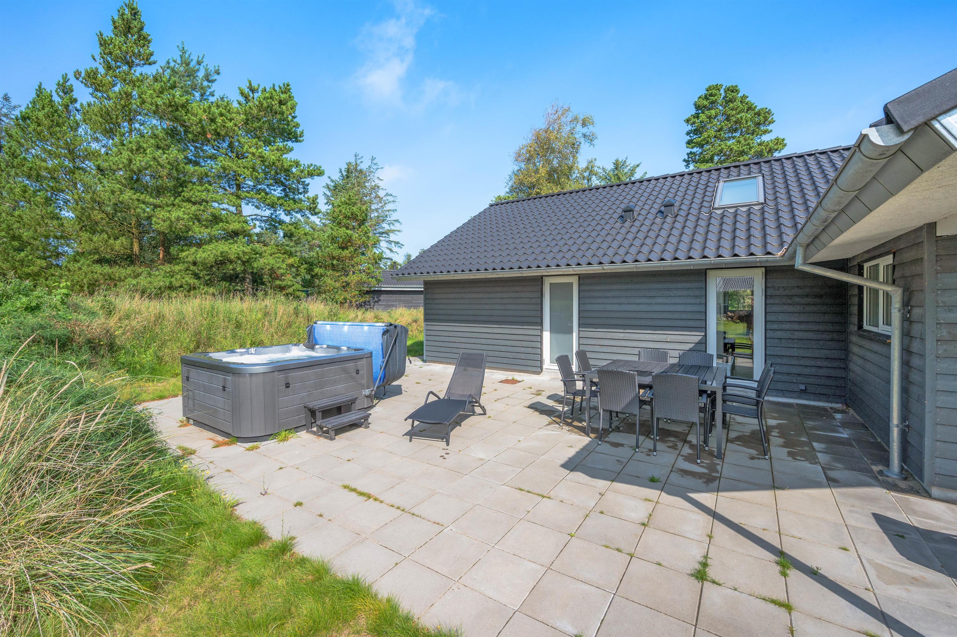 Luksussommerhuset har en kæmpe terrasse, som næsten omgiver hele feriehuset. Her finder I diverse havemøbler, så I bedst muligt kan udnytte de solrige dage på terrassen. Terrassen er også delvist overdækket, hvilket er praktisk, hvis I for eksempel ønsker at nyde frokosten udenfor i skyggen. Til sommerhuset har I også en gasgrill til fri afbenyttelse, hvor det altså går lidt hurtigere, når maden skal tilberedes. Desuden har sommerhuset et indbygget el-stik til jer, som kører elbil.