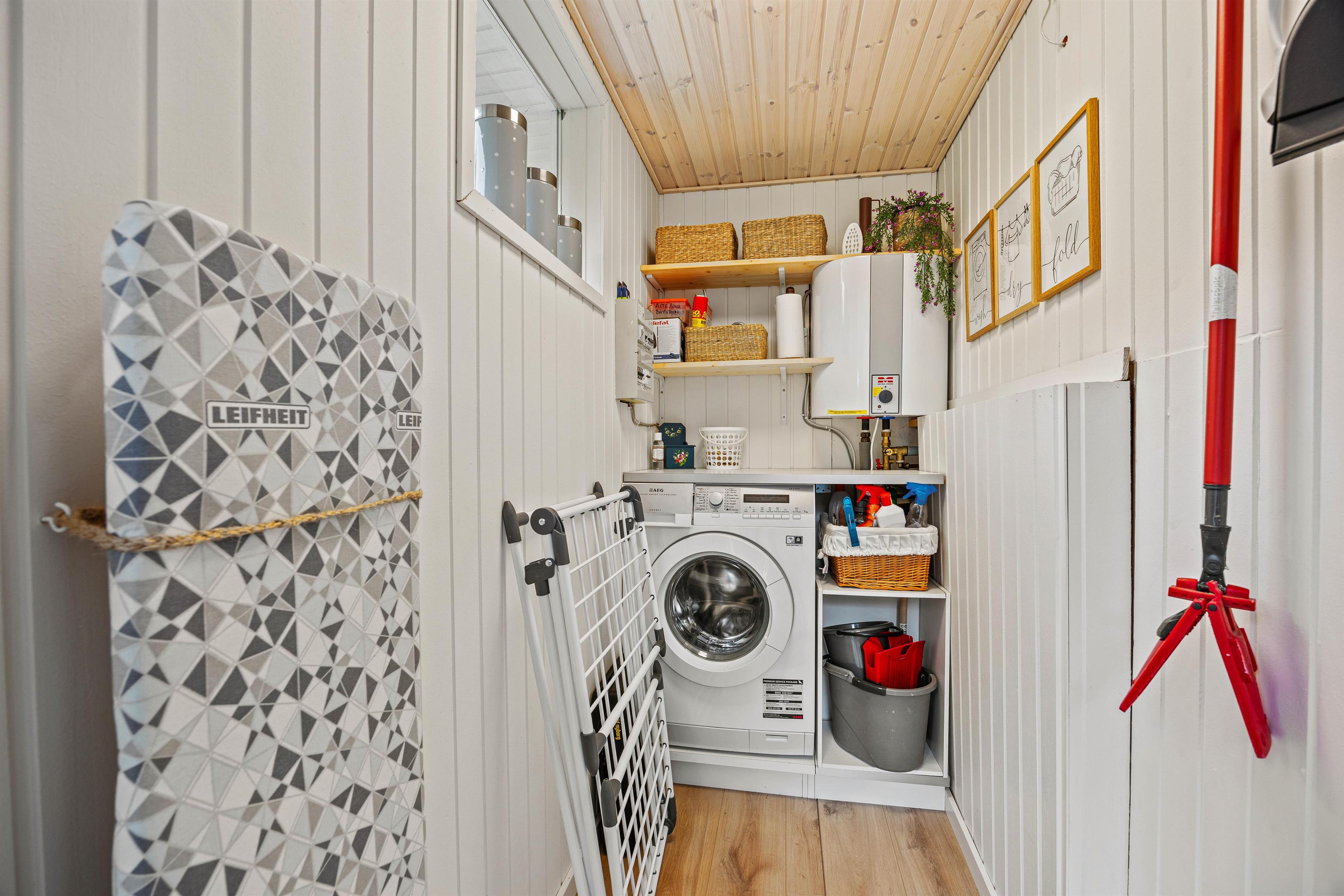 Feriehuset har 3 soverum samt et fint badeværelse med gulvvarme, så I ikke skal fryse om fødderne. Derudover kan I opvarme sommerhuset med den energibesparende luft til luft varmepumpe.