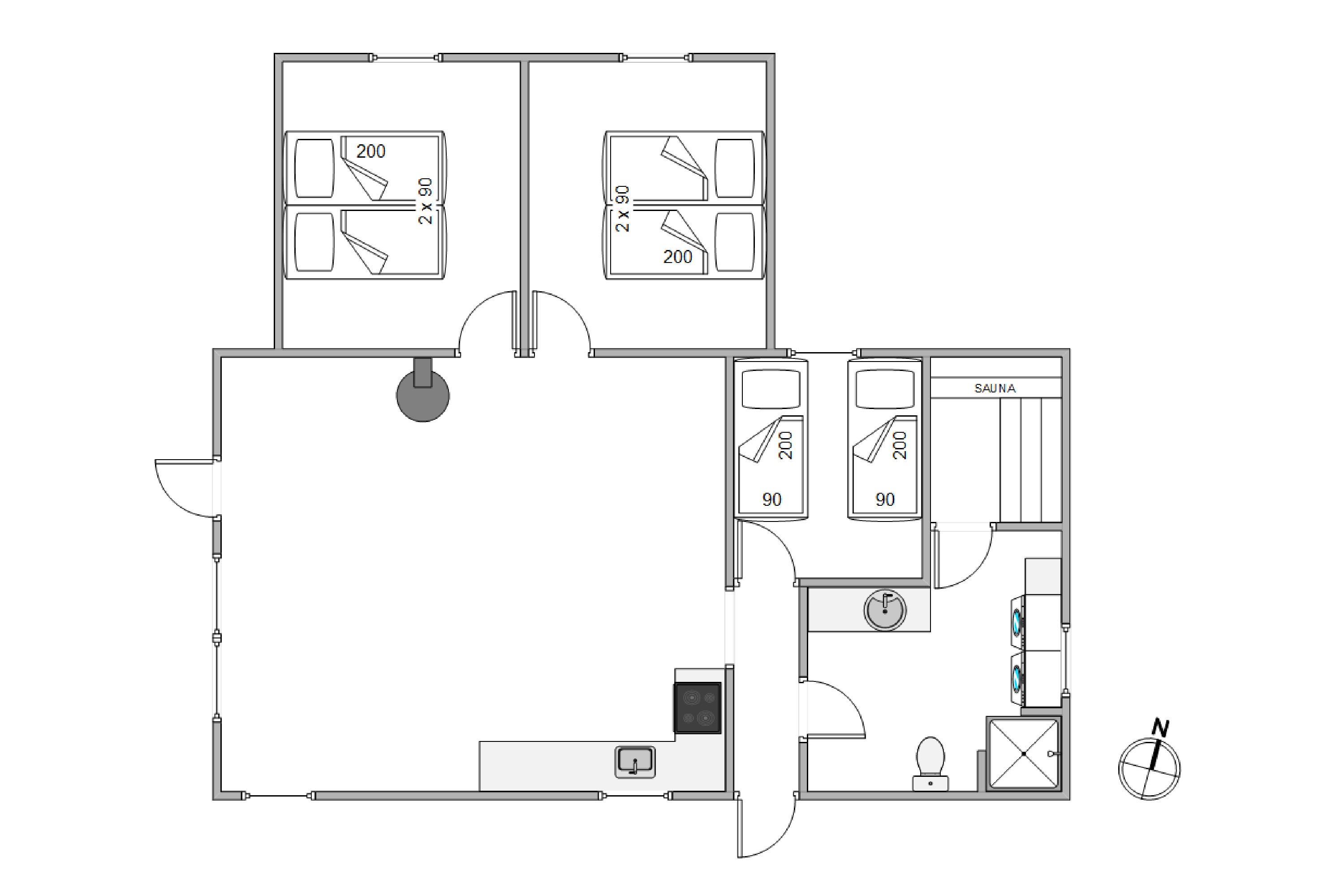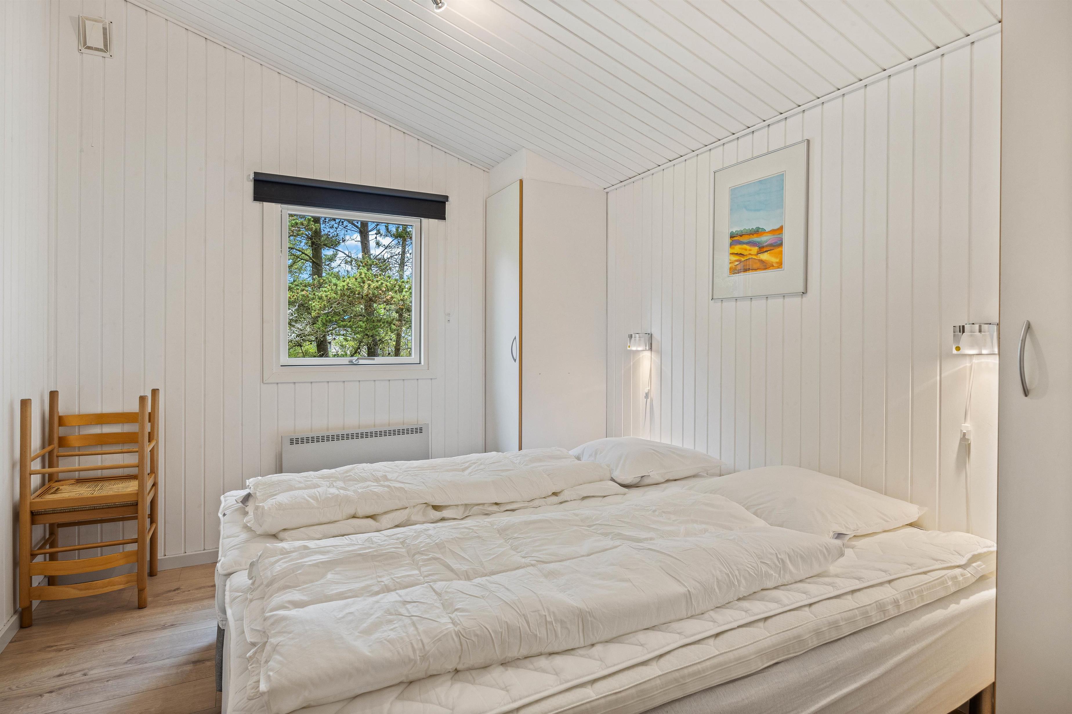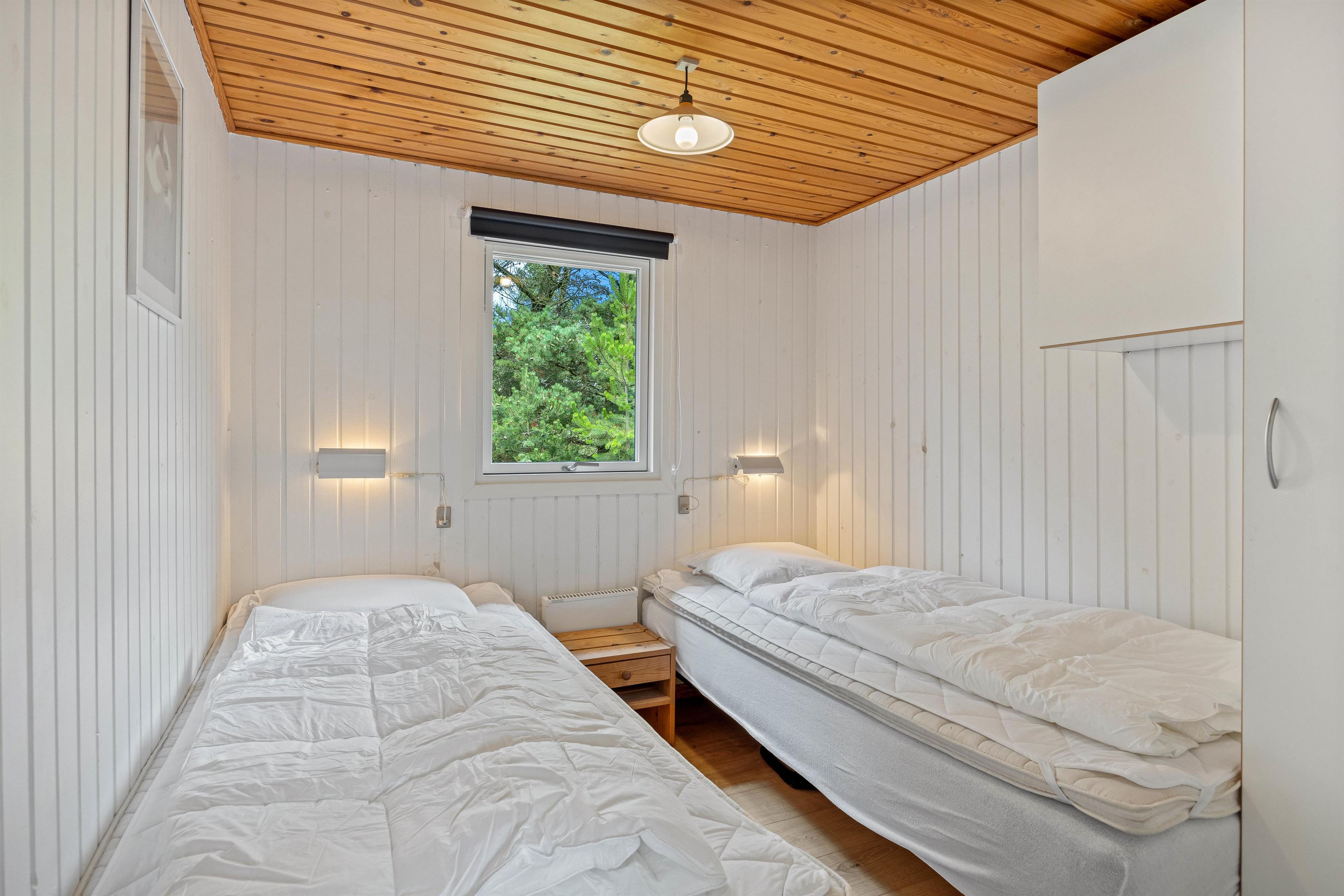 Feriehuset rummer 3 soveværelser, som I kan fordele jer på, når der skal samles ny energi til den kommende feriedag. 2 af soveværelserne er indrettet med dobbeltsenge, og i det tredje soveværelse finder I 2 enkeltsenge.