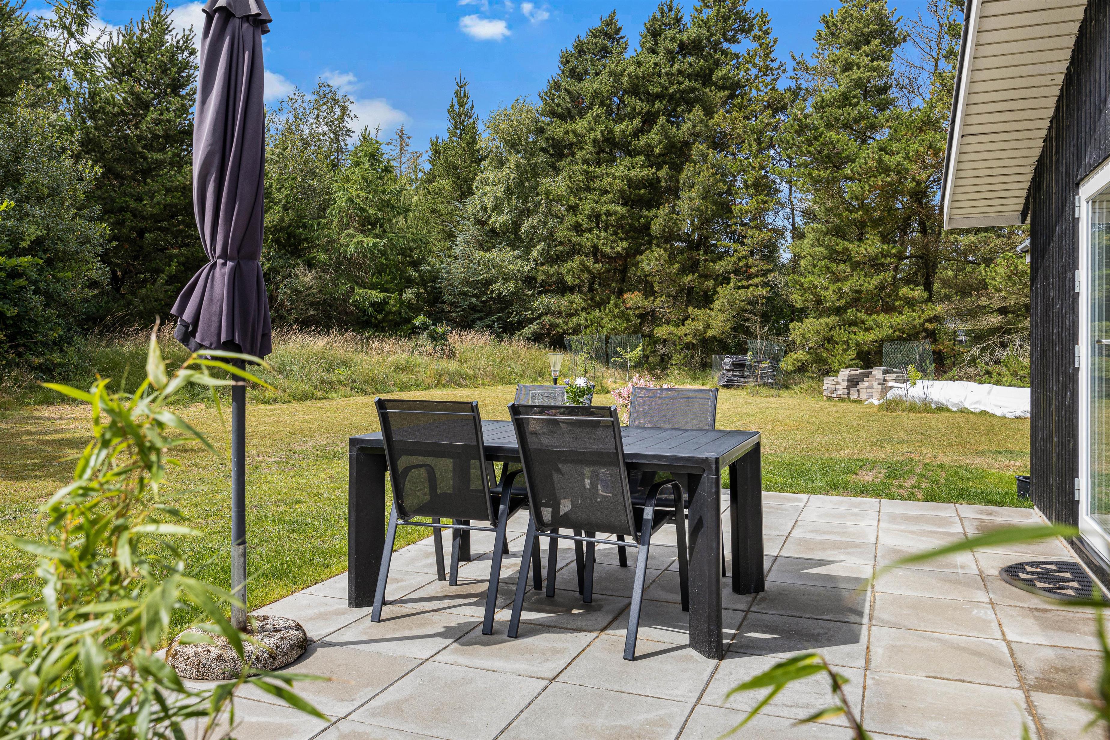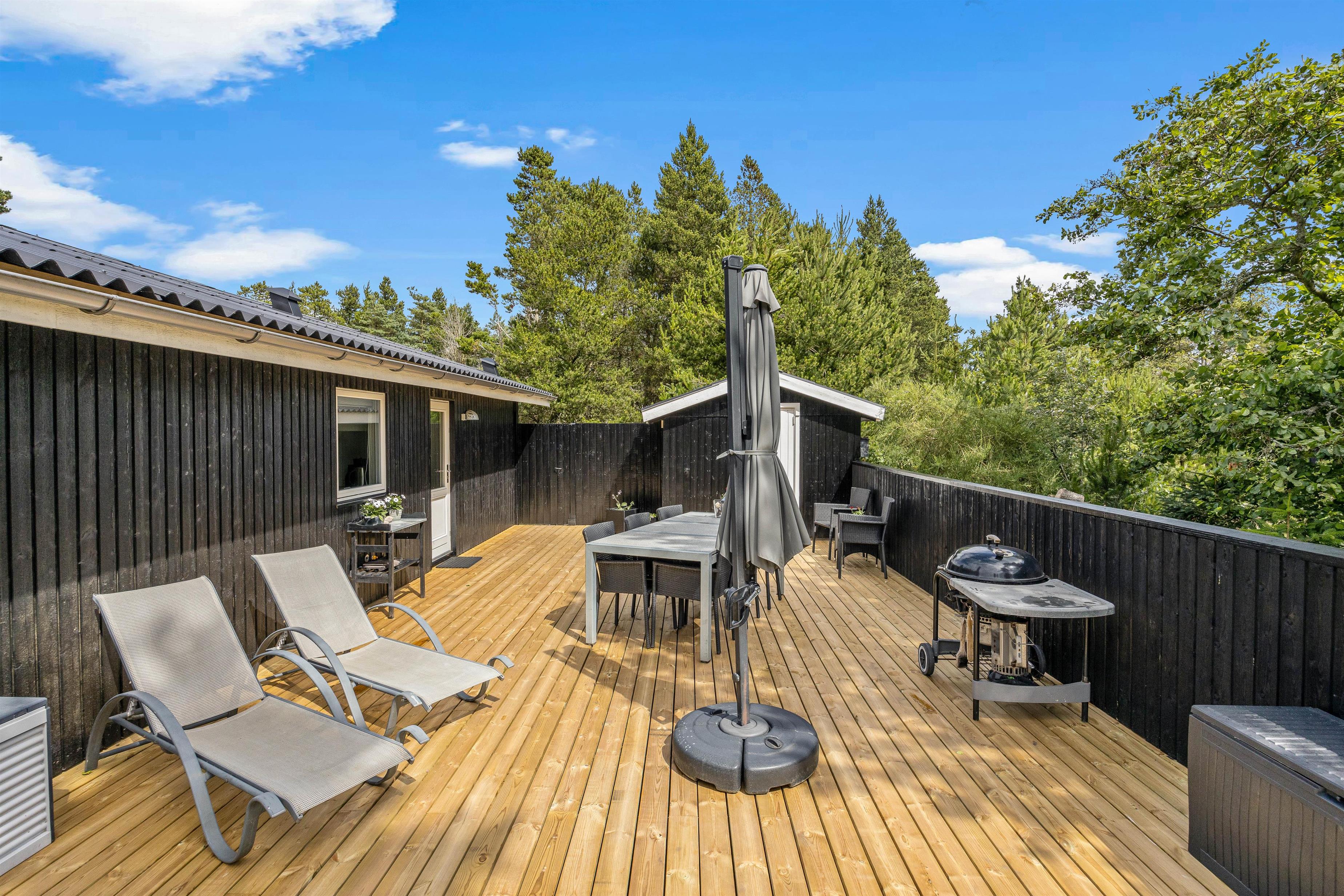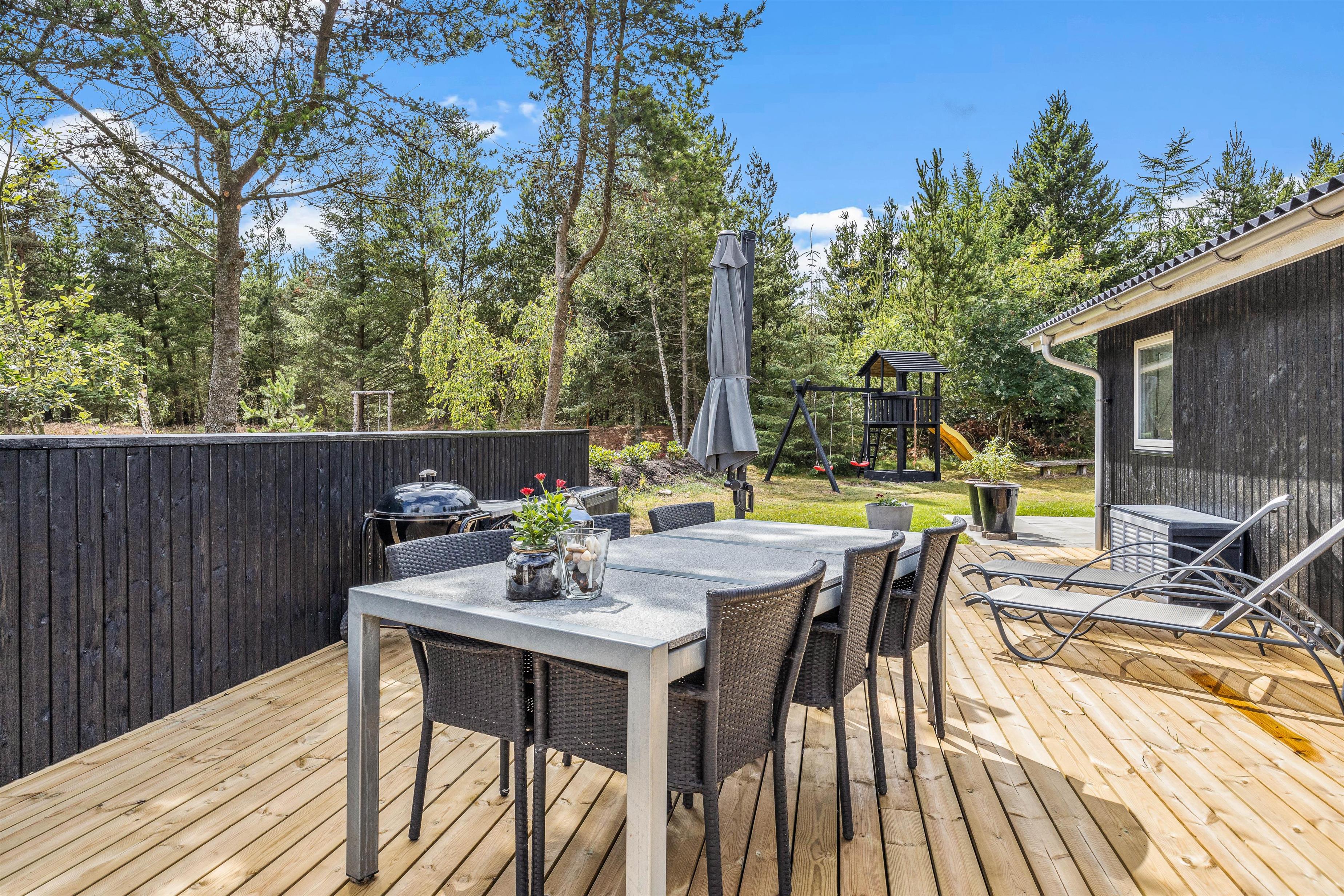 Mens børnene har fuld gang i legen i haven, kan I andre finde jer en god plads i solen på terrassen, hvor I kan læne jer tilbage i havemøbler og liggestole. Som aftenen så småt begynder at nærme sig, kan I tænde op i grillen og gøre klar til aftenens grillmiddag med lækre bøffer og god vin.