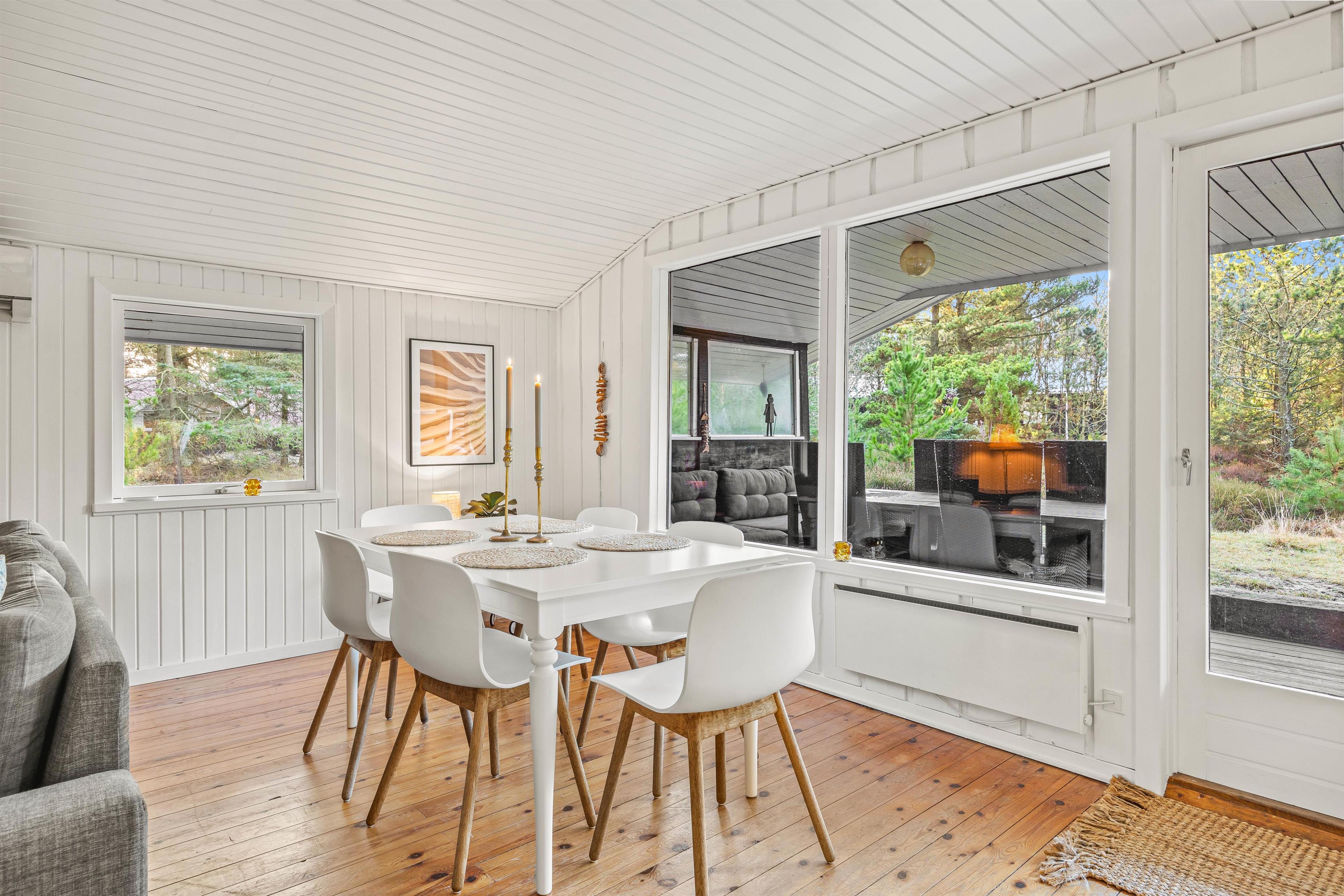 Sommerhuset, er blevet renoveret primo 2025, er beliggende i Ho nær Blåvand, og det har plads til 6 personer. Her får I en virkelig hyggelig indretning med blandt andet brændeovn og et stort udeareal med flere terrasser - og her midt mellem lyng og fyrretræer har I jeres egen udendørsafdeling med både udendørs sauna og vildmarksbad.