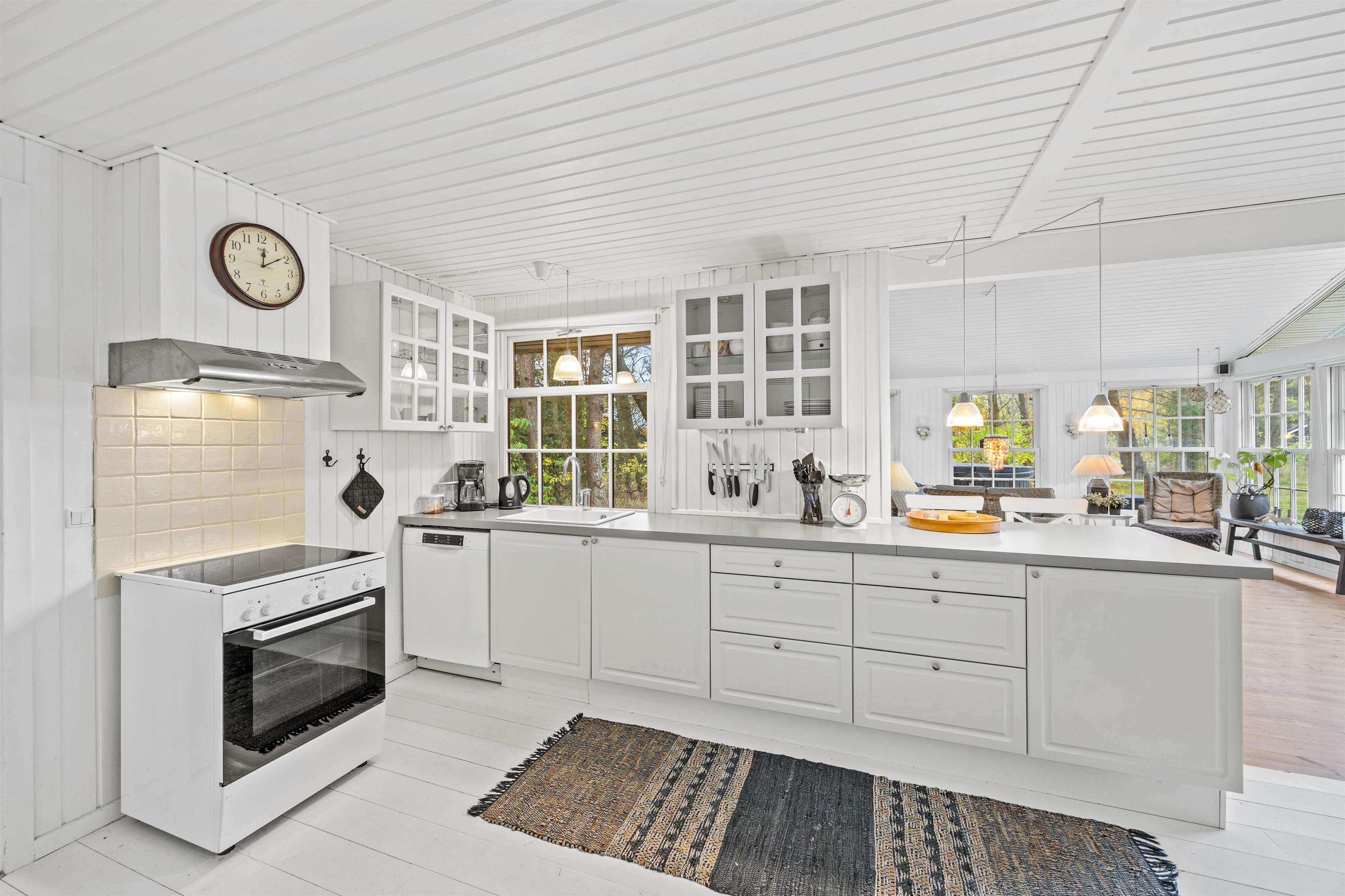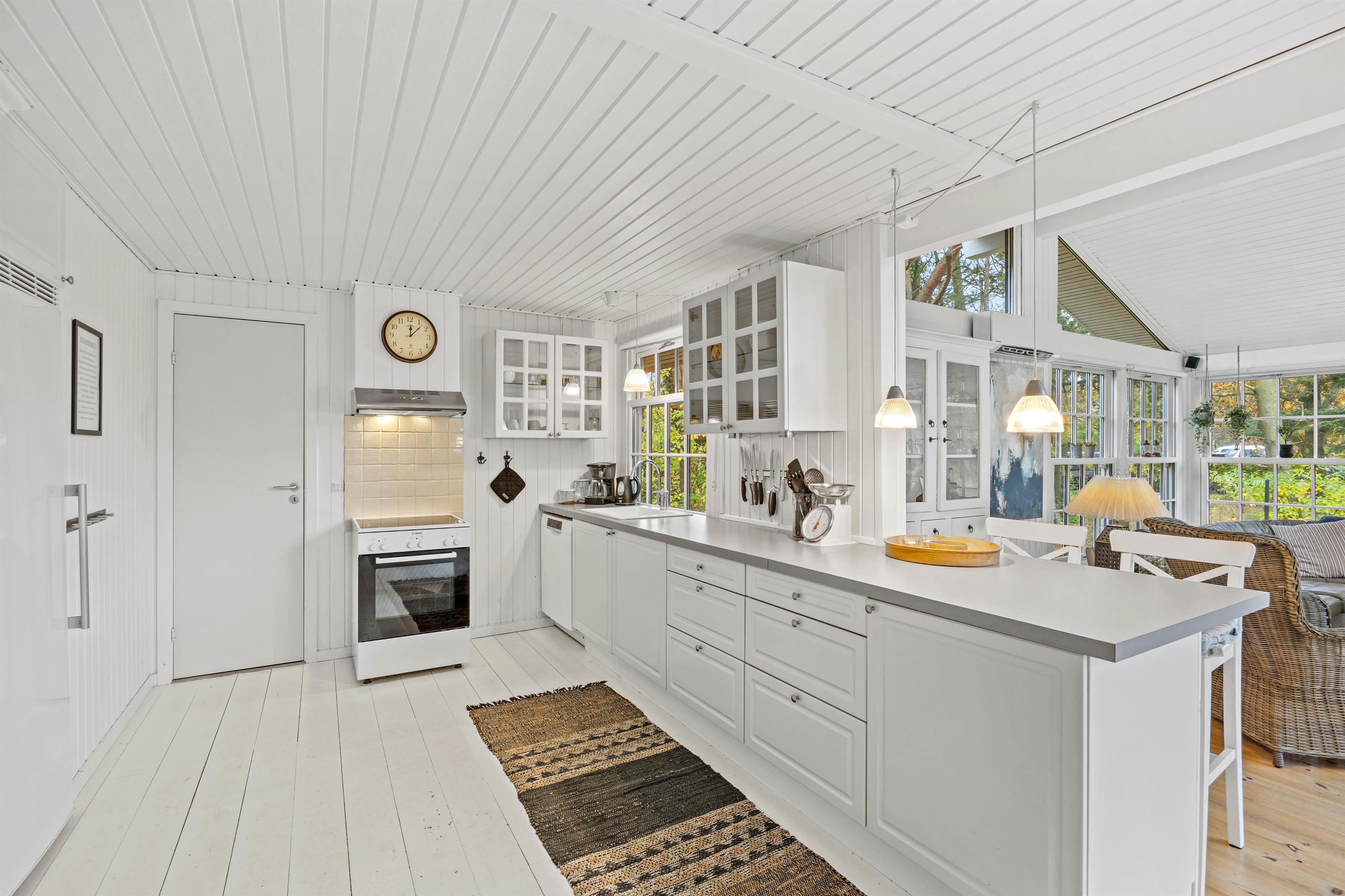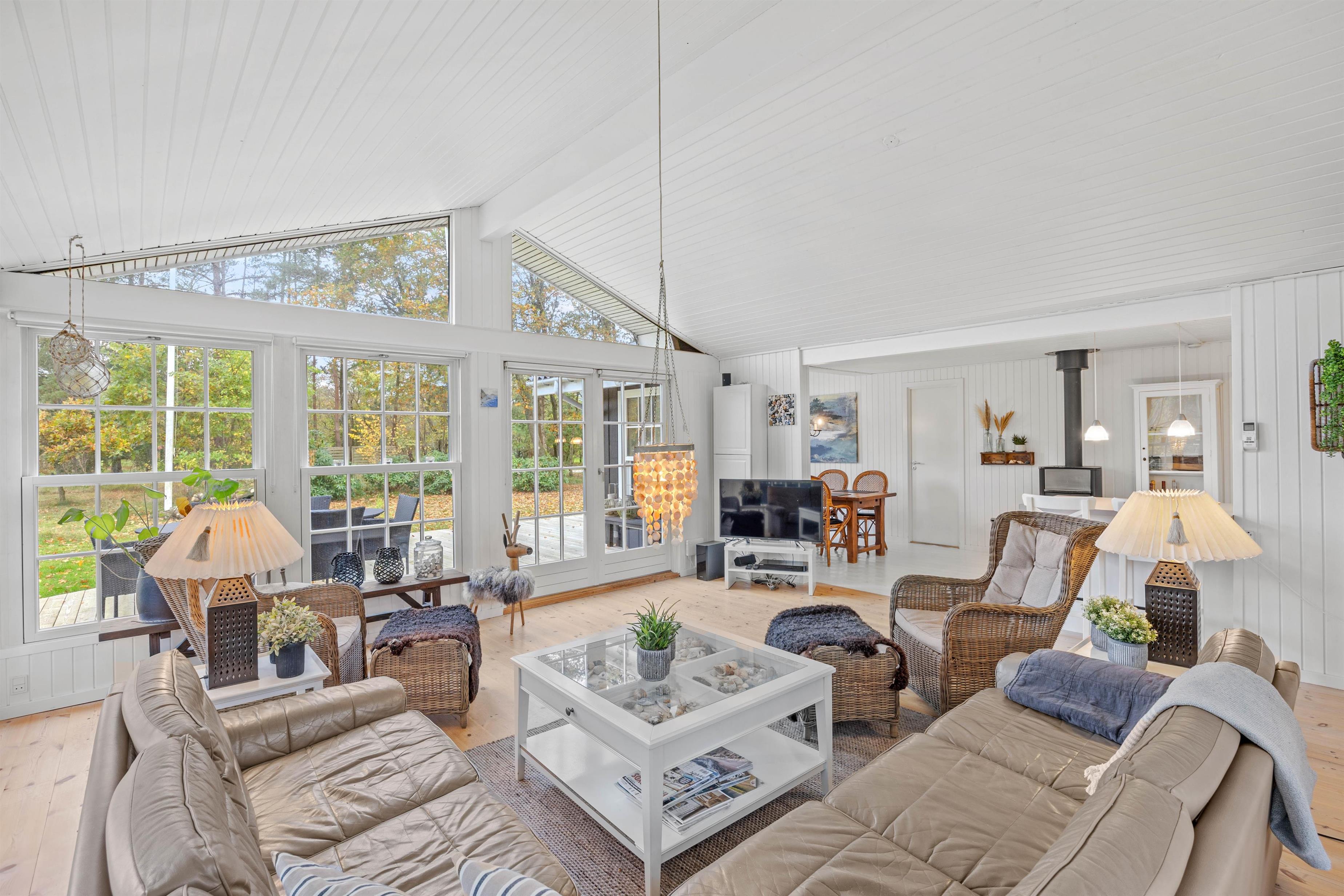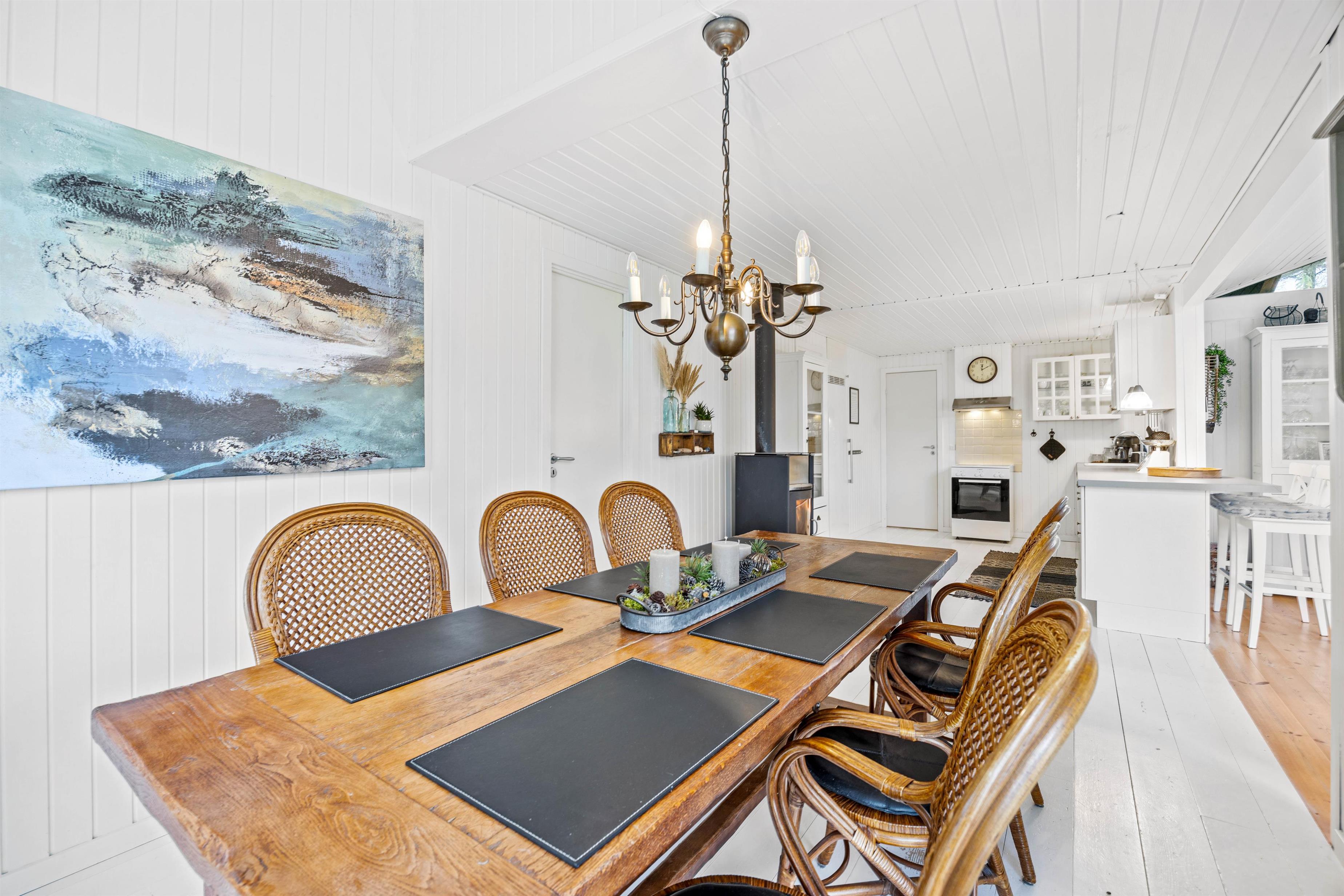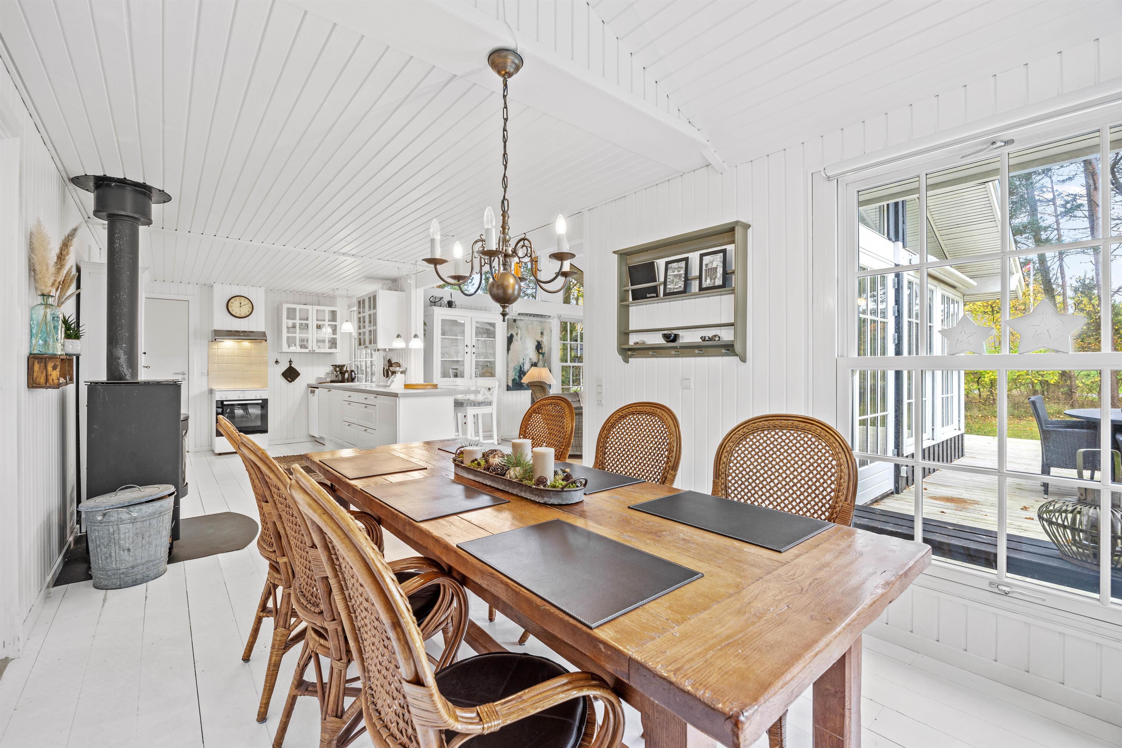 Hjertelig velkommen til dette dejlige sommerhus på Almosetoften 5! Sommerhuset er lyst, og her vil I hurtigt føle jer godt tilpasse i den indbydende atmosfære. Hjerterummet er det rummelige alrum, hvor hele familien kan samles. Indretningen er lyst og hyggelig i landlig stil, og de mange vinduer inviterer dagslyset indenfor. Her er skal I samles om dejlige retter, hyggelige brætspilsaftner og dase på sofaen, mens brændeovnen knitrer i baggrunden. Som et ekstra plus er der en energibesparende varmepumpe samt et Chromecast til streaming.