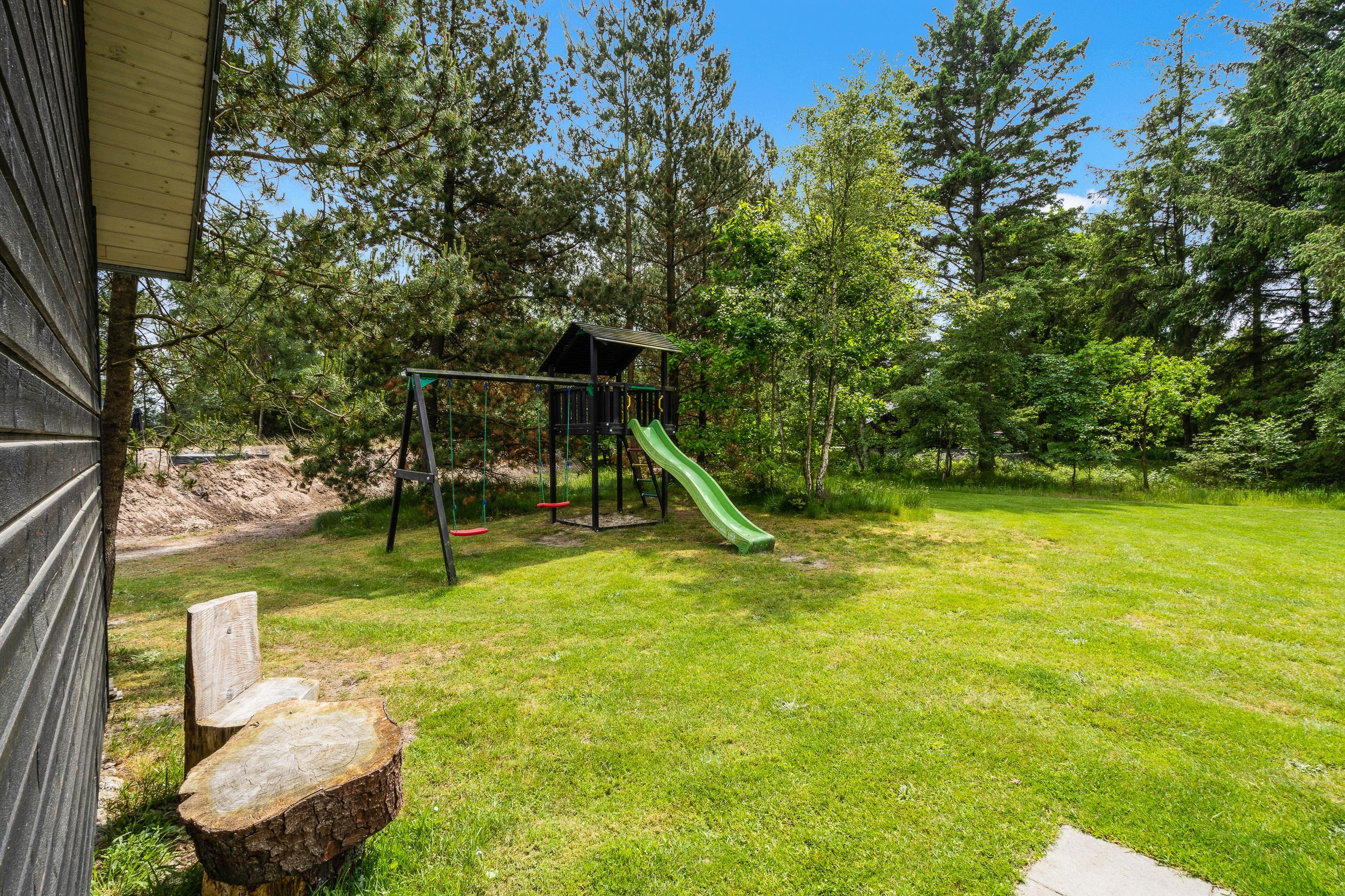 Fra det store køkkenalrum er der direkte udgang til sommerhusets terrasser. Her kan I nyde solens stråler, mens I læner jer tilbage i kvalitetshavemøblerne. I haven er der både sandkasse og gynge med rutsjebane til familiens mindste, og bålpladsen indbyder til ekstra hygge for jer alle. Yderligere har sommerhuset en carport, og hvis I kører elbil, kan I benytte sommerhusets el-ladestation (medbring eget kabel (type 2)).