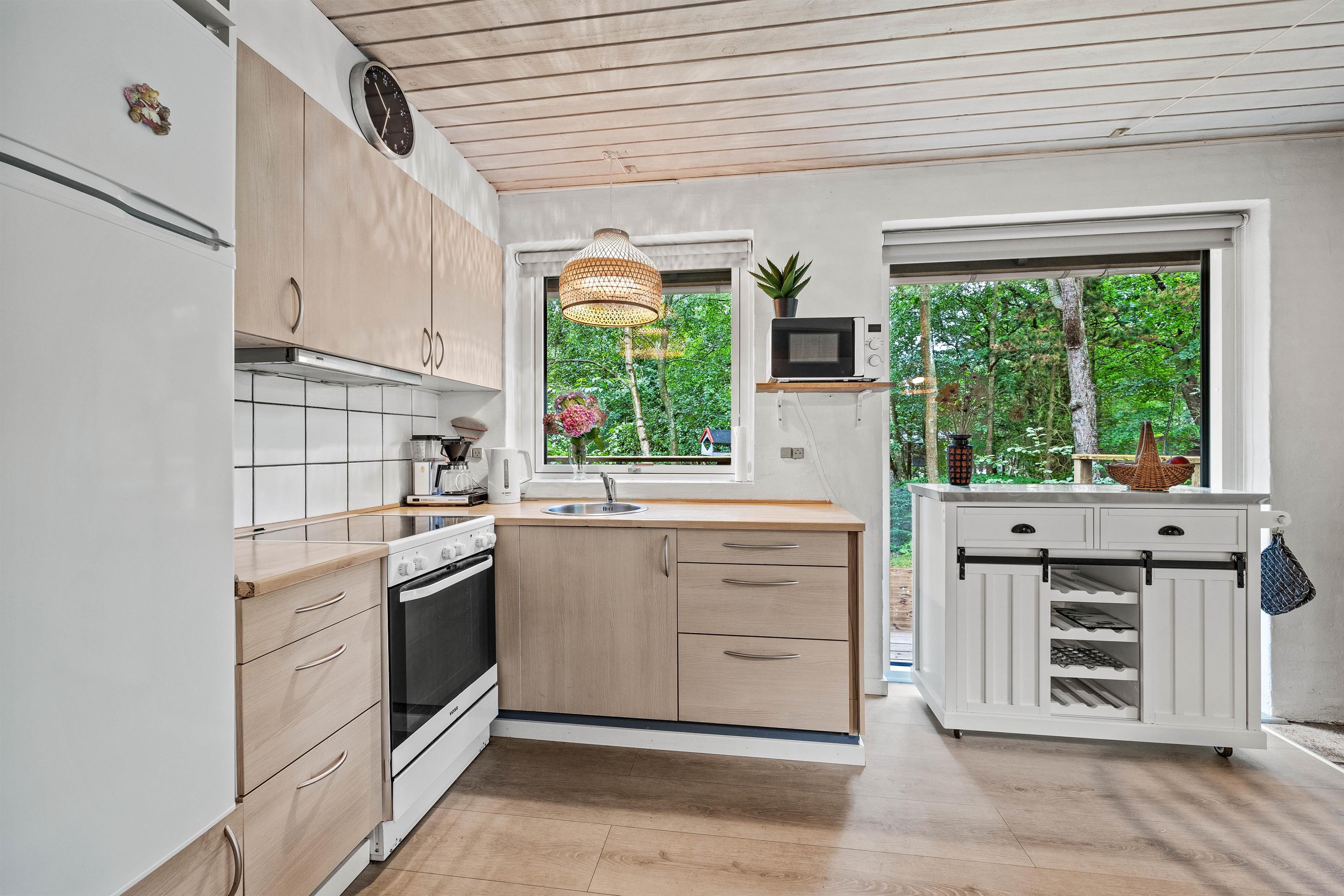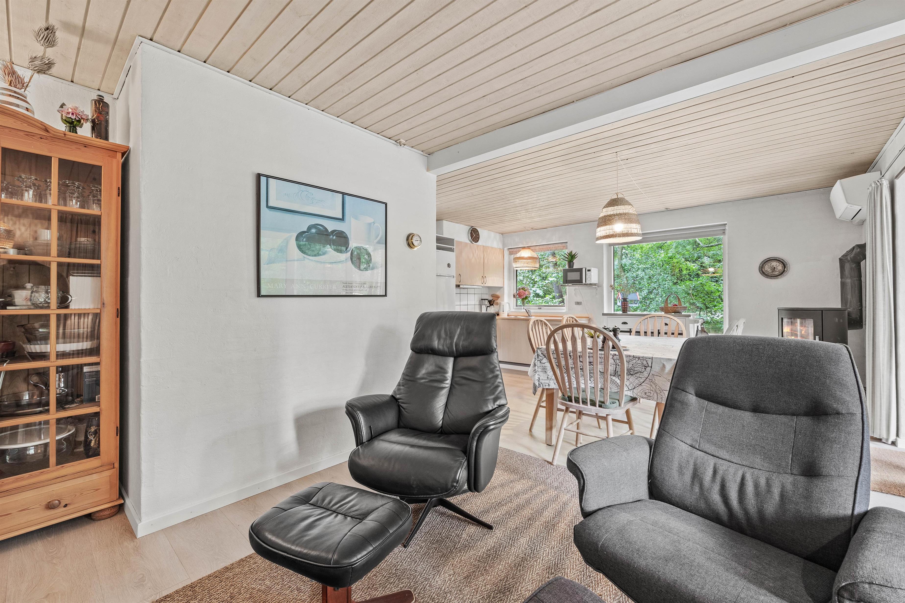 I plantagelignende omgivelser finder I dette fine sommerhus i Ho. Et fint sommerhus i to etager beliggende på en naturgrund med mange træer, der skærmer for omgivelserne. Her er plads til 6 gæster og gode faciliteter som brændeovn og en energivenlig luft-til-luft varmepumpe.