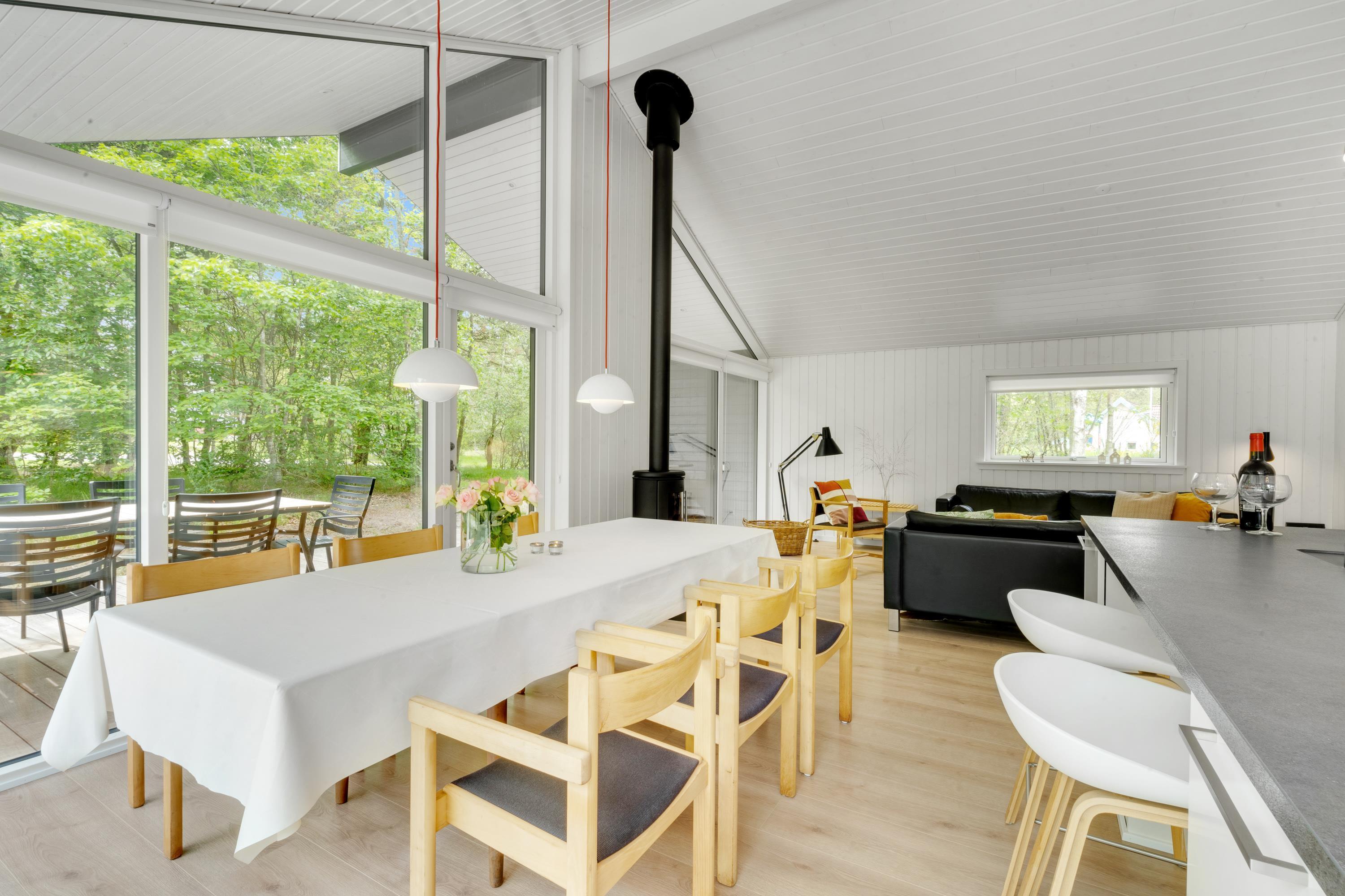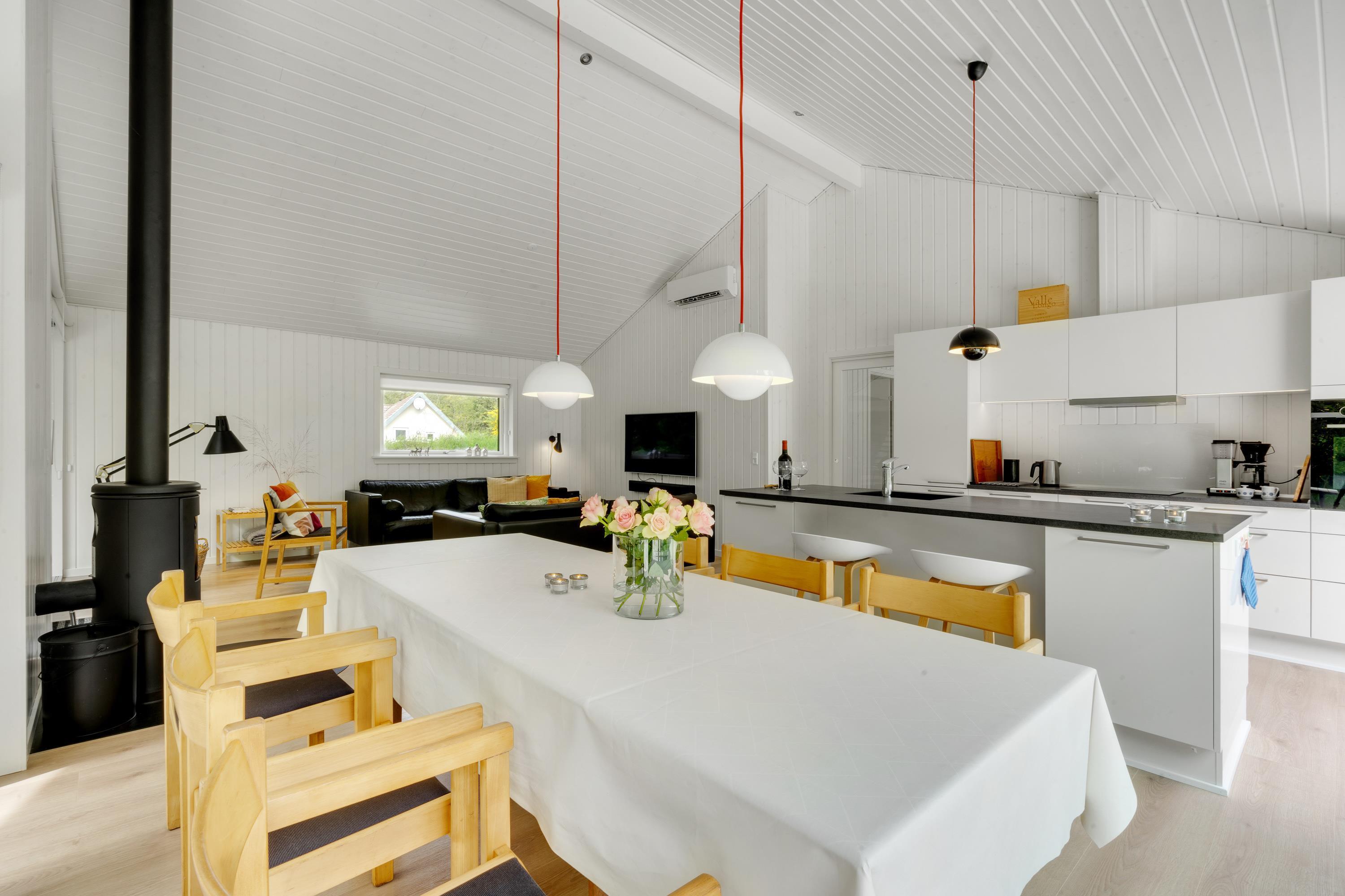 Køkkenet, som er forbundet med stue-alrummet, er husets kommandocentral – her kan I være fælles om madlavningen og snakke om dagens oplevelser. I stuen er der plads til at lægge fødderne op og nyde varmen og hyggen ved brændeovnen og se en film. Med en energibesparende varmepumpe er Nørballevej 1 også på den kolde årstid et rigtigt godt og fornuftigt valg.