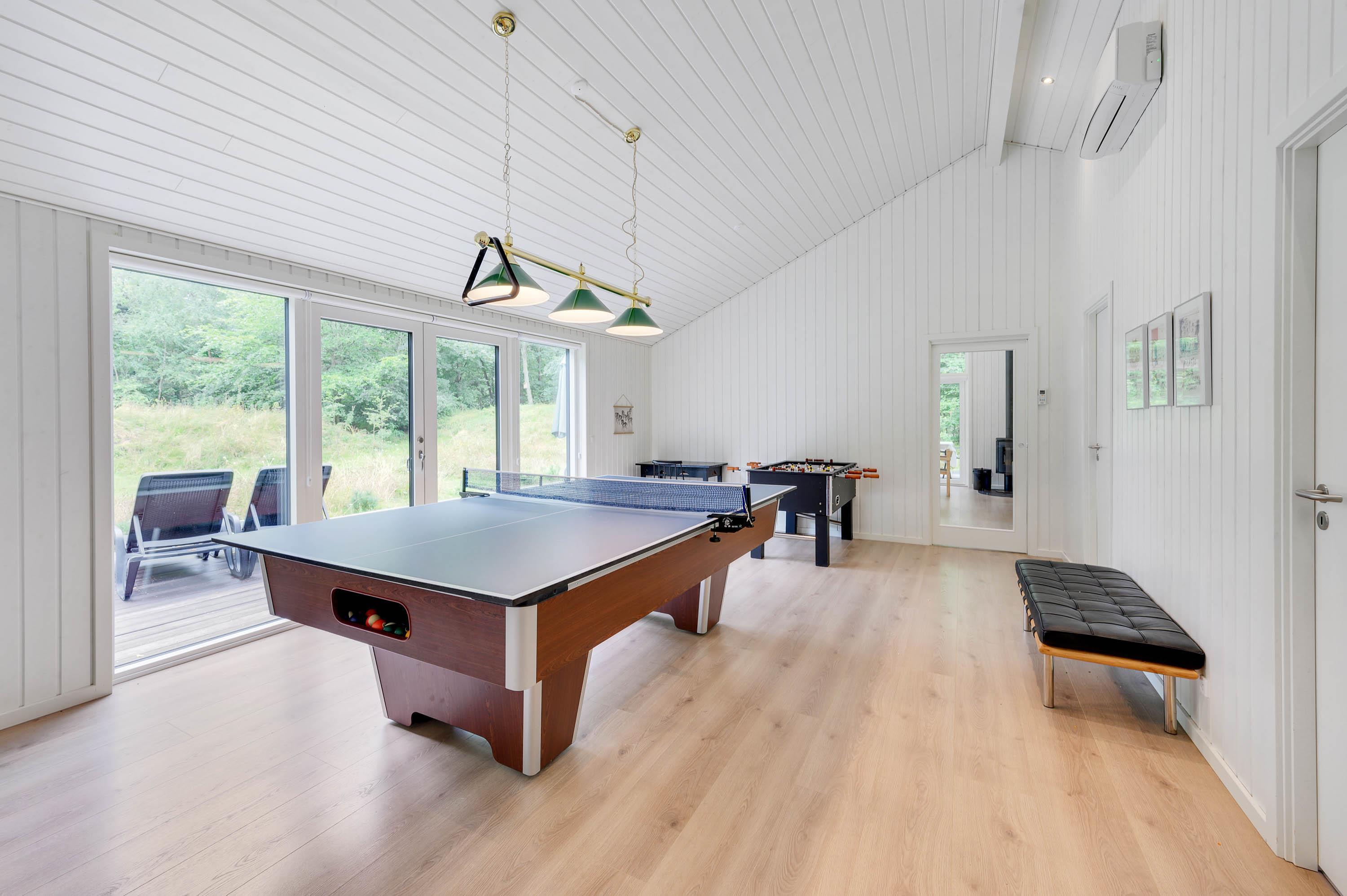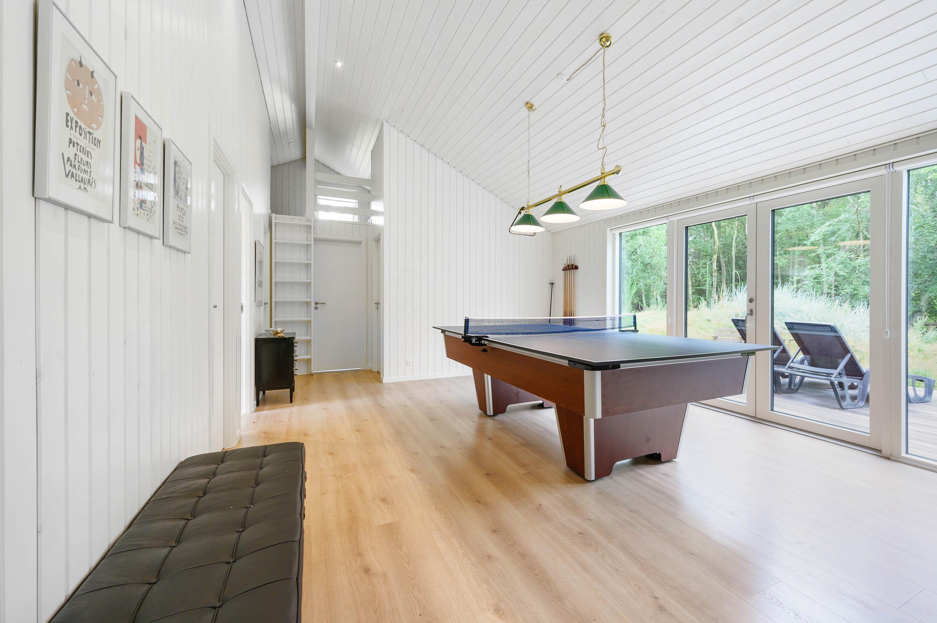 Rummelige soverum, gode moderne badeværelser og et stort område, hvor der kan spilles billard, dart og bordfodbold er kendetegnene for dette nye smukke hus. En ekstra lækker detalje er den fine hems, hvor de store børn kan trække sig tilbage, surfe lidt på nettet, spille lidt kort eller måske få læst en bog.