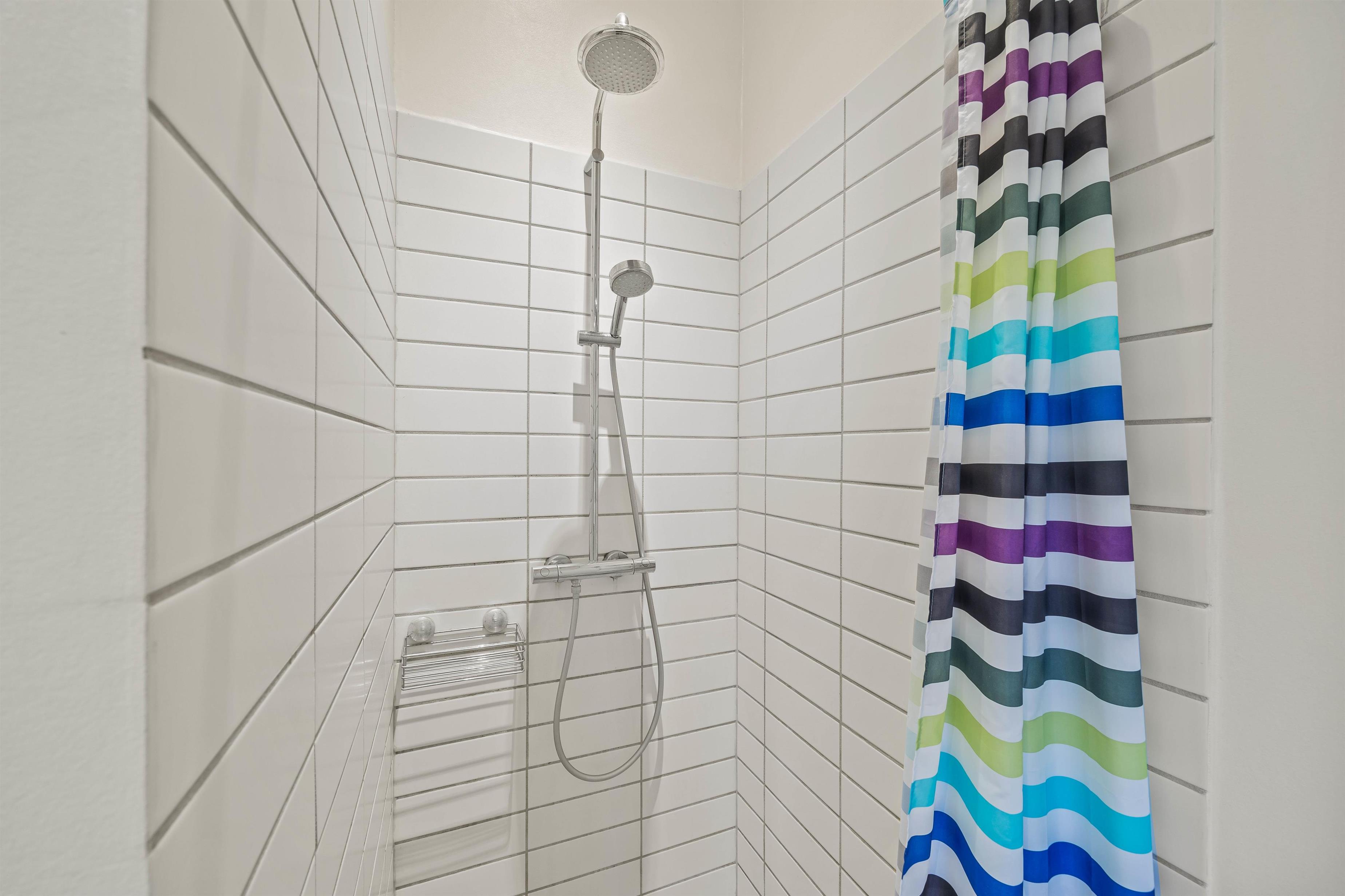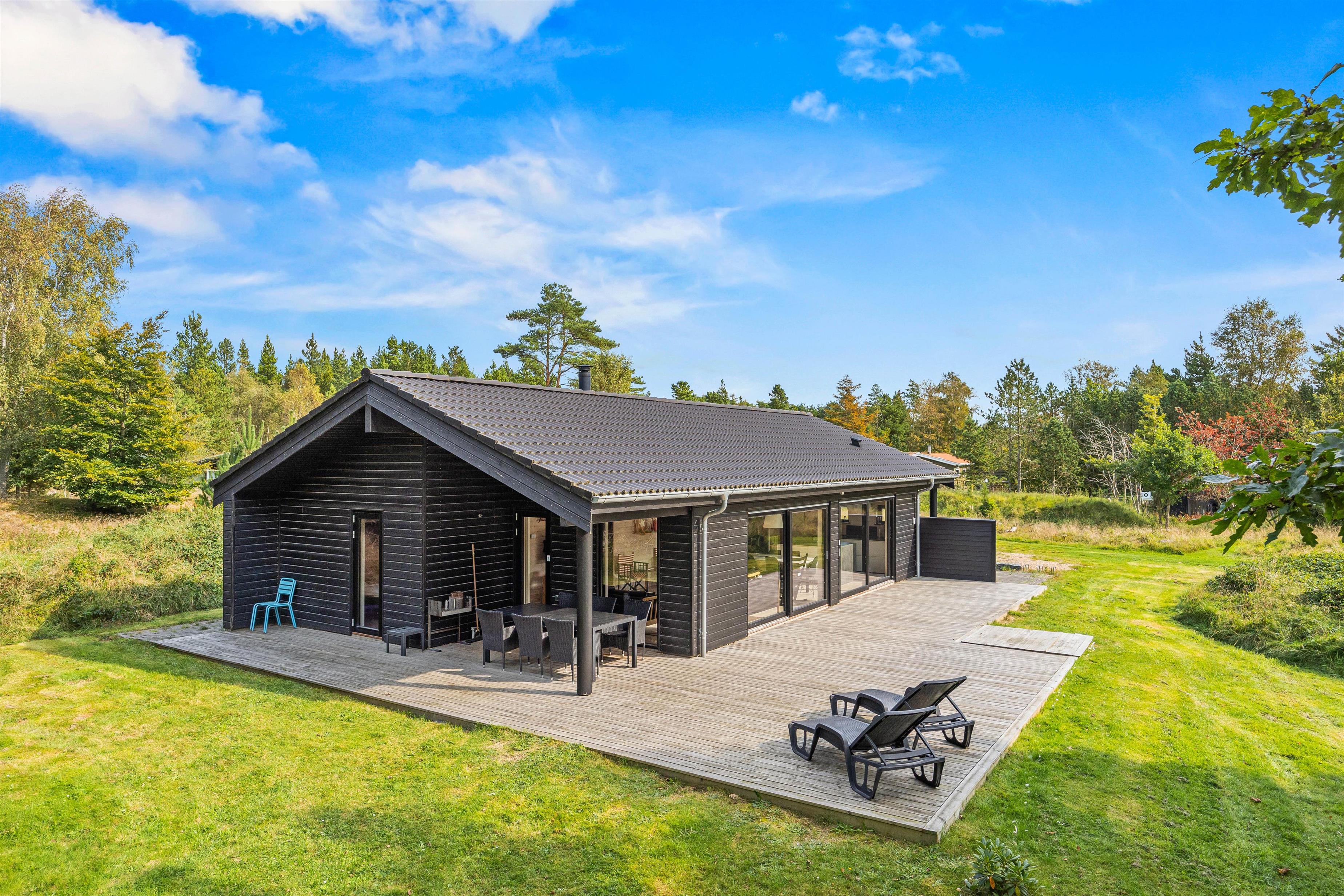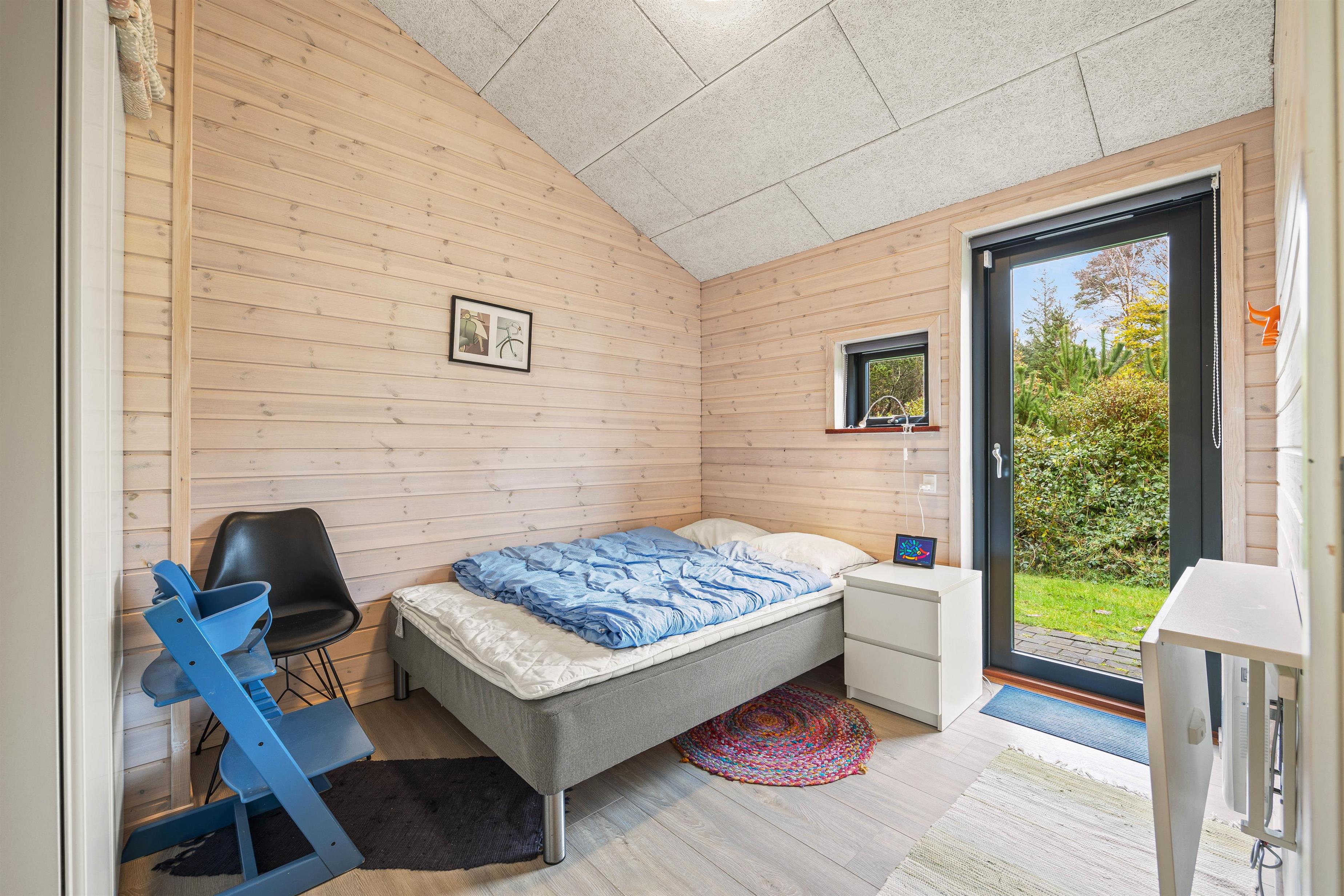 Skulle I liste jer ud om morgenen fra soveværelsets terrassedør for at høre naturen vågne, er der ikke langt til terrassens møbler eller solvogne. Der er nemlig plads til, at de kan stå parat til en kop morgenkaffe. Grillen står naturligvis til rådighed for et godt måltid hele dagen og skulle vind og vejr ikke være til ophold i det fri, kan I trække ind under den overdækkede terrasse.