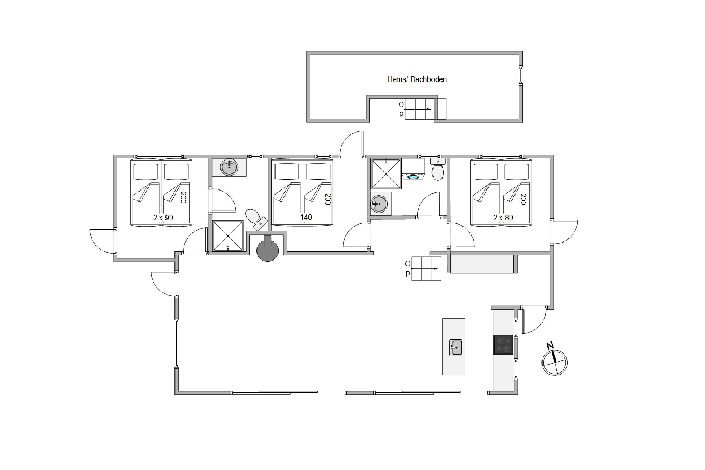 Straks I træder ind i den lille gang med plads til sko og overtøj, møder I den varme atmosfære og ro i feriehuset. Det moderne køkken er udstyret med opvaskemaskine, mikroovn og induktionskogeplade og god skabsplads. Det direkte udsyn til spisebordet lader kokken være en del af samtalen og dem, der slapper af i sofaerne ved brændeovnen, kan også deltage, for det store åbne rum giver mulighed for at være sammen – også hver for sig.