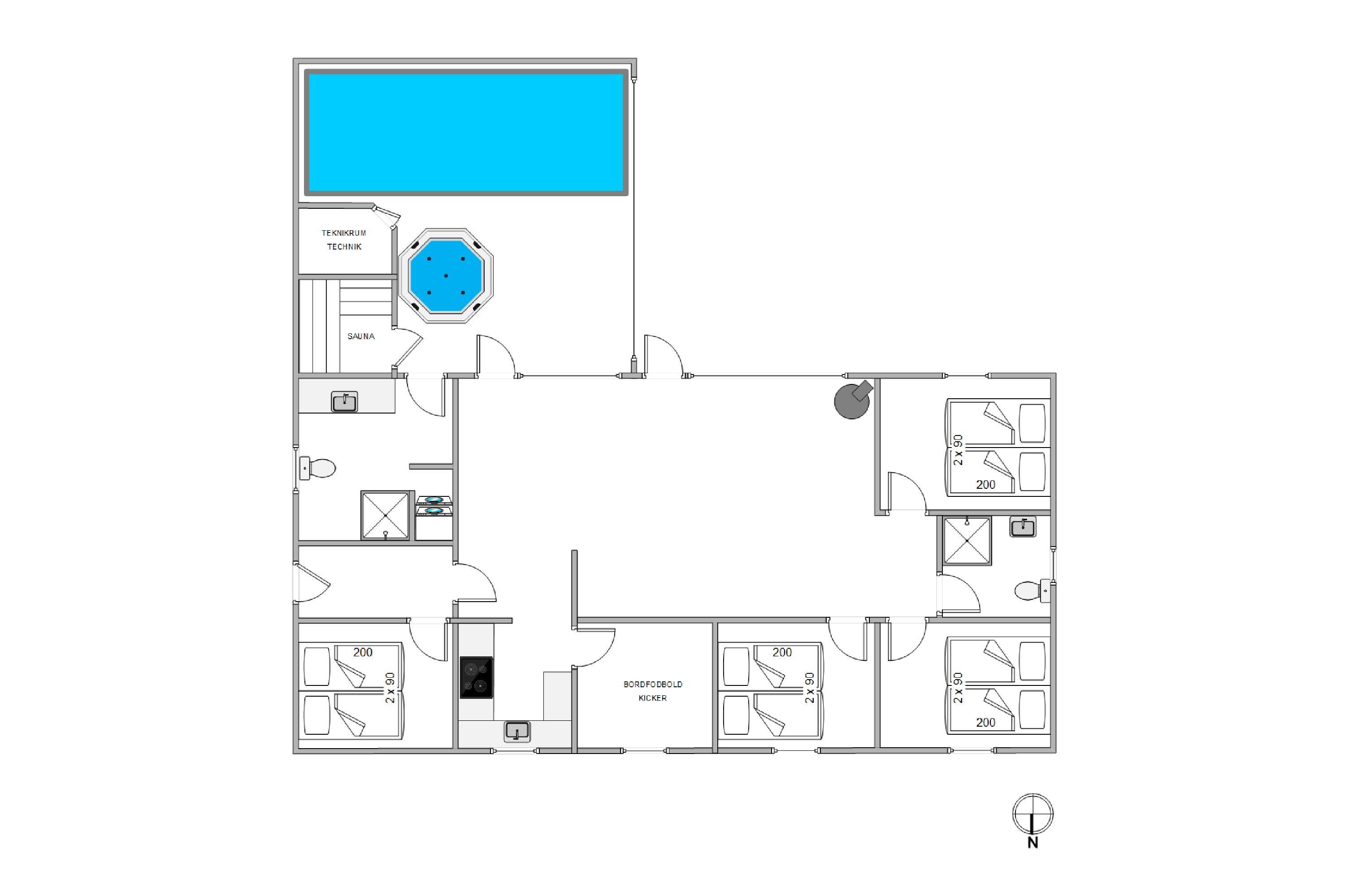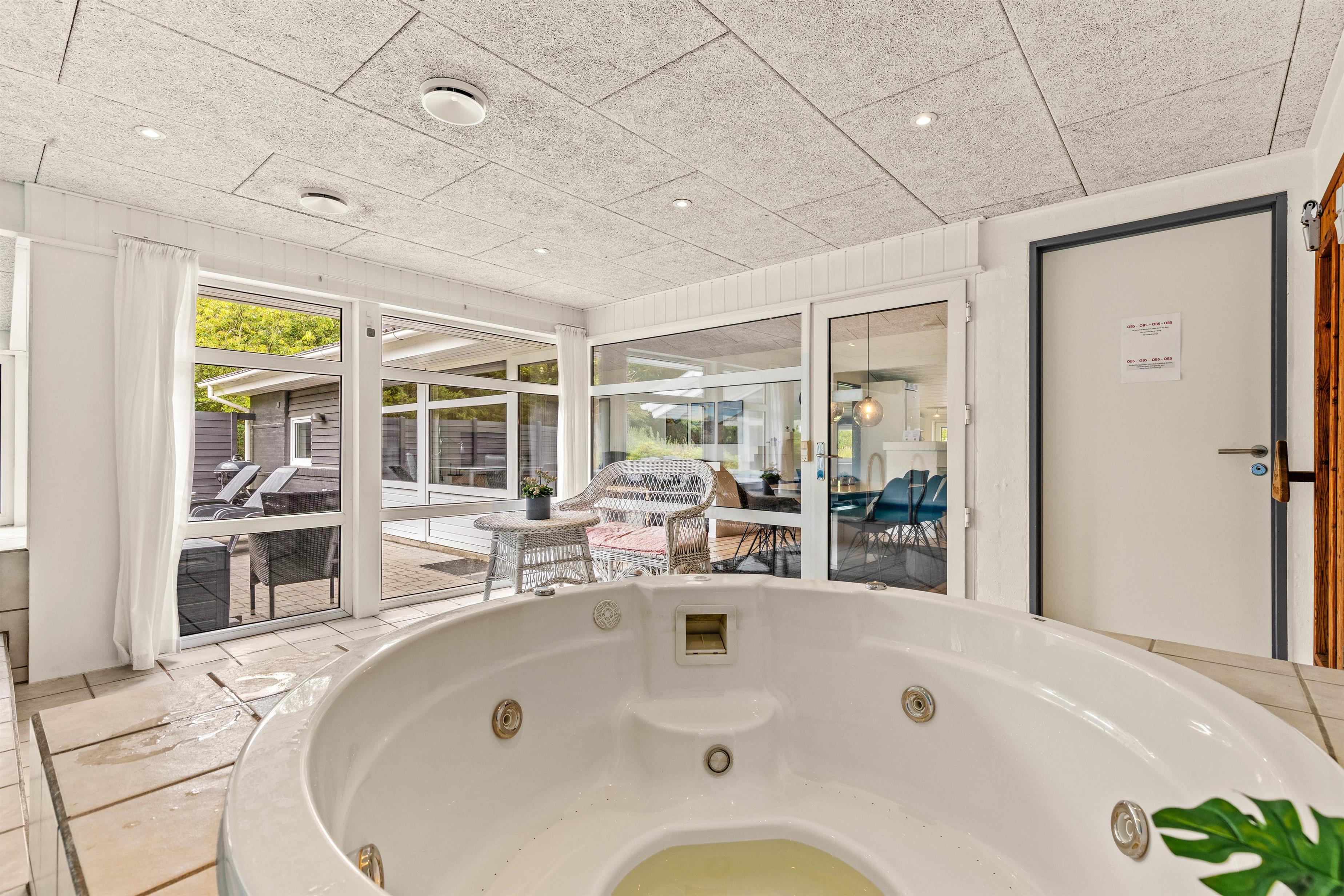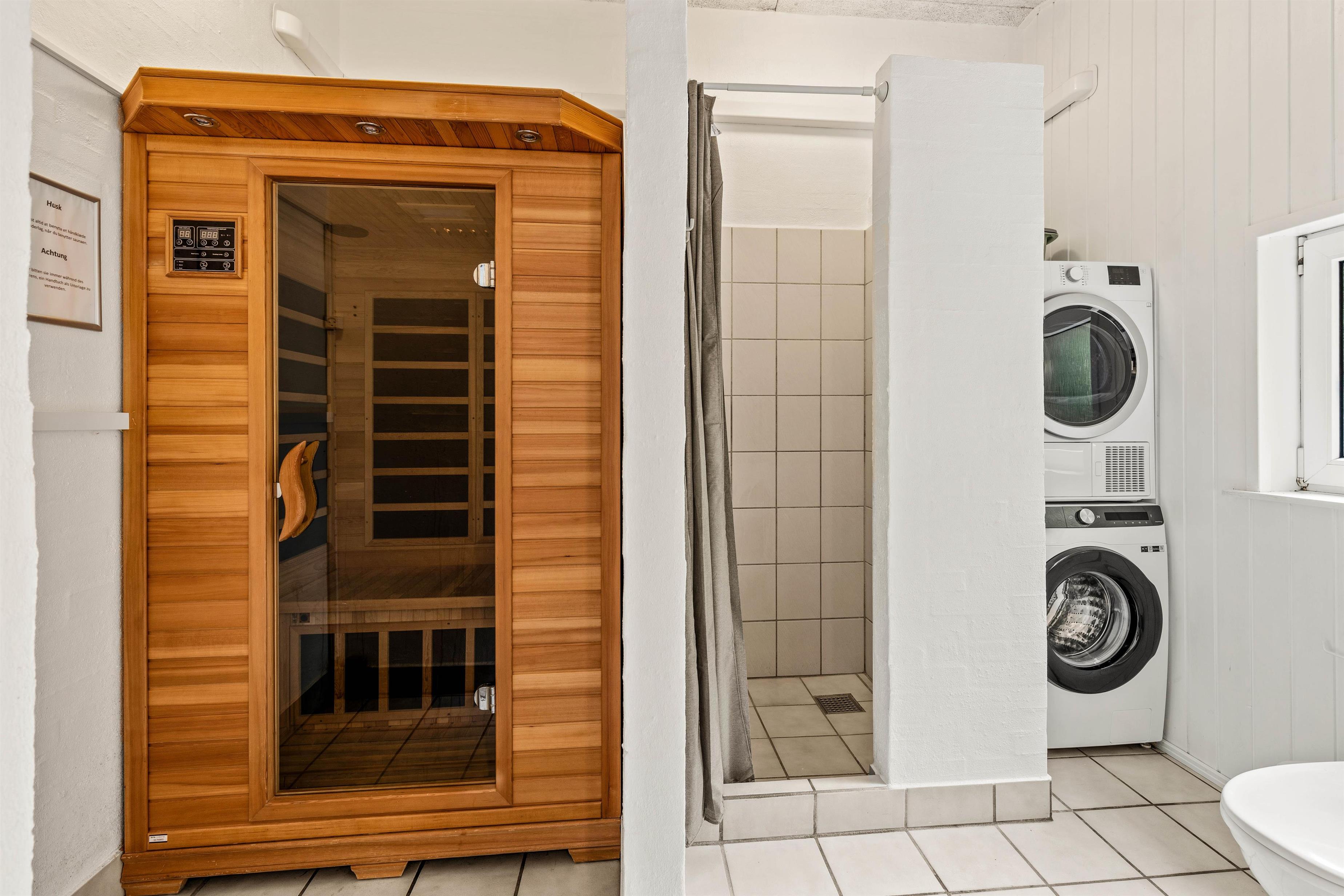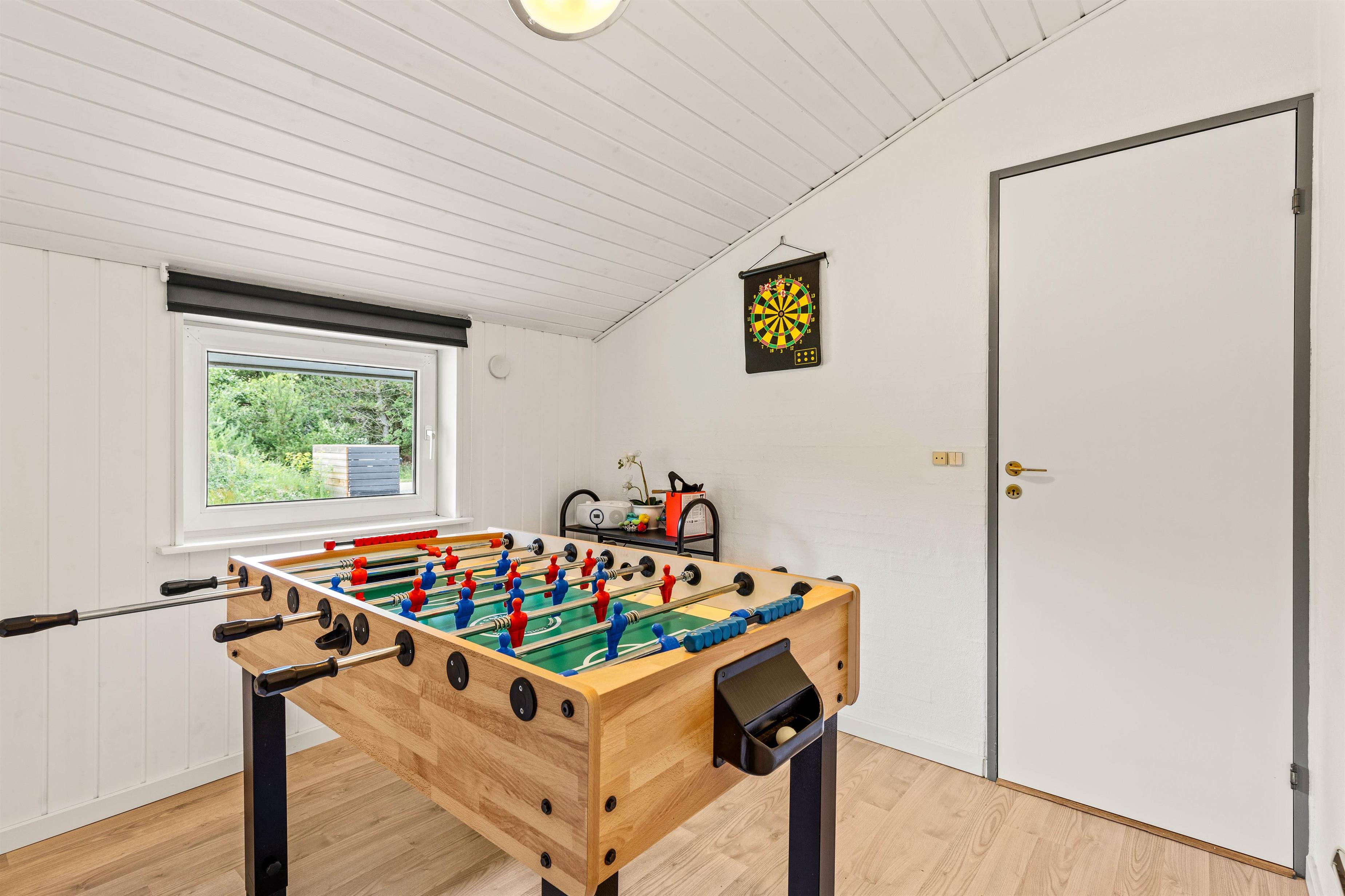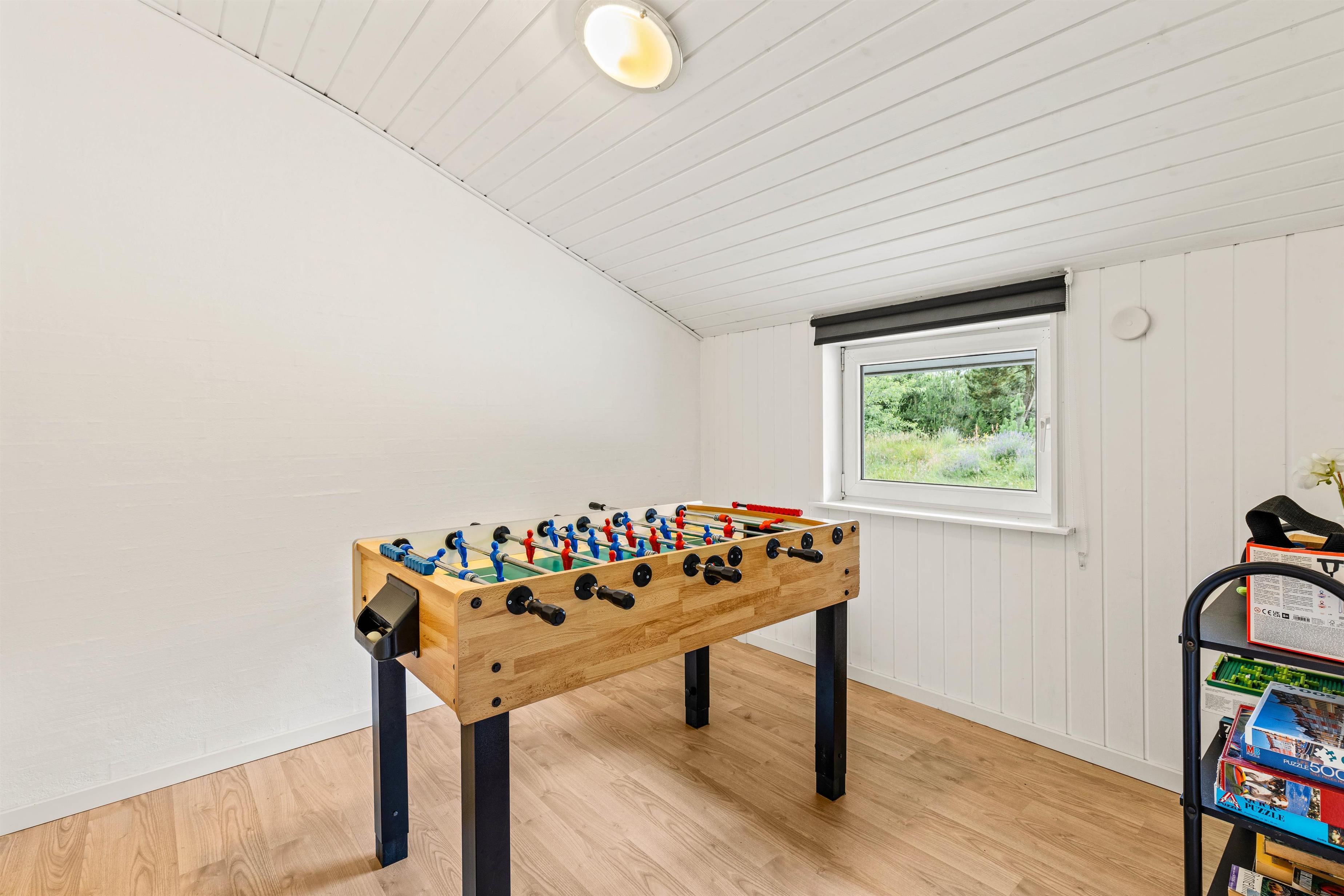 Kan I lide at være aktive, vil I elske den 18 kvadratmeter store swimmingpool, hvor I kan få en forfriskende dukkert lige fra morgenstunden. Efter en dejlig svømmetur kan I få varmen i sommerhusets almindelig og infrarød sauna eller i spabadet, der har plads til hele 4 personer. Den aktive ferie fortsætter rundt om bordfodboldbordet, hvor I kan udfordre hinanden på kryds og tværs til et slag bordfodbold.