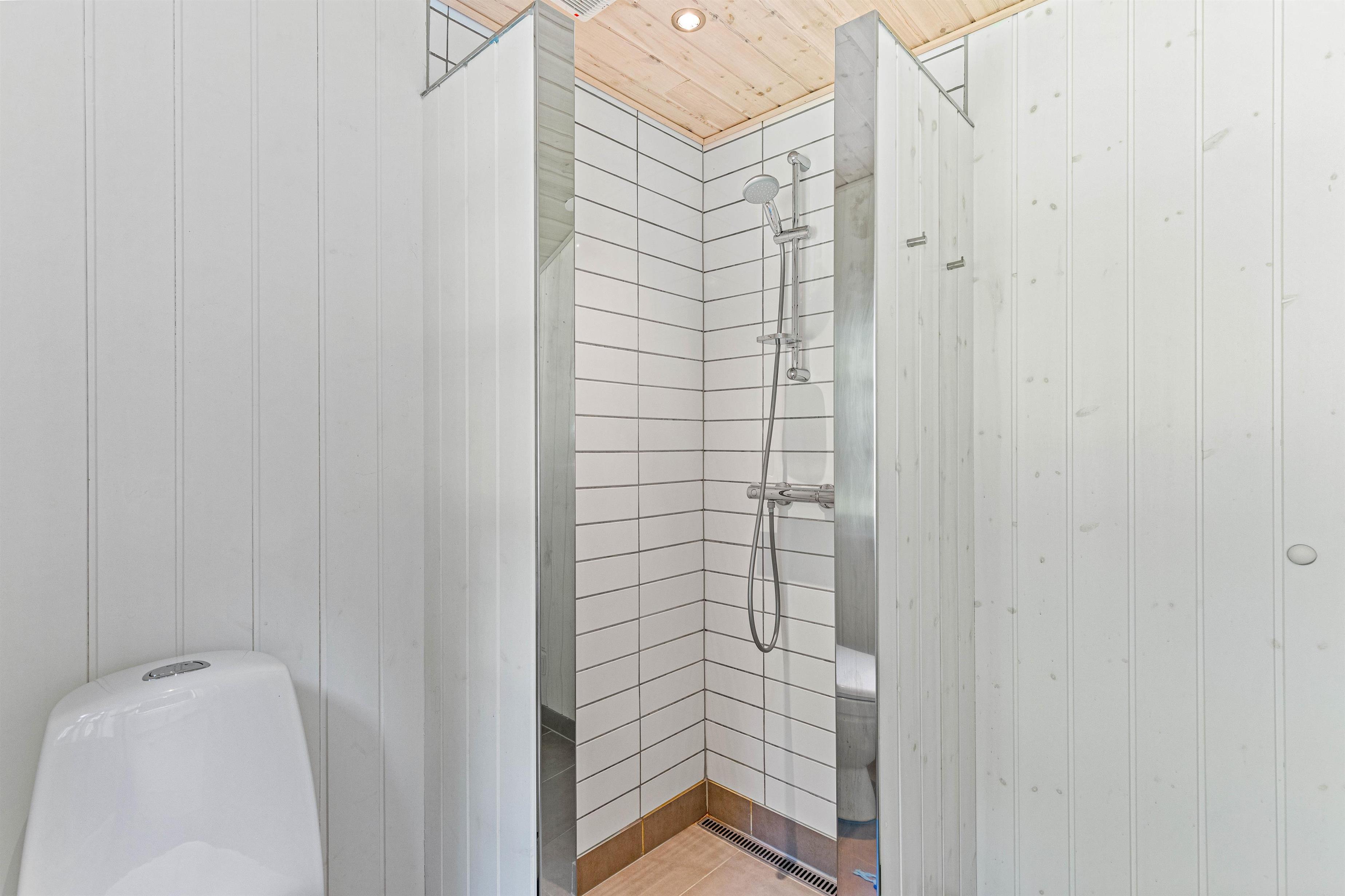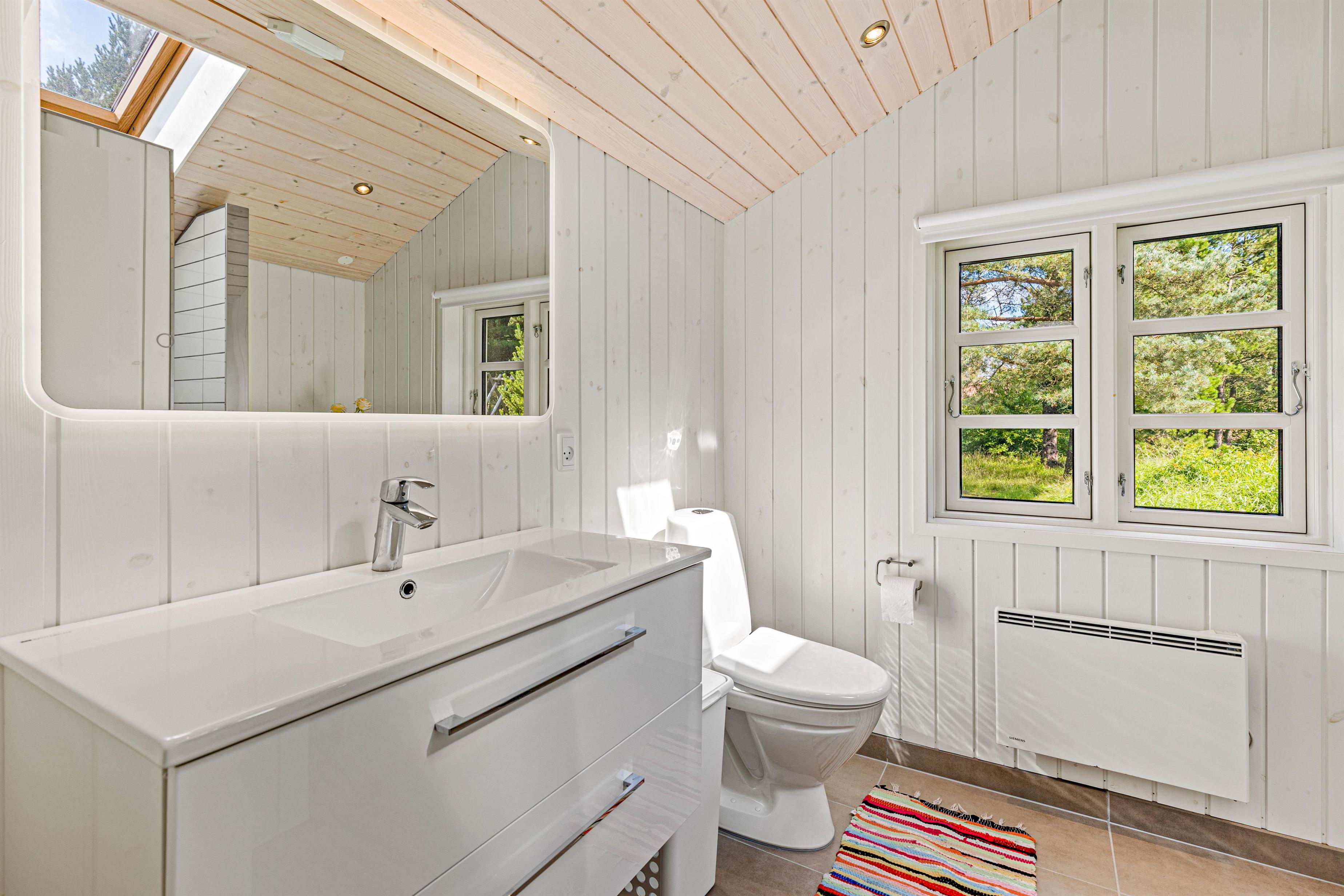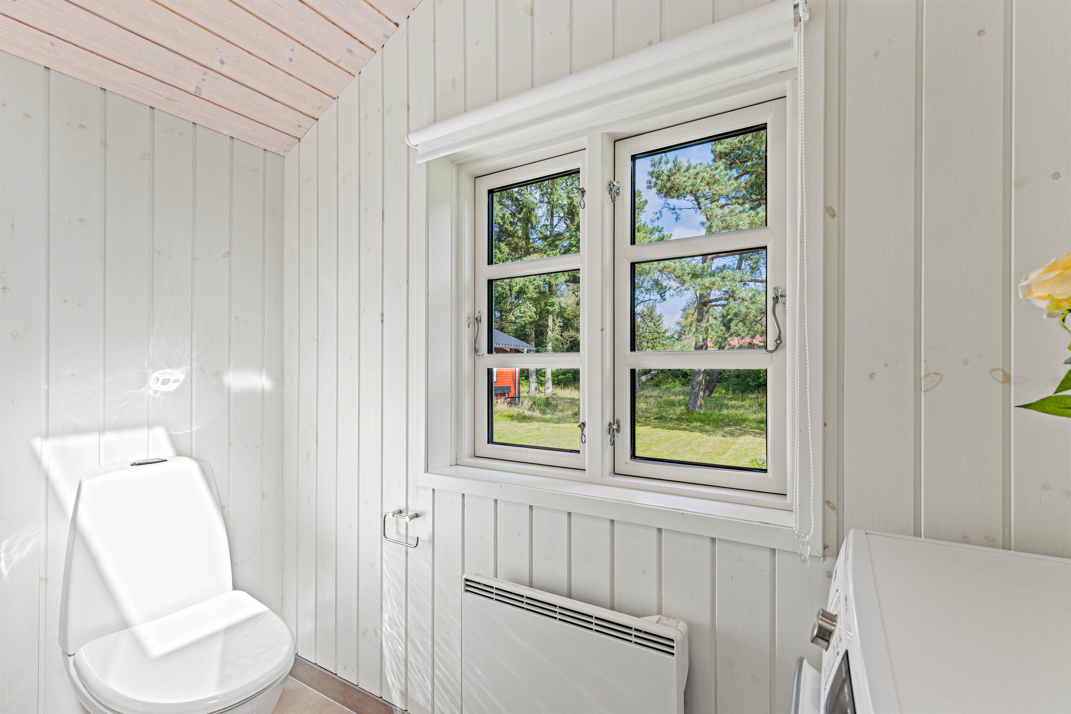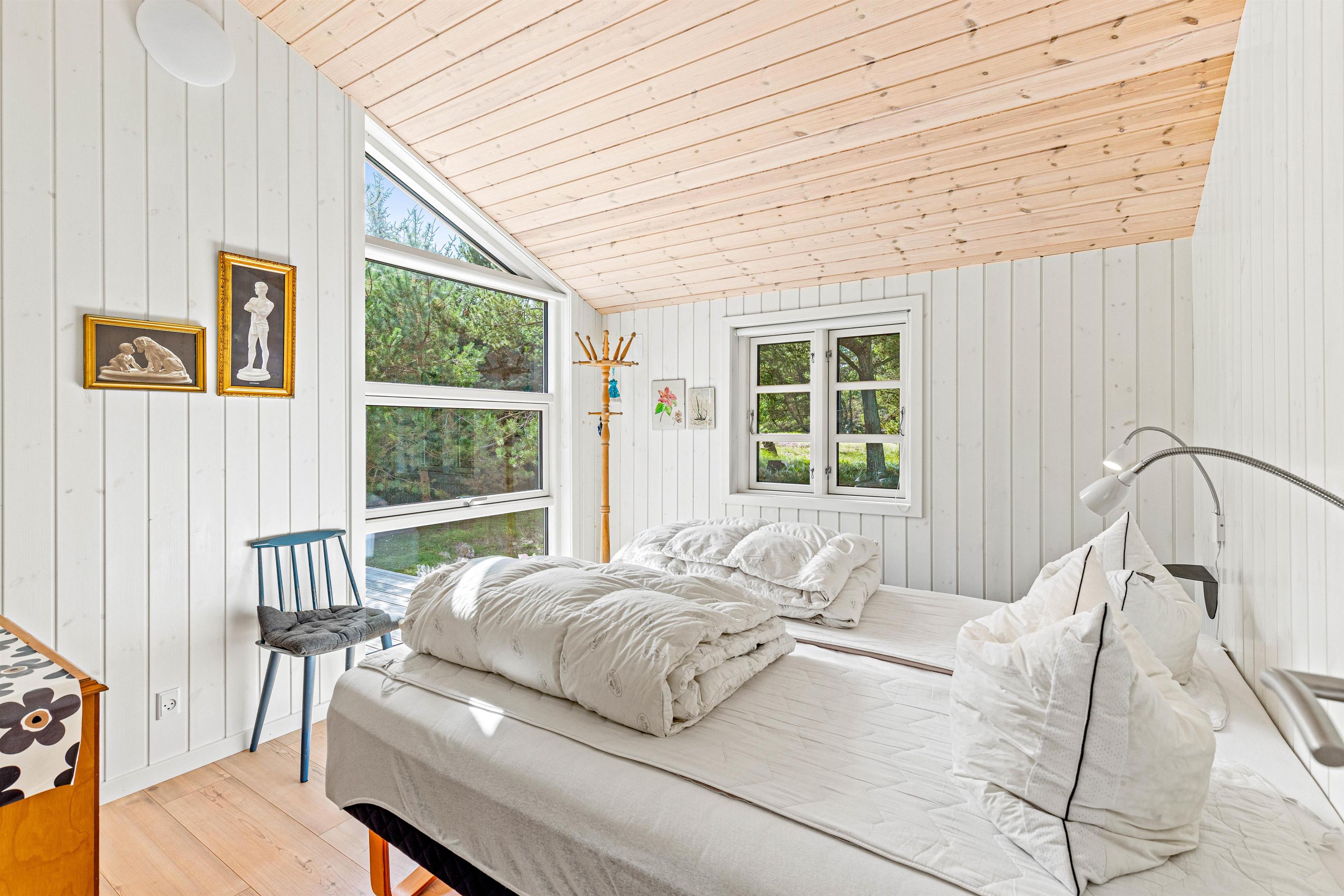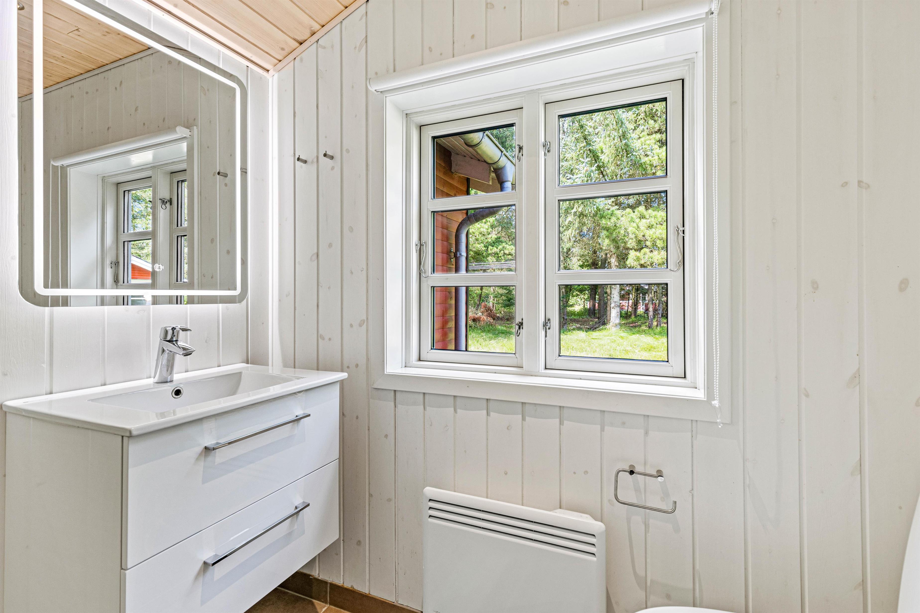 Det 70 m2 store træhus fra 1975 er utroligt godt indrettet med både åbent lyst køkken med opvaskemaskine, mikroovn og induktionskogeplade i direkte sammenhæng med spiseplads og stuen. Her er der flere hyggepladser tæt på brændeovnen, så I kan slappe af med spil, en spændende film eller en god bog, mens ilden knitrer og kaffen brygges.