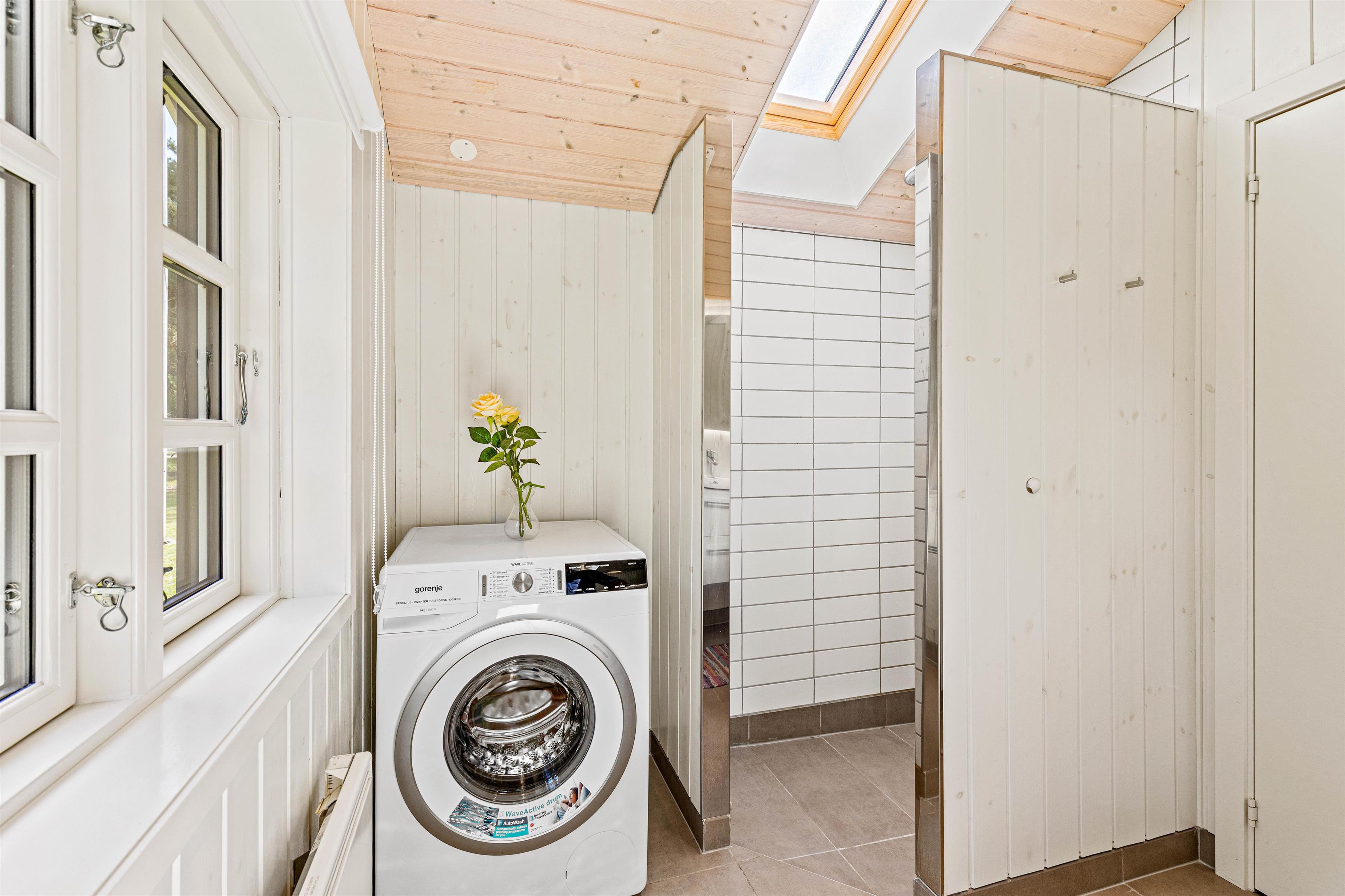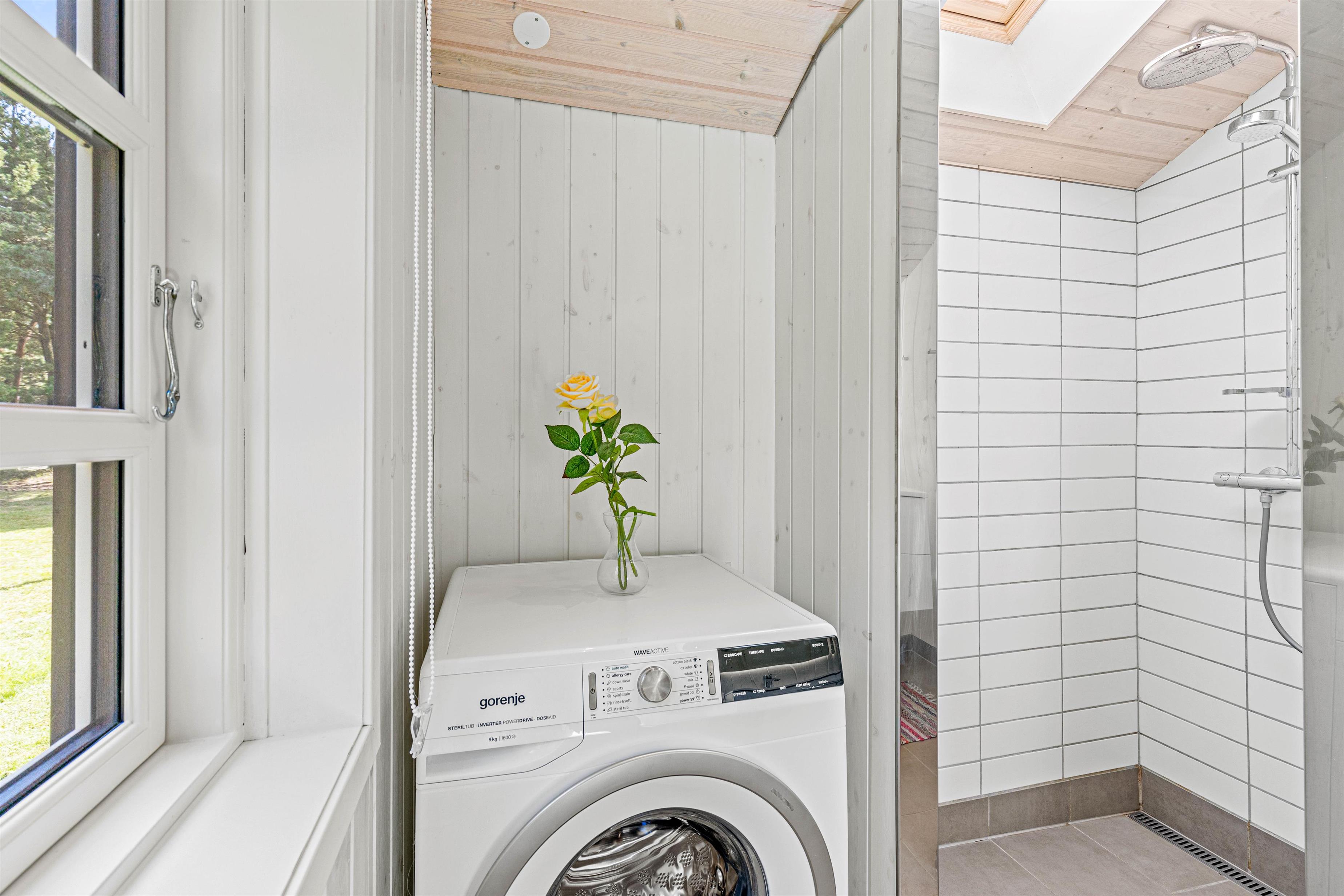 Moderne bekvemmeligheder som vaskemaskine og opvaskemaskine mangler heller ikke, ligesom den installerede varmepumpe giver energi- og prisvenlig varme i stuen.
